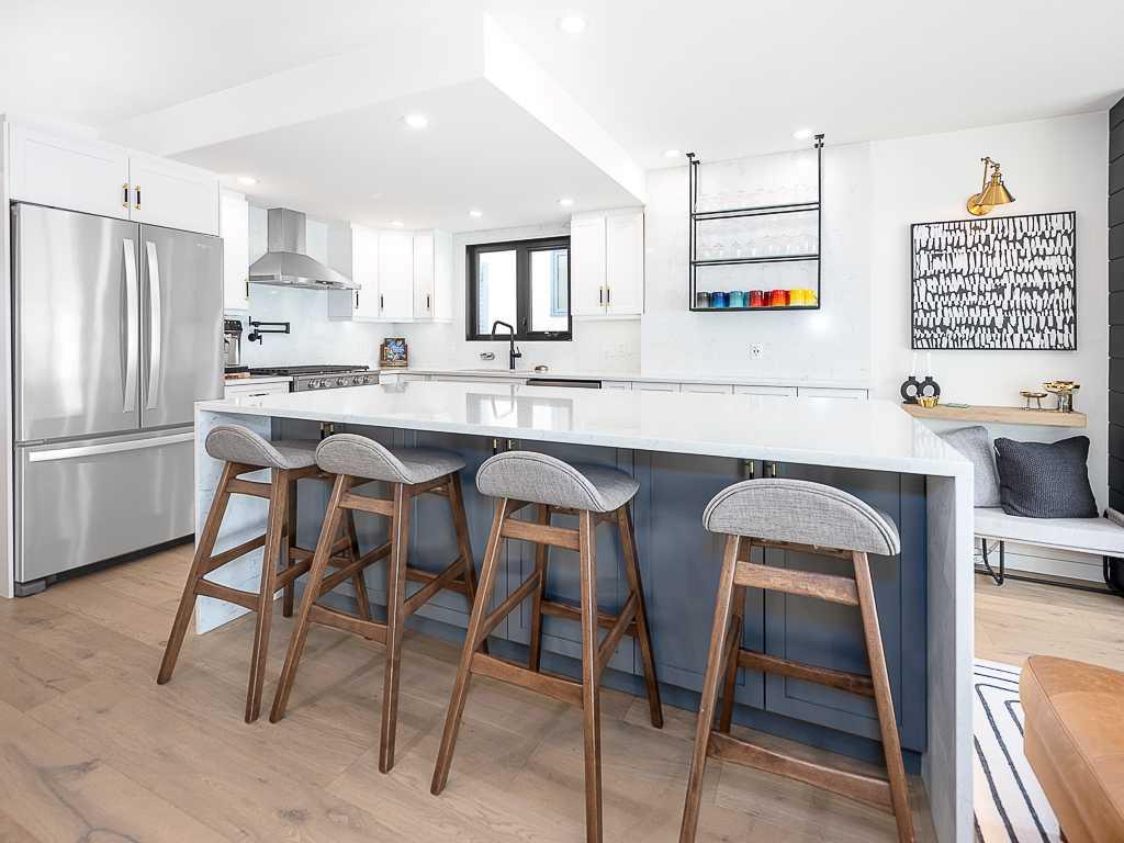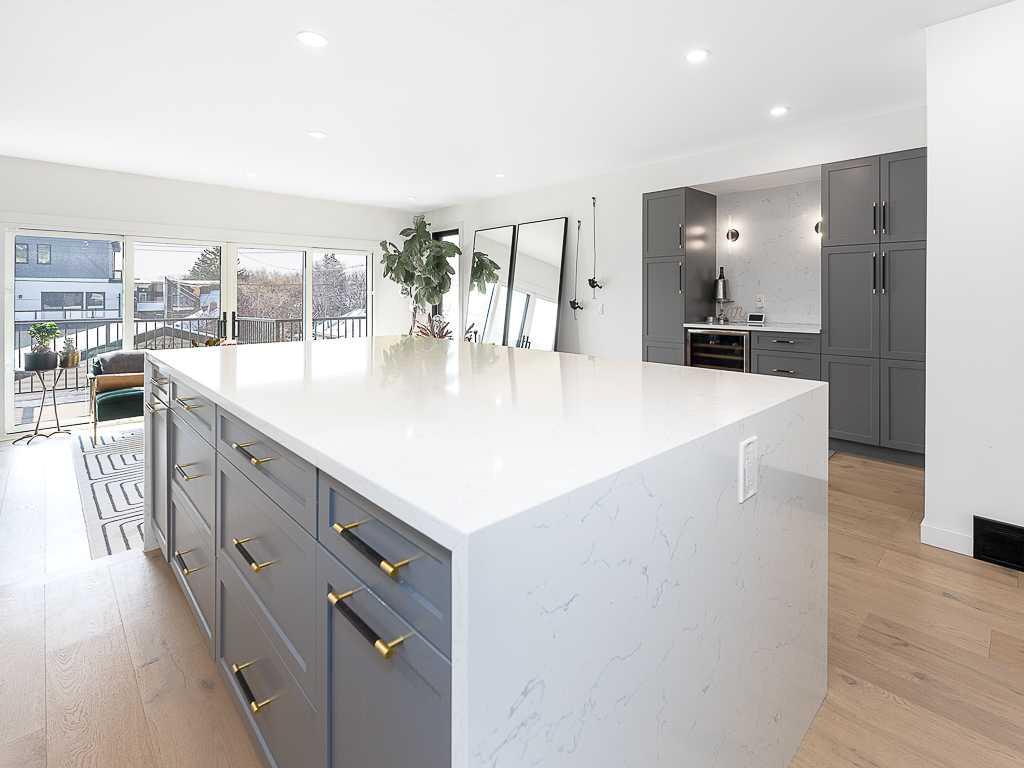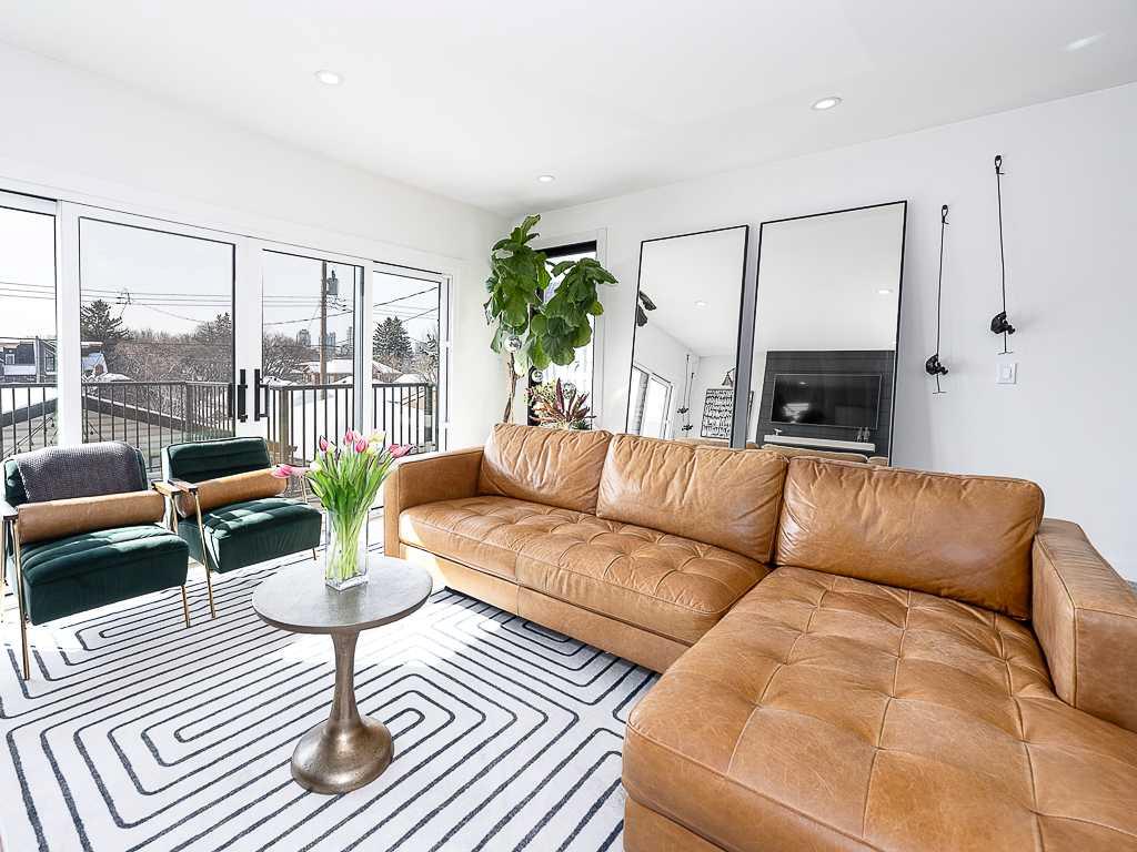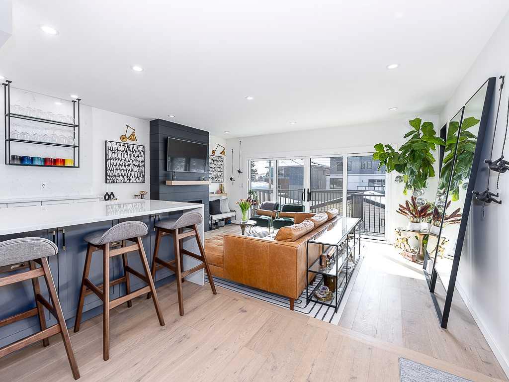 Welcome to one of the most desirable streets in Bridgeland. This beautifully renovated two-storey home. Featuring a fully developed walk-out basement and a south-facing backyard, ideally situated in the vibrant inner-city community of Bridgeland. Located just steps from boutique shops, restaurants, cafés, and everyday amenities, this property offers an exceptional walkable lifestyle combined with refined modern living. Offering three generously sized bedrooms above grade, this home has been thoughtfully designed to balance comfort and sophistication. The upper level presents a stunning primary bedroom with large windows that fill the space with natural light and provide views of downtown Calgary. The fully renovated ensuite bathroom serves as a luxurious retreat, complete with a stand-alone soaker bathtub, a walk-in tiled shower, and a double vanity. Two additional bedrooms and a beautifully renovated secondary bathroom with a contemporary shower complete the upper level. The main floor showcases an open-concept design that is ideal for entertaining, highlighted by a warm and inviting fireplace and a chef-inspired kitchen. High-end finishes include quartz countertops, a spacious eat-up island, a gas range, and an oversized refrigerator, making the space equally suited for everyday living and hosting. Step directly onto the south-facing rear deck, creating a seamless transition between indoor and outdoor living spaces. The fully developed walk-out basement offers exceptional flexibility, featuring a spacious recreation room, a full bathroom, a laundry room, and a dedicated storage room. With its own separate rear entrance, this level is well-suited for guests or extended family. Extensive upgrades throughout the home provide long-term peace of mind, including a new furnace (2023), hot water tank (2022), central air conditioning system (2021), and complete replacement of plumbing with the removal of Polybutylene piping (2021). Additional improvements include new windows and doors (2023), upgraded attic insulation (2022), a new deck with a ten-year warranty (2021), a motorized awning (2022), and a new garage door (2026). The beautifully designed backyard offers privacy and functionality, complete with a lower patio accessible from the walk-out basement, creating an ideal setting for relaxing or entertaining. A double detached garage provides added convenience. This move-in-ready residence presents an exceptional opportunity to own a meticulously upgraded home in one of Calgary’s most sought-after inner-city communities. Call your favourite agent to book a showing today!