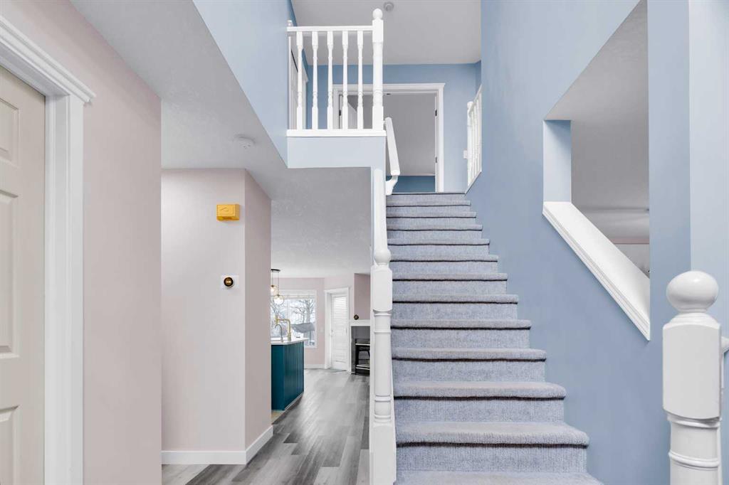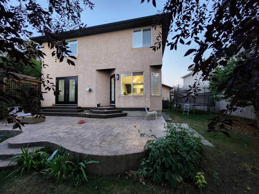 Welcome to this beautifully maintained family home tucked away on a quiet cul-de-sac in the highly sought-after community of Douglasdale—just a short walk across the field to Douglasdale School, making it an ideal location for growing families. Offering nearly 3,100 sq ft of developed living space, this home combines functionality, comfort, and timeless appeal. Step inside to a bright and inviting main floor featuring a spacious living room and formal dining area, perfect for entertaining. Toward the back of the home, you’ll find an open-concept layout designed for everyday living, complete with a large kitchen showcasing newer stainless steel appliances, a central island, pantry, and a sun-filled breakfast nook. The adjoining family room is warm and welcoming, highlighted by a stunning three-sided gas fireplace that adds charm and comfort. Upstairs, the generous primary retreat features a walk-in closet and a well-appointed ensuite with a separate shower, relaxing soaker tub, dedicated vanity space, and private water closet. Two additional bedrooms and a full 4-piece bathroom complete the upper level. The fully developed basement offers incredible versatility with a fourth bedroom, another full bathroom, a spacious recreation area, and a cozy media room—complete with TV and speaker system—perfect for movie nights or entertaining guests. Step outside to enjoy the massive pie-shaped backyard, beautifully landscaped with an interlocking stone patio—ideal for summer BBQs, family gatherings, and outdoor relaxation. Recent updates provide peace of mind, including newer fixtures(2024), furnace, humidifier and AC unit(2021), new quartz(2024), new flooring(2025), newer appliances (2019), new stove(2024), hot water tank and water softener (2019), interior paint (2026), and a renovated secondary bathroom (2019). This is a rare opportunity to own a spacious, move-in-ready home in an unbeatable family-friendly location. Don’t miss your chance—book your private showing today!
