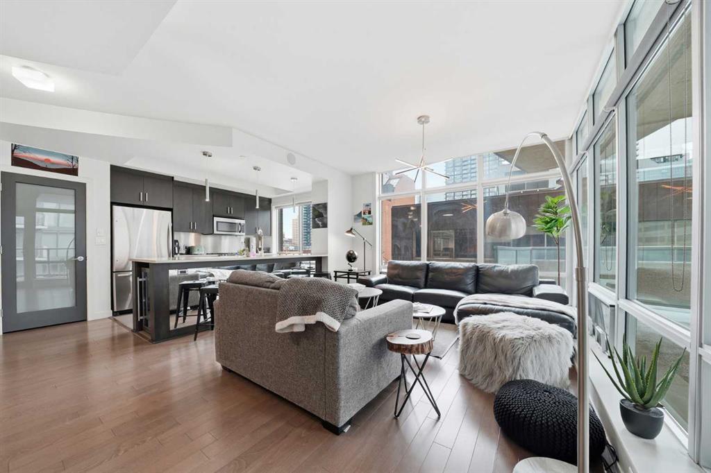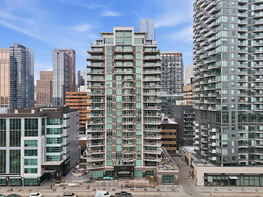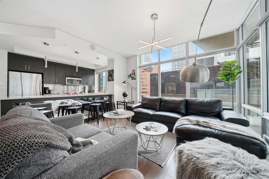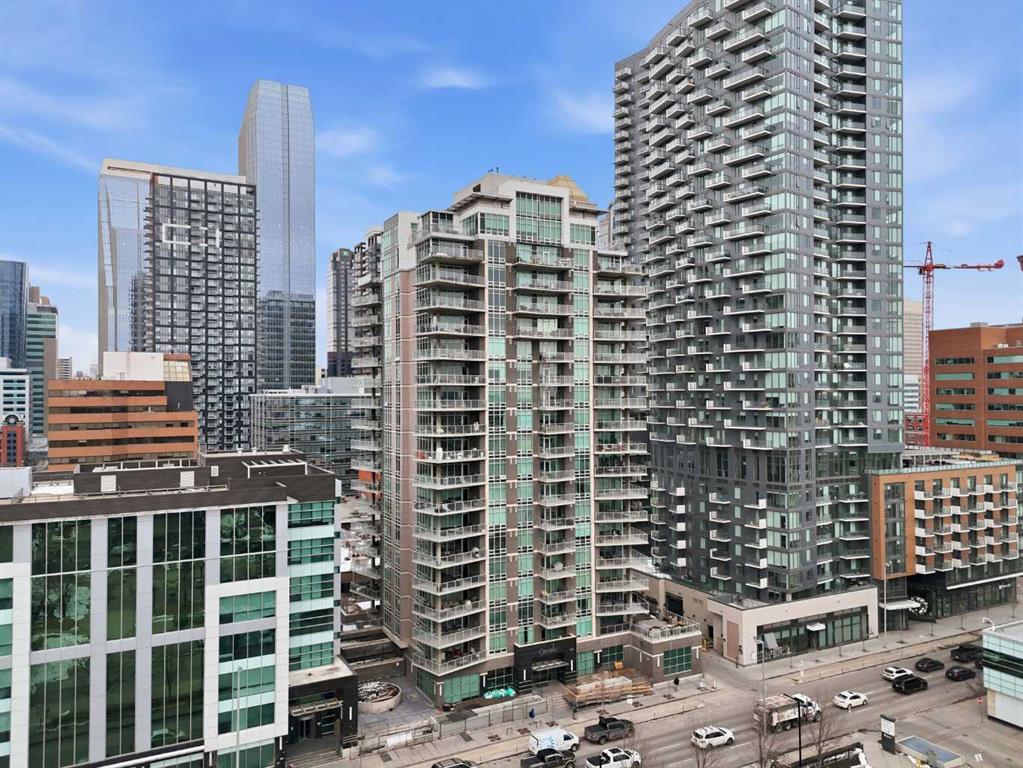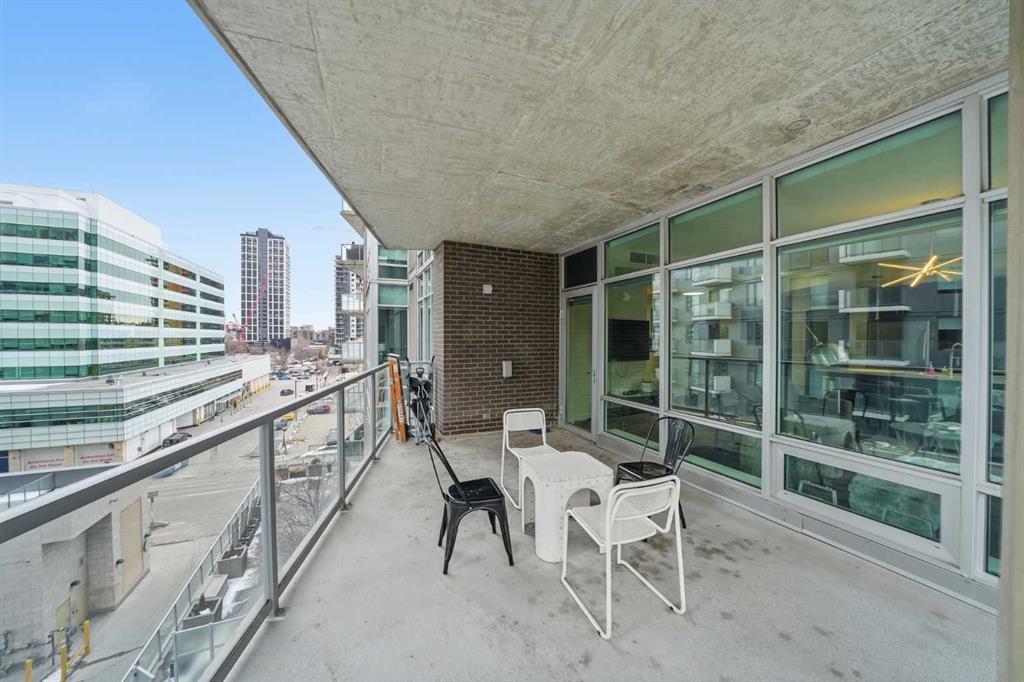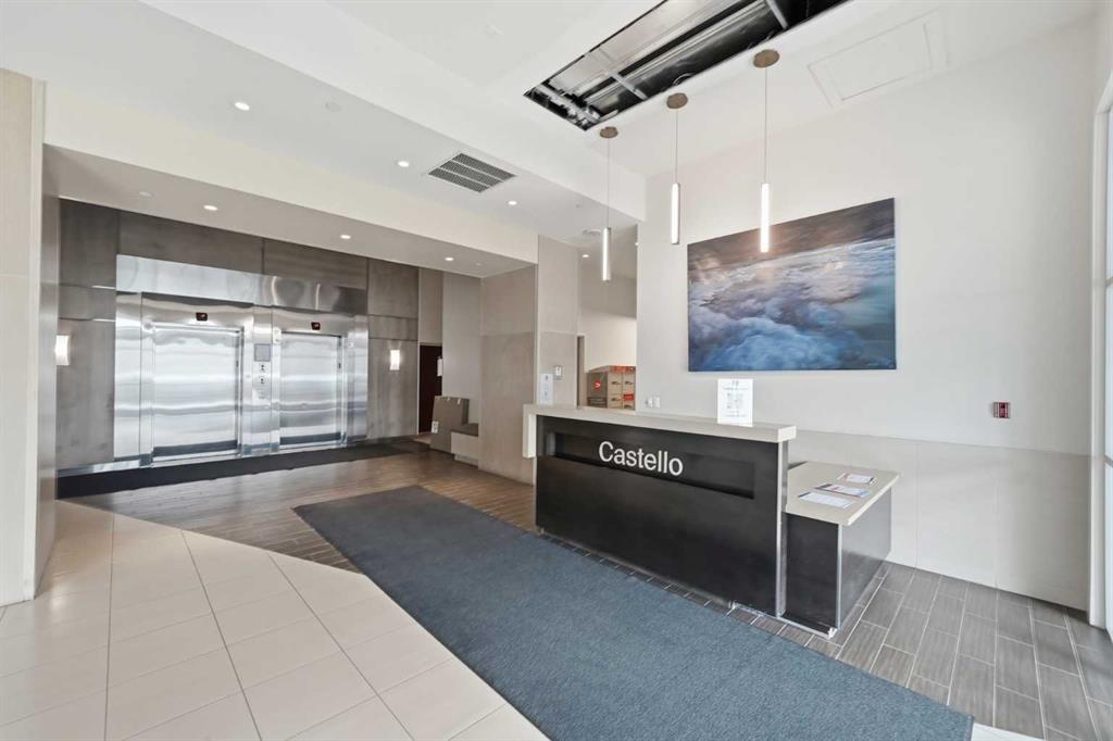 Welcome to Castello, where luxury meets lifestyle in the heart of downtown. This bright and modern 2-bedroom, 2-bathroom corner unit on the 5th floor offers the perfect blend of style, space, and unbeatable urban convenience. Ideally located just steps from restaurants, shops, and medical services, this home is perfect for those who enjoy a vibrant city lifestyle. The sleek, contemporary kitchen features quartz countertops, modern cabinetry, a striking metal backsplash, and newer oven and bar fridge—perfect for both everyday living and entertaining. The sun-filled living area showcases hardwood flooring, new light fixtures throughout, and built-in ceiling speakers, creating the perfect atmosphere for relaxing or hosting guests. Step outside to your oversized 300+ sq. ft. balcony with natural gas line—an incredible extension of your living space, ideal for summer BBQs, morning coffee, or evening gatherings. The spacious primary bedroom offers a private ensuite and walk-in closet with California Closet organizers, while the second bedroom also features a California Closet system, providing exceptional storage and organization. Additional highlights include in-unit laundry, a dedicated storage room, an oversized underground parking stall conveniently located next to the elevator, a car wash station, and a titled underground storage unit. Residents of Castello enjoy exceptional building amenities including a fully equipped fitness centre, guest suite, meeting room, and concierge service, all within an elegant and welcoming lobby. Located just 2 blocks from the Plus 15 network and only a 5-minute drive to vibrant 17th Avenue, this home is ideal for professionals and downtown enthusiasts.