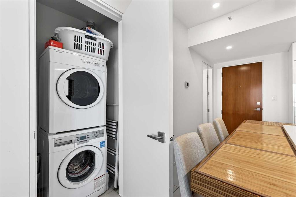 If you don’t know Inglewood, you’re missing out. Full of breweries, restaurants, shops, and gyms, it has that rare mix that nowhere else in the city has. Quiet enough that you can actually relax, but lively enough that there is always something going on. Festivals all summer, live music almost every night, local shops, patios, markets, an F45 right in your building, and Canada’s newest biggest gym, The Realm Fitness. You can walk to Stampede, the new arena, and festivals at Confluence Park. No sitting in traffic, no paying for parking, and when Stampede comes around, your place automatically becomes the hangout spot for your friends. You are walking distance to restaurants, breweries, shopping, downtown, and everything happening in the city, while still being one block from dog parks, river pathways, and some of the best nature trails in Calgary. Now the condo. Built in 2020, this modern condo gives you the best part of the area without the headaches of an older building. It has 2 full bathrooms, a den that works as an office or spare room, high-end finishings, a large south-facing patio, so you get the sun all day, but can keep your condo cool with the central AC. The buildings across the street are already built, so you are not gambling on a future construction site showing up in front of you, and losing your view. Secure underground parking, bike storage, and a storage locker included. If you want city living without giving up green space, peace and quiet, or your weekends, this is about as good as it gets.