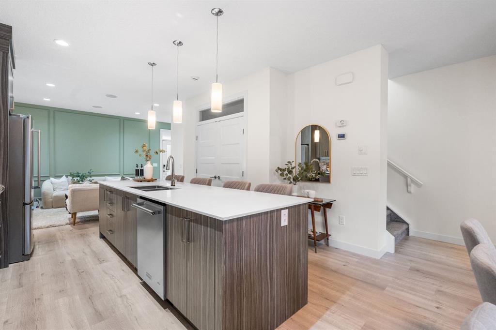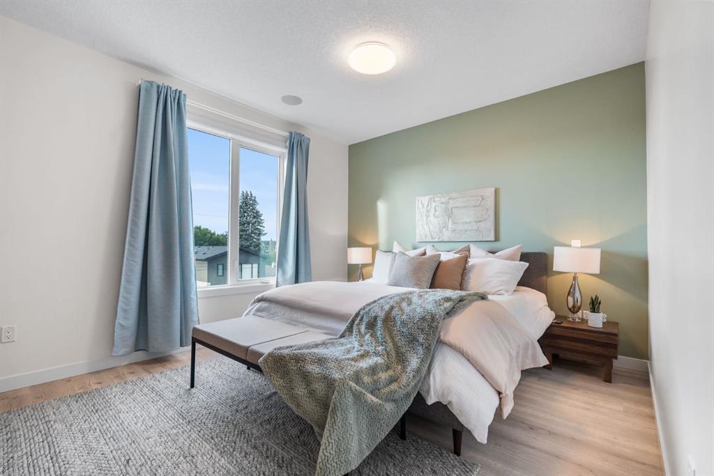 A rare opportunity to own a fully upgraded inner-city townhouse offering over $150,000 in recent renovations. Perfectly positioned on a quiet, tree-lined street in sought-after Crescent Heights, this exceptional home features over 2,600 sq ft of beautifully curated living space, 4 bedrooms, 4.5 bathrooms, and a detached single-car garage. Extensively updated throughout, recent improvements include new luxury vinyl plank flooring, designer backsplash tile in the kitchen and bathrooms, fresh paint, upgraded attic insulation and venting, new lighting, and a newly completed exterior with a 5-year warranty—providing both style and peace of mind. Step inside to discover a bright, open-concept main floor with 9-foot ceilings and brand-new luxury vinyl plank flooring. The spacious living room is highlighted by custom wall moulding and a cozy gas fireplace, creating a warm yet refined atmosphere. The chef-inspired kitchen is a true showpiece, complete with white quartz countertops, built-in appliances, a gas range, a striking new backsplash, and an oversized island—perfect for entertaining. A generous dining area, built-in speaker system, and a stylish powder room complete this level. The second floor offers two well-appointed bedrooms, including one with its own private ensuite, an additional full bathroom, and a large, convenient laundry room. The entire third level is dedicated to an impressive primary retreat, featuring a spacious bedroom with a modern accent wall, a versatile lounge or bonus area, a luxurious 5-piece ensuite, and a large walk-in closet. Fully finished basement with additional bedroom, full bath and rec room. Additional recent servicing includes the furnace and A/C with full duct cleaning, as well as professional maintenance of the fridge, microwave, washer, and dryer. Ideally located just minutes from downtown and steps to the Bow River Pathway, this home offers unmatched access to outdoor amenities including Rotary Park, Crescent Heights Park, and the iconic McHugh Bluff lookout. Enjoy proximity to transit, schools, local cafés, restaurants, and boutique shopping—everything you need right at your doorstep. This is more than a home—it’s an exceptional inner-city lifestyle in one of Calgary’s most desirable communities.
