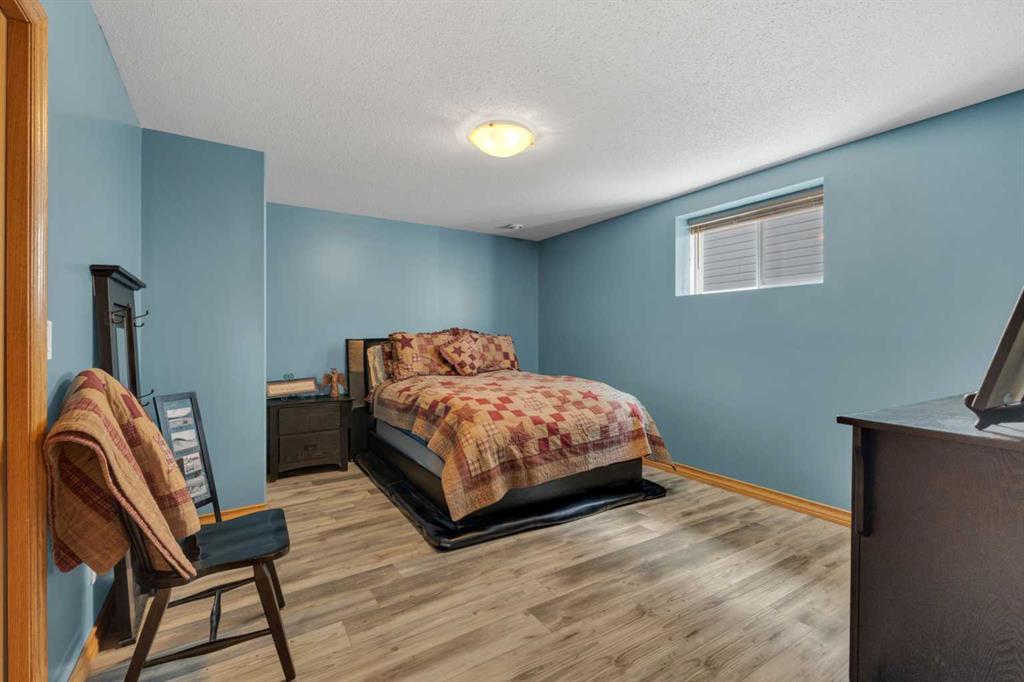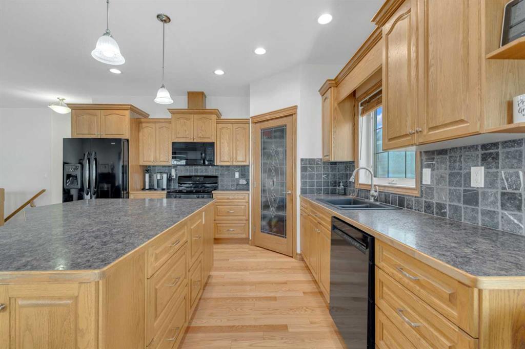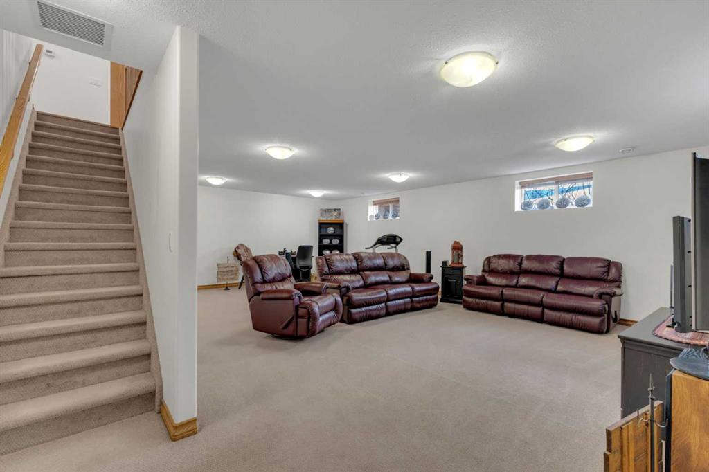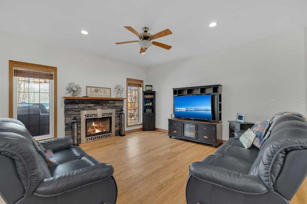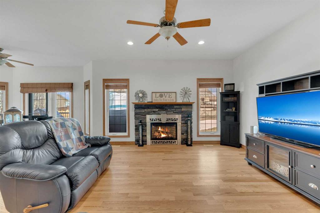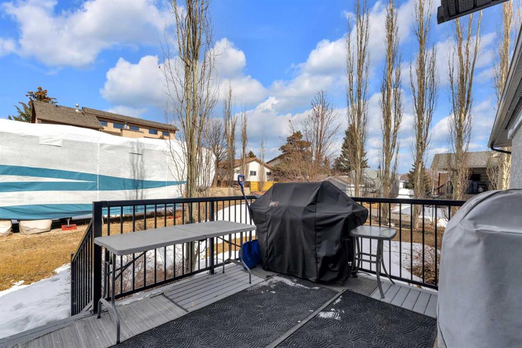 Immaculate 1-owner custom bungalow offering the perfect blend of space, comfort, and low-maintenance living. Featuring fresh paint, stunning hardwood floors, triple pane windows, and hot water on demand, this home is truly move-in ready. The bright open-concept main floor showcases generous living spaces, 3 bedrooms including a spacious primary retreat with walk-in closet and ensuite, plus convenient main floor laundry with hidden storage. The oversized heated garage easily accommodates 2 vehicles—including a pickup—with extra room for tools and toys. Downstairs, enjoy a massive, light-filled family/games room with high ceilings, 2 additional large bedrooms, a full bath, and extensive storage throughout. Step outside to a beautifully maintained yard complete with RV parking (30-amp service), concrete curbing, perennial landscaping, low-maintenance rubber mulch, and a large rear deck with gas BBQ hookup—perfect for entertaining. This exceptionally well-cared-for home offers space, function, and lifestyle—ideal for families or those looking to enjoy main floor living without compromise located in a quiet neighborhood and only steps to walking trails.