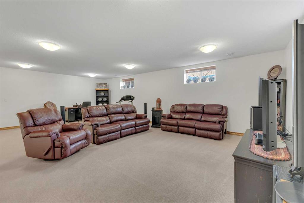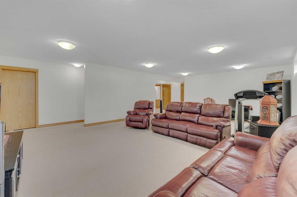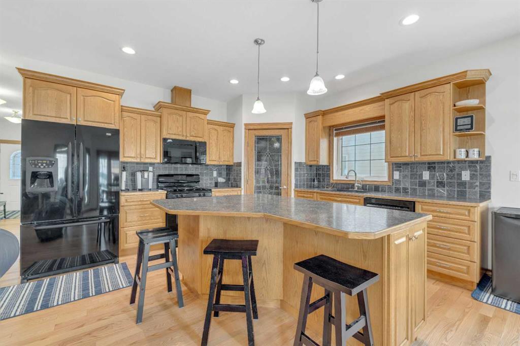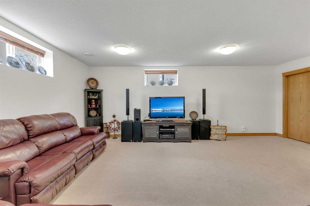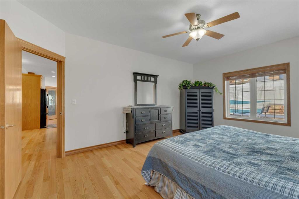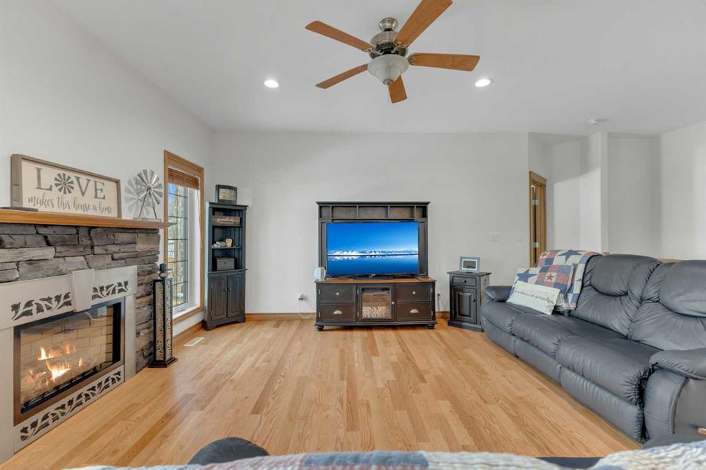 Immaculate 1-owner custom bungalow offering the perfect blend of space, comfort, and low-maintenance living. Featuring fresh paint, stunning hardwood floors, triple pane windows, and hot water on demand, this home is truly move-in ready. The bright open-concept main floor showcases generous living spaces, 3 bedrooms including a spacious primary retreat with walk-in closet and ensuite, plus convenient main floor laundry with hidden storage. The oversized heated garage easily accommodates 2 vehicles—including a pickup—with extra room for tools and toys. Downstairs, enjoy a massive, light-filled family/games room with high ceilings, 2 additional large bedrooms, a full bath, and extensive storage throughout. Step outside to a beautifully maintained yard complete with RV parking (30-amp service), concrete curbing, perennial landscaping, low-maintenance rubber mulch, and a large rear deck with gas BBQ hookup—perfect for entertaining. This exceptionally well-cared-for home offers space, function, and lifestyle—ideal for families or those looking to enjoy main floor living without compromise located in a quiet neighborhood and only steps to walking trails.