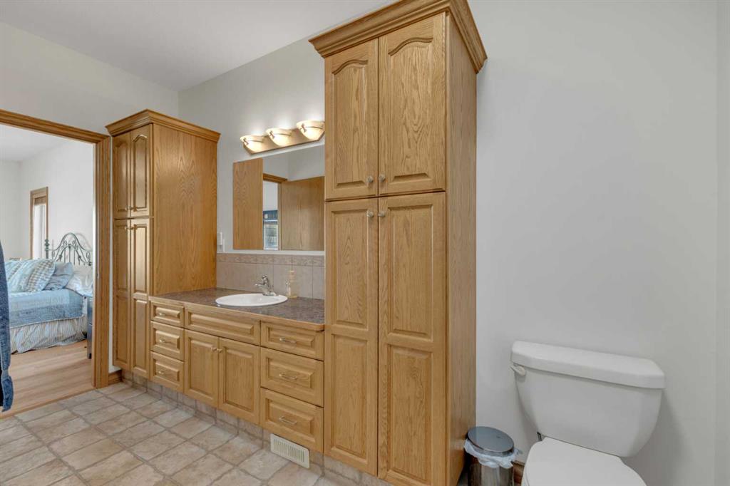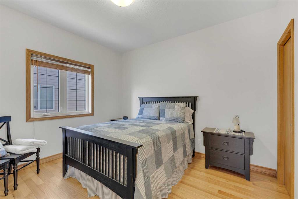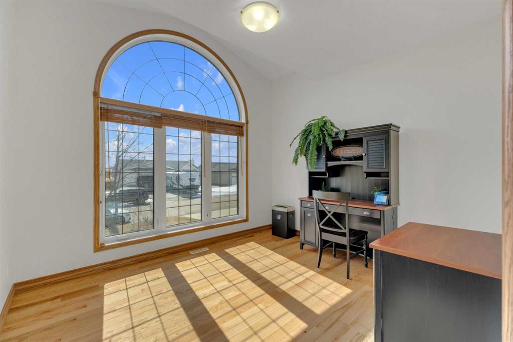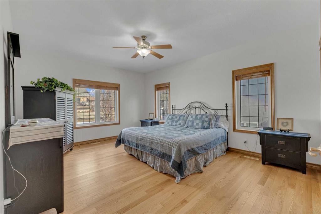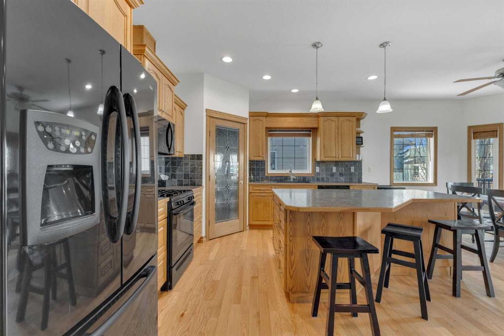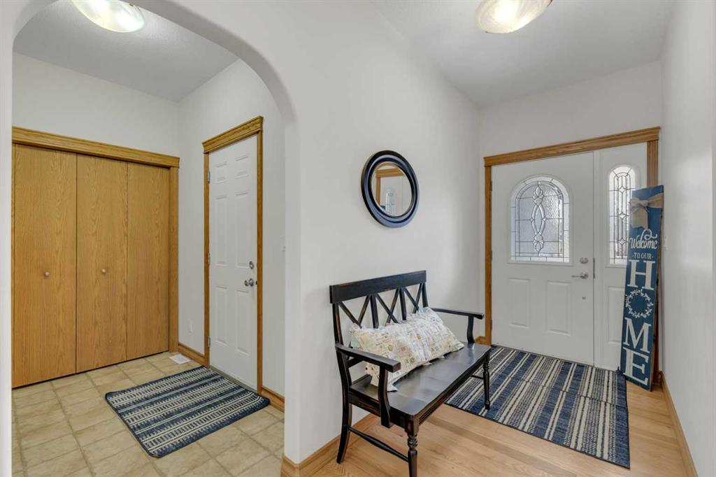 Immaculate 1-owner custom bungalow offering the perfect blend of space, comfort, and low-maintenance living. Featuring fresh paint, stunning hardwood floors, triple pane windows, and hot water on demand, this home is truly move-in ready. The bright open-concept main floor showcases generous living spaces, 3 bedrooms including a spacious primary retreat with walk-in closet and ensuite, plus convenient main floor laundry with hidden storage. The oversized heated garage easily accommodates 2 vehicles—including a pickup—with extra room for tools and toys. Downstairs, enjoy a massive, light-filled family/games room with high ceilings, 2 additional large bedrooms, a full bath, and extensive storage throughout. Step outside to a beautifully maintained yard complete with RV parking (30-amp service), concrete curbing, perennial landscaping, low-maintenance rubber mulch, and a large rear deck with gas BBQ hookup—perfect for entertaining. This exceptionally well-cared-for home offers space, function, and lifestyle—ideal for families or those looking to enjoy main floor living without compromise located in a quiet neighborhood and only steps to walking trails.