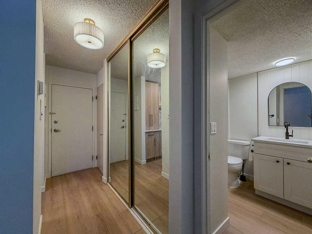 For more information, please click the "More Information" button. Location, Location, Location! Welcome to Varsity Villas. A gem in the heart of Calgary’s highly sought-after community of Varsity. This beautifully designed unit has been recently refreshed with a stunning new kitchen including custom honey oak cabinetry, new white and gold stainless appliances with an integrated dishwasher, striking Arabescato quartz countertops alongside matching slab backsplash paired with elegant champagne hardware. Wide plank white oak lvp flooring throughout the unit, fresh paint, gold fixtures and hand crafted artisan tile imported from Spain. This main-floor corner unit offers a spacious layout featuring a private entry with a large storage room, 4-piece bathroom with in-suite laundry, an oversized primary bedroom, expansive living room with a gas fireplace, large windows and balcony that flood the space with natural light. This move-in-ready space is turn-key and incredibly designed with comfort and functionality in mind. Perfectly located across from Market Mall, you’ll enjoy unmatched convenience with shopping, dining, and services just steps away. Inside Varsity Villas, you’ll find thoughtful amenities including a secure entry system, well-maintained elevators, heated underground parking, and assigned covered stalls. This is a very well run complex with a healthy reserve fund, all utilities covered excluding electricity. Adult only complex: 25 and over. Post tension parkade. No pets allowed.