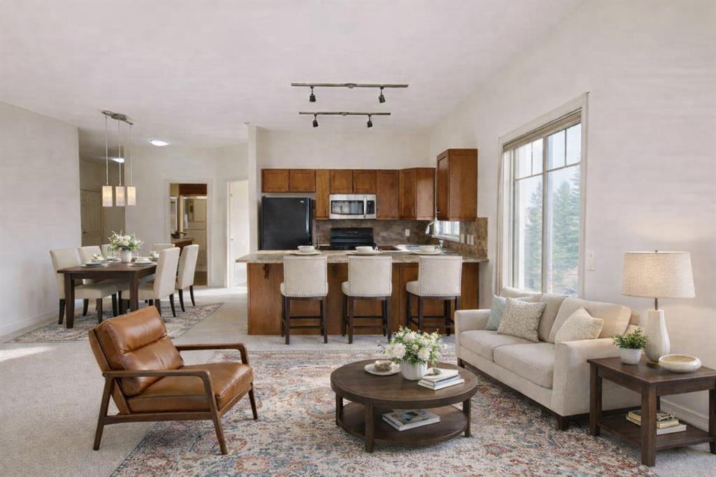 Location, Location, Location! Welcome to one of the largest CORNER units offered in Mesa, offering an exceptional blend of space, comfort, and lifestyle in the sought-after community of Crystal Shores! This beautifully maintained 2 bedroom + den condo has been freshly updated with brand new paint, creating a bright and inviting atmosphere throughout. There is also a den is perfect for a home office or sitting room. The primary bedroom boasts a walk-in closet and an ensuite, while the secondary bedroom features direct access into the main bathroom which doubles as the ensuite. Enjoy the privacy and tranquility of a unit that backs onto open green space with no direct neighbours, plus stunning mountain views that elevate everyday living. The open-concept layout is ideal for both relaxing and entertaining. This unit comes with the rare bonus of TWO titled parking stalls—one underground and one surface—providing convenience and flexibility. Residents enjoy EXCLUSIVE LAKE ACCESS to Crystal Shores Lake, perfect for year-round activities, as well as outstanding building amenities including a fully equipped fitness centre, hot tub, steam room, car wash bay, and a clubhouse featuring a rentable party room with kitchen, pool table, and darts. A fantastic opportunity to own a spacious, well-appointed condo in a prime Okotoks location—don’t miss it!