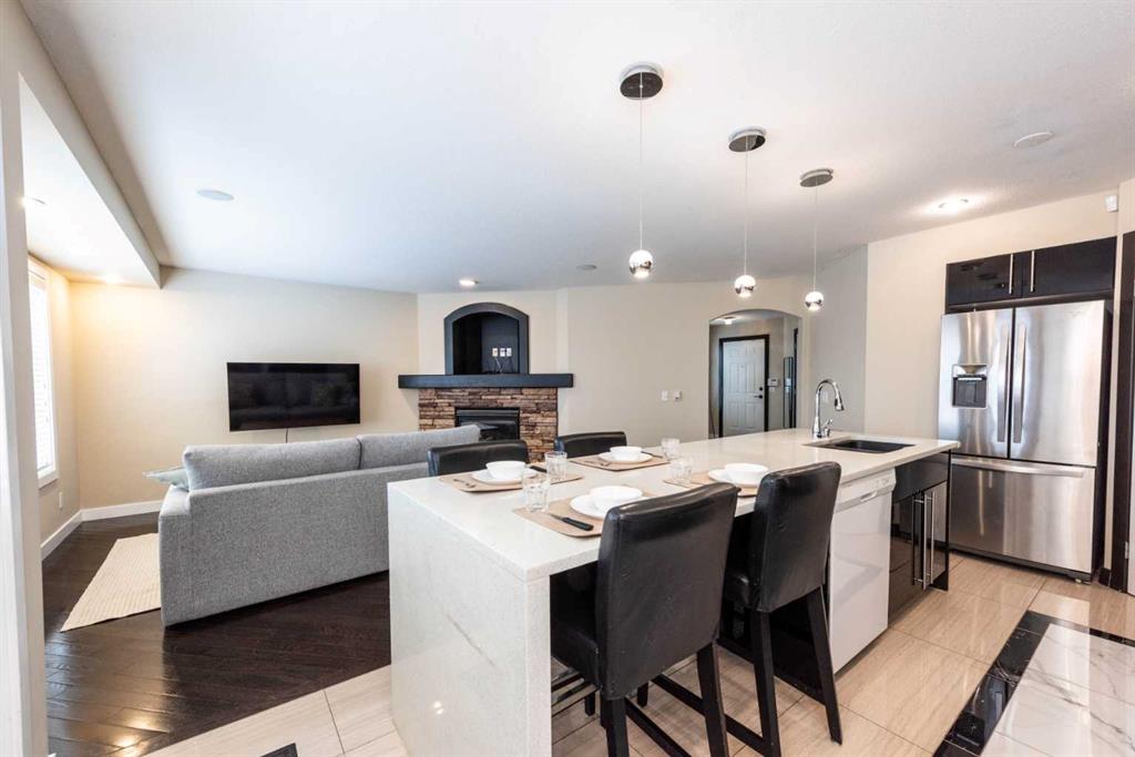Welcome to this beautifully bright two-storey family home with a fully finished walkout basement suite, ideally located in Coventry Hills near both schools! The main floor showcases an open-concept layout designed for both everyday living and entertaining, complemented by a sunny south-facing backyard. The chef-inspired kitchen features upgraded built-in appliances, an electric cooktop with a sleek glass chimney hood fan, and quartz countertops—perfectly balancing style and functionality. The spacious eating bar offers the ideal spot for hosting, whether it’s casual drinks or appetizers with family and friends. Large windows flood the space with natural light during the day, while the cozy fireplace creates a warm and inviting atmosphere in the evening. Step outside onto the expansive deck and enjoy summer BBQs with ease. Upstairs, you’ll find three generously sized bedrooms, including an upgraded primary suite complete with a walk-in closet. The fully developed walkout basement adds exceptional versatility, featuring a wet bar, additional fridge, separate heating, and a flexible space ideal for a guest suite, home gym, office, media room or an AirBnB possibility. Car enthusiasts and families alike will appreciate the incredible parking and storage options, including an insulated double attached garage, an expanded extra-wide driveway, and an oversized double detached garage at the rear. Yes, 2 Double sized Garages. Some updates include: Roof (2021), Hot Water Tank (2021), Furnace (2012), and Heat Recovery Ventilator (2012). Siding( 2023). Conveniently located close to schools, transit, playgrounds, shopping, restaurants, and the VIVO Leisure Centre—this home truly offers the perfect blend of comfort, functionality, and location.