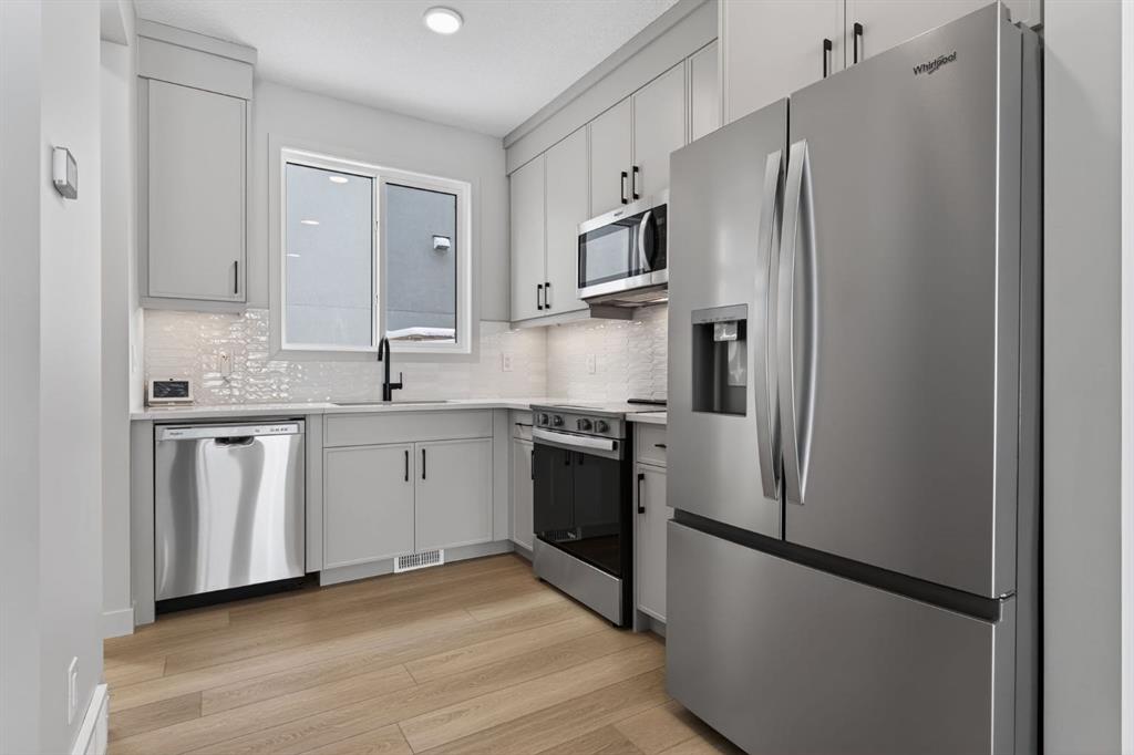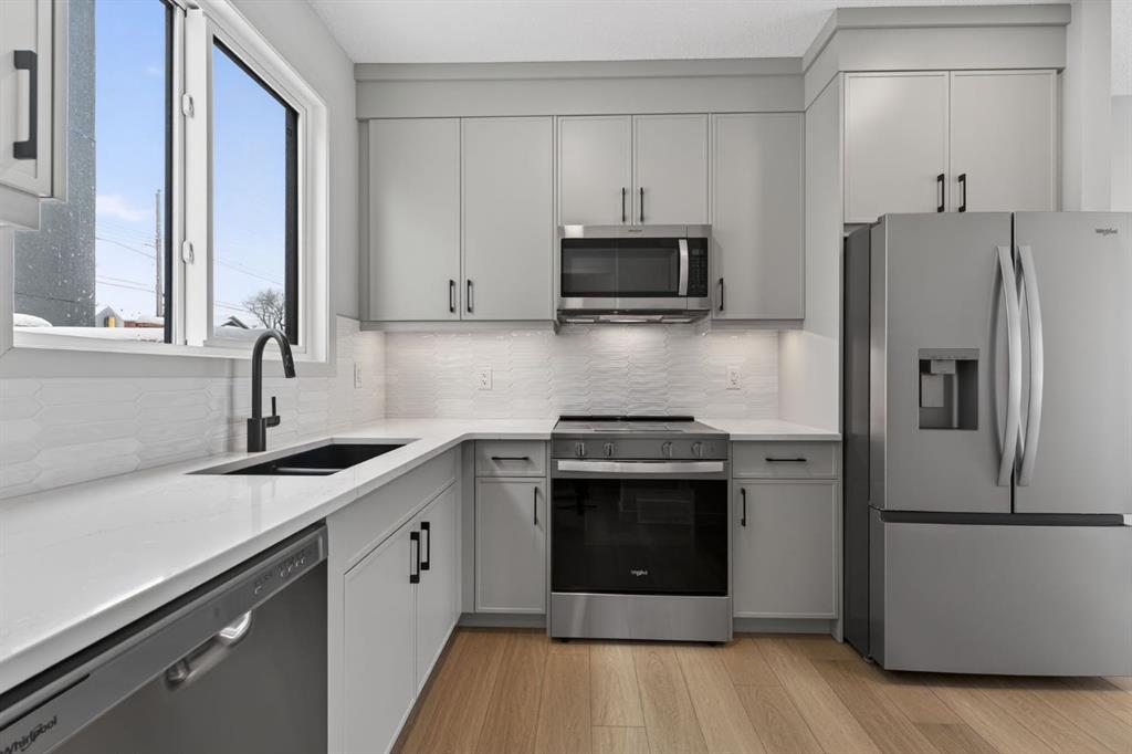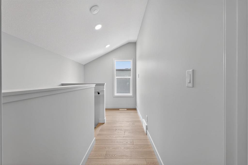 Park-facing, light-filled, and thoughtfully designed, this brand-new Windsor Park townhome captures the essence of modern inner-city living. Surrounded by mature trees and steps to nearby greenspace, the setting offers a quiet, established feel while still keeping you connected to everything the city has to offer. Positioned just minutes from Chinook Centre, Britannia Plaza, boutique shopping, local markets, and some of Calgary’s best dining, the location strikes a balance between convenience and character. Coffee shops, fitness studios, the Calgary Golf and Country Club, and a quick downtown commute further elevate the lifestyle. Inside, the home spans three well-designed levels with a north to south orientation that allows natural light to move through the space from morning to evening. The main floor is both functional and refined, featuring 9 foot ceilings, wide plank flooring, and a streamlined open concept kitchen with full height cabinetry, quartz countertops, and generous storage. The living space extends seamlessly outdoors, offering both a front patio and a private, fenced south facing backyard with a deck, ideal for everyday living and entertaining. The second level includes two spacious bedrooms, each with walk in closets, along with a full bathroom and conveniently located laundry. The entire third floor is dedicated to the primary retreat, complete with a lofted den, a substantial walk in closet, and a spa inspired ensuite designed as a true escape. The unfinished basement provides flexibility for future development, whether as a guest suite, home gym, or additional living space. A detached single garage with 220V rough in for EV charging and added storage completes the home. Blending clean design, practical living, and a sought after park facing location, this is a rare opportunity to own a brand new townhome in one of Calgary’s most established inner city communities.