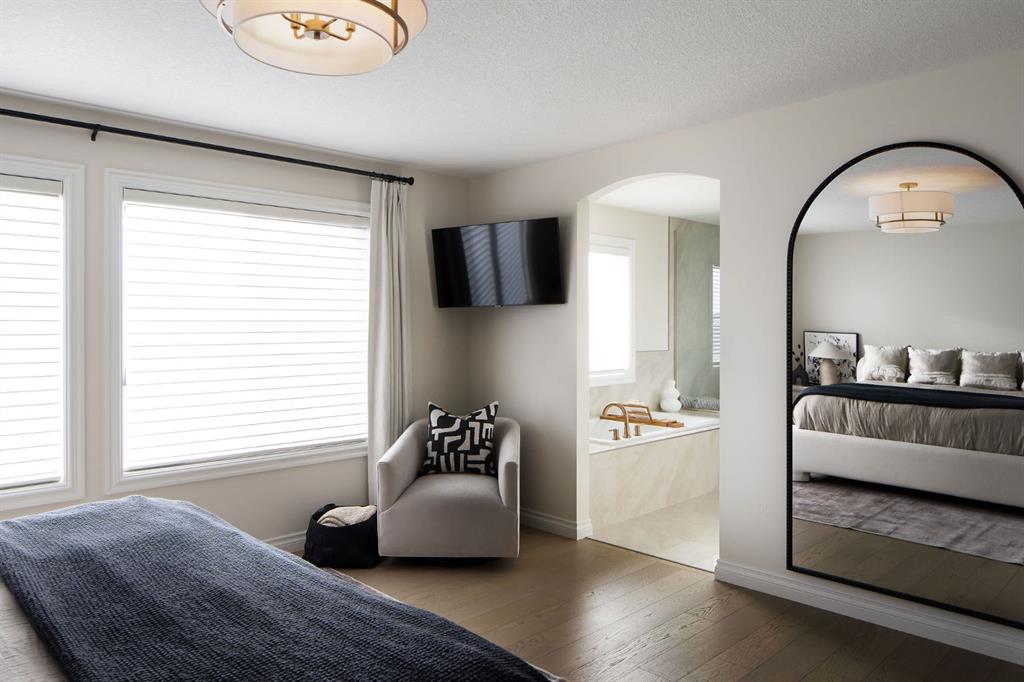 BILD Calgary Award Finalist | Built by Morrison Homes Backing onto a quiet, private wooded setting in Legacy, this beautifully upgraded estate home offers timeless design paired with exceptional functionality. Upgraded hardwood flooring flows throughout both the main and upper levels, complemented by ornate moldings and custom cabinetry. The chef-inspired kitchen is equipped with premium stainless steel appliances, granite countertops, custom glass cabinetry, and a statement hood fan. The open-concept main floor features a welcoming great room with gas fireplace, an elegant dining area, and a private office with custom built-ins. A thoughtfully designed mudroom, wet bar, and large enclosed pantry connect seamlessly to the heated triple attached garage. Upstairs, the spacious primary retreat offers a spa-like ensuite and walk-in closet, alongside three additional bedrooms, a full bathroom with dual sinks, a generous bonus room, and convenient upper-level laundry. The fully finished sunshine basement includes a bedroom with walk-in closet, a 4-piece bathroom, and a large recreation room. Located just steps from the future Living Spirit Catholic School (K–9, opening 2026) and close to parks, shopping, and major roadways, this exceptional home combines luxury, comfort, and a rare wooded backdrop in one of Legacy’s most desirable family communities.