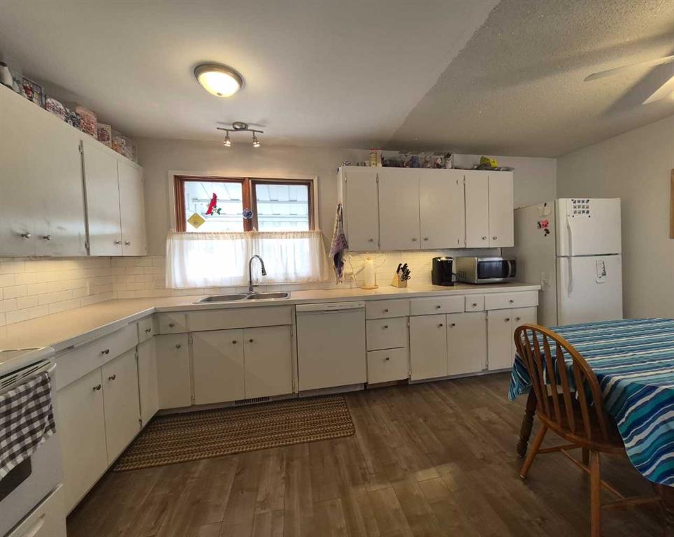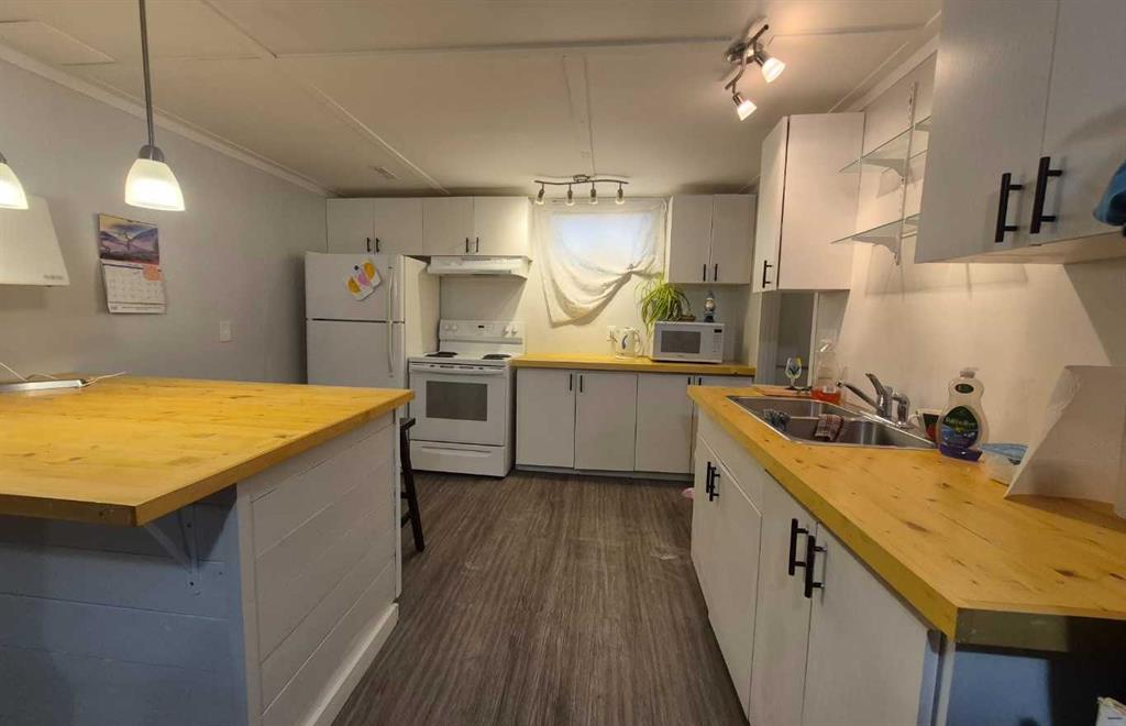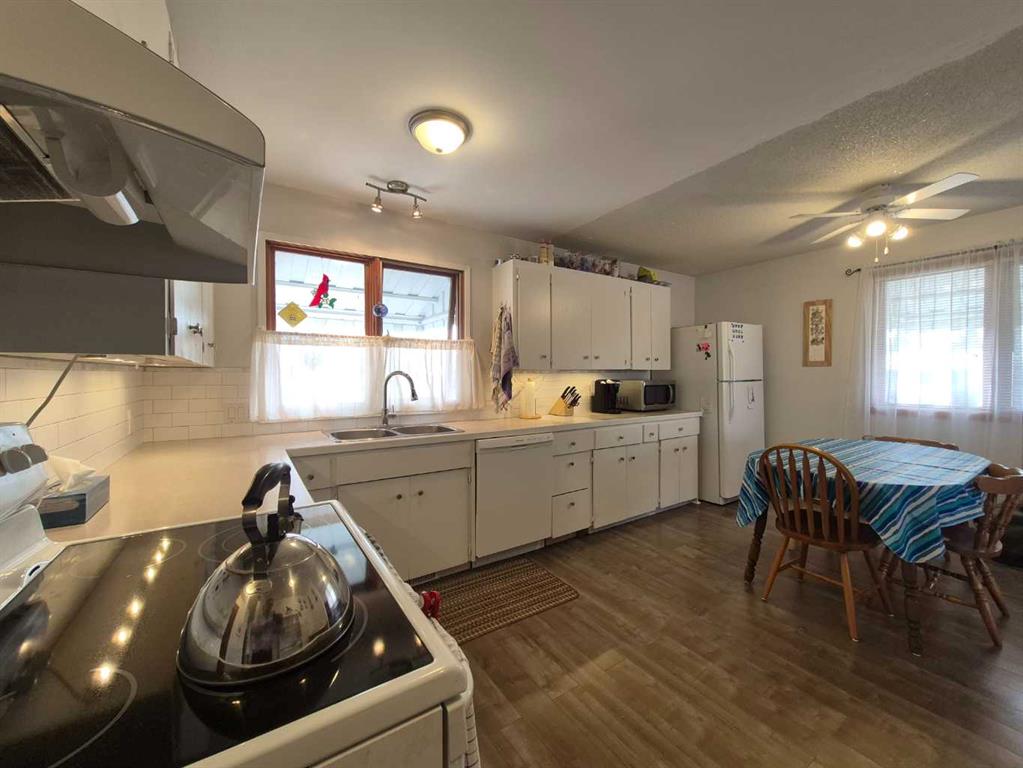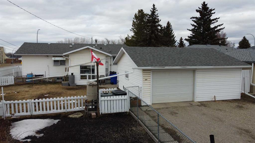 This Olds property gives you just a bit more than average! Situated on a HUGE 65ft x 120ft oversized lot, it offers a south-facing fenced backyard with a garden area waiting for your spring planting. Parking galore – a front driveway for two, (or RV)additional rear off alley parking for two more, plus a double detached garage. A strip of Town greenspace to the west means no sidewalk snow clearing, Built in 1970, this solid home has been well maintained and upgraded where needed. Constructed to last, it includes copper wiring and plumbing, a 10-year-old asphalt shingle roof, and updated laminate and lino flooring. The main floor offers excellent natural light throughout, a spacious kitchen and eating area with a brand-new dishwasher, a large front living room, two comfortable bedrooms, and an updated 4-piece bath. A bright four-season south-facing back room doubles as a laundry space with views of the yard—perfect for keeping an eye on kids or pets. Washer and dryer included. Downstairs, you’ll find a fully developed basement featuring a comfortable family room, a 3rd bedroom with a large egress window, a second full 4-piece bath, and a handy kitchenette area. There’s also a flex/hobby room with a closet that could easily be turned into a 4th bedroom (add a larger window.) The utility room is generous in size, with a newer furnace and a 3-year-old hot water tank. Nestled in an established Olds neighborhood, close to amenities like parks, shops, and the hospital, this home is built to last and ready for your personal touch. This is the kind of property that continues to offer lasting value and room for your ideas as the years go by. From the comfort of your home take the I-Guide 360 virtual Tour and imagine yourself here today!