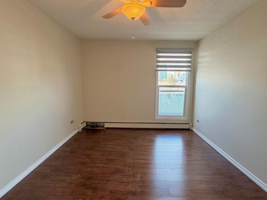 Great location in the heart of Lower Mount Royal. The Wellington is a well-maintained concrete building featuring an inviting lobby, elevator, sauna, laundry facilities, assigned parking, and ample street parking for guests. This freshly painted top-floor 1 bedroom, 1 bathroom unit offers a functional layout with a kitchen featuring a raised breakfast bar and adjacent dining area. The spacious living room with laminate flooring opens onto a north-facing covered balcony with beautiful downtown views. The bright bedroom includes laminate flooring and a large closet with built-in organizers. A 4-piece bathroom and in-suite laundry and storage complete the space. Condo fees include all utilities except electricity. Ideally located just steps from 17th Avenue, with easy access to shops, restaurants, groceries, fitness studios, and major routes including Crowchild, Glenmore, and Stoney Trail. A fantastic opportunity in a sought-after inner-city location.
