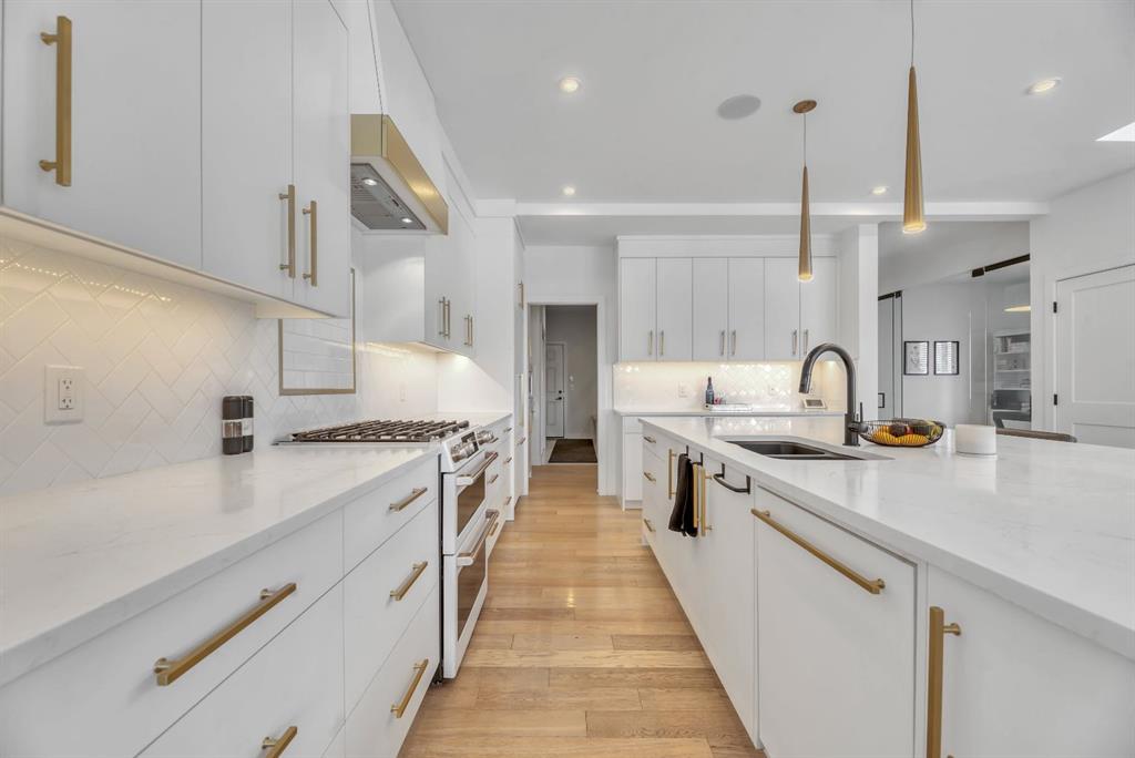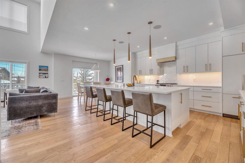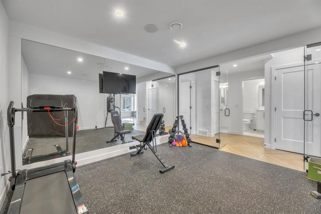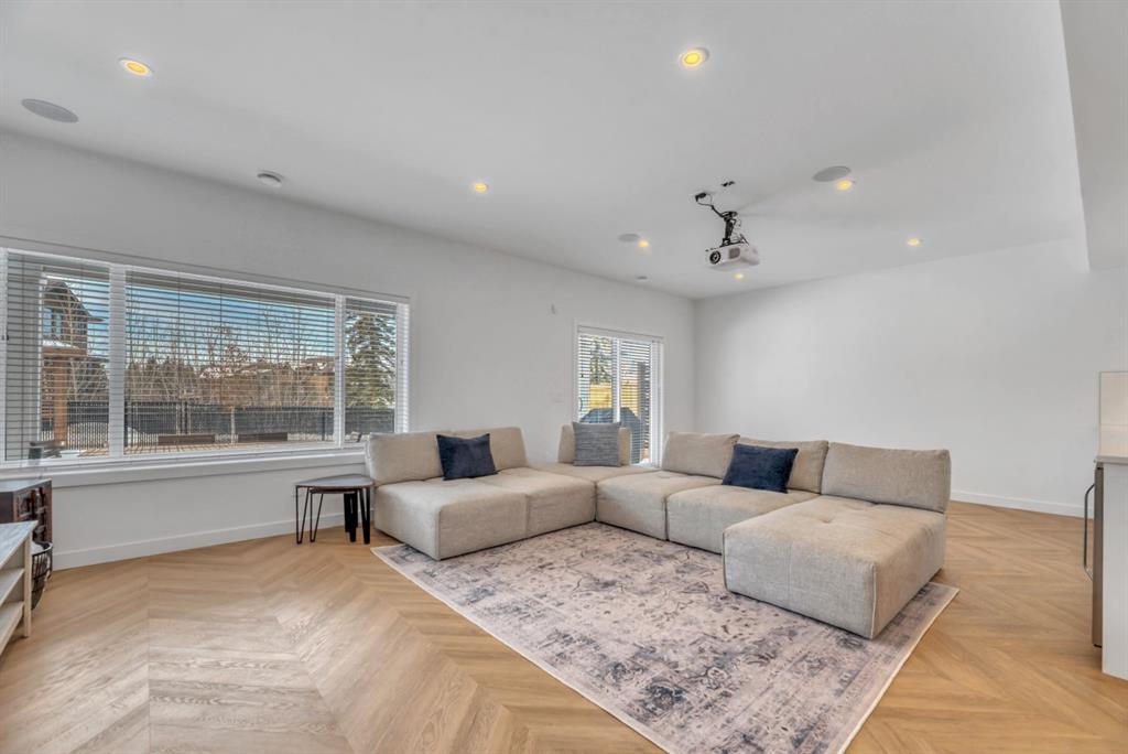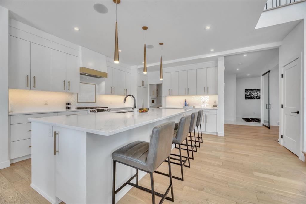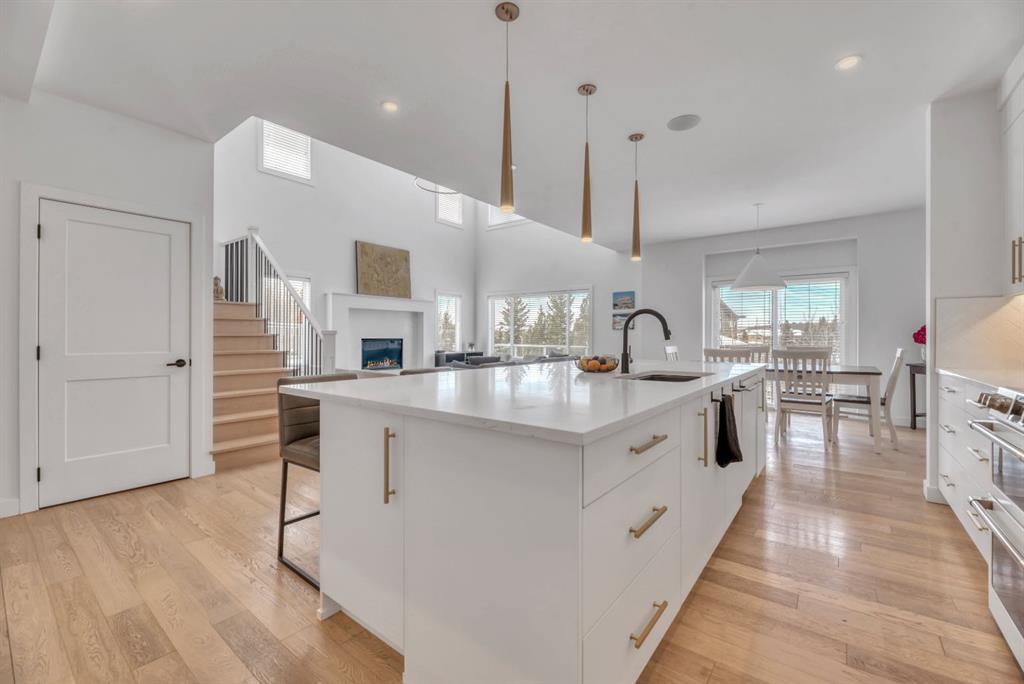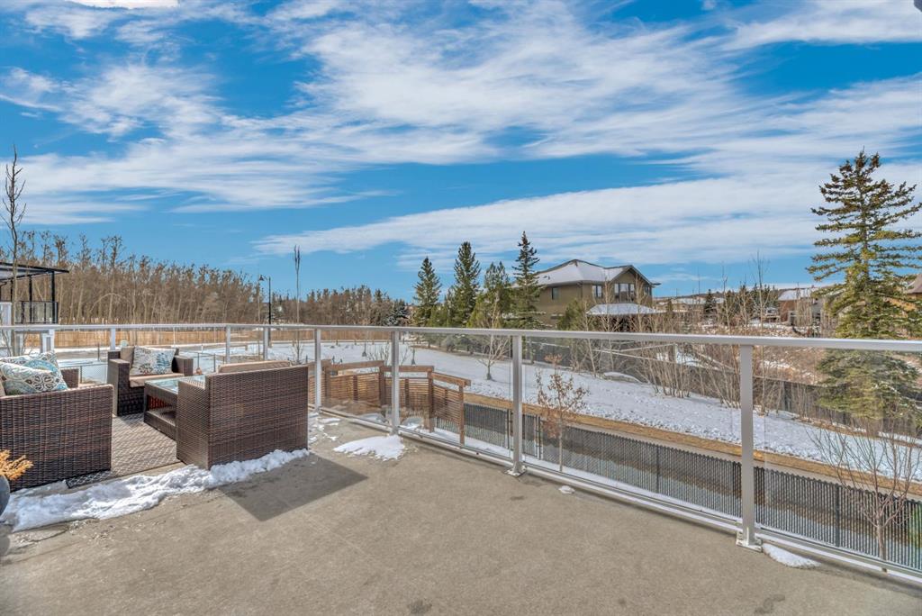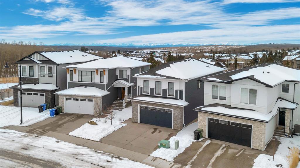Welcome to an exceptional offering in the prestigious community of Springbank Hill, where elevated design meets everyday function in this stunning 2,806 sq ft + fully finished walkout home backing onto a natural ravine & pathway system with MOUNTAIN VIEWS. From the moment you arrive, the home impresses with a spacious entry & refined finishes throughout, inc. white oak hardwood flooring. A private front den, enclosed by sleek panel glass doors, provides the perfect home office space. The heart of the home is the breathtaking open-to-above great room, anchored by a large scale framed fireplace, while expansive windows flood the space with light & showcase the tranquil ravine views. The designer kitchen is both sophisticated & functional, with white flat-panel cabinetry, matte gold hardware, custom panel French door fridge and dishwasher, Cafe collection 6 burner gas range with double oven and a custom hood fan. A brilliant mix of modern & traditional elements with a blend of herringbone with gold trimmed subway tile niche & a beautifully patterned white quartz counter. Thoughtfully designed pantry shelving, small servery with microwave-cabinet & a well-appointed mudroom elevate everyday convenience. Step outside to your full-width upper deck, the perfect setting to unwind while enjoying uninterrupted views & privacy. Upstairs, the home continues to impress with a vaulted front bonus room featuring a full wall of shelving, along with a well designed laundry room with built-in storage & wash sink. The primary retreat is a nice sanctuary, offering stunning mountain views, a spa-inspired ensuite with separate vanities, a freestanding oval tub, a fully tiled shower with bench & body sprays, & a fabulous walk-in closet with smart built ins. A well-appointed second bath features dual sinks, storage and 2 additional perfect sized bedrooms makes this upper floor an ideal layout. The fully developed walkout basement is designed for both lifestyle & wellness, featuring chevron-laid white oak hardwood flooring, a fantastic rec room space - perfect for a home theatre/games room, & a private gym with full mirror wall, specialized flooring, & glass partition. A spacious fourth bedroom & full 3 pc bath with tiled shower complete this level. Additional features include central air, water softener, & built-in speakers throughout. Outdoors, the professionally landscaped yard with irrigation blends seamlessly into the surrounding environment, offering a rare private setting. Located in one of Calgary’s most sought-after Westside communities, this home offers access to some of the city’s top-rated schools, inc. Webber Academy, Calgary Academy, Rundle College, Ernest Manning and Griffith Woods School. Enjoy quick access to Aspen Landing, Westside Recreation Centre, boutique shopping, dining, paths, major routes and only 15 mins to downtown. This is a rare opportunity to own a modern yet warm & inviting, impeccably finished walkout home in an amazing location.