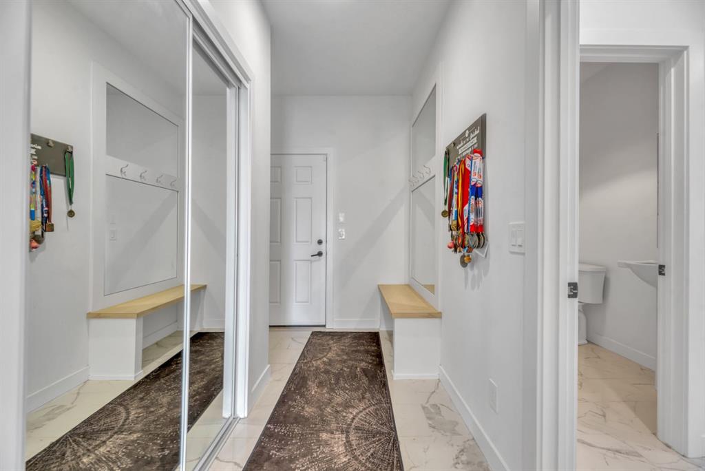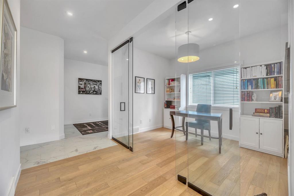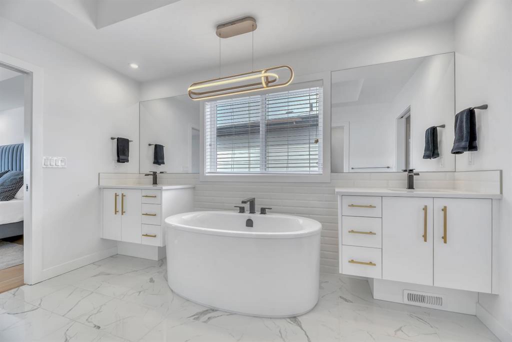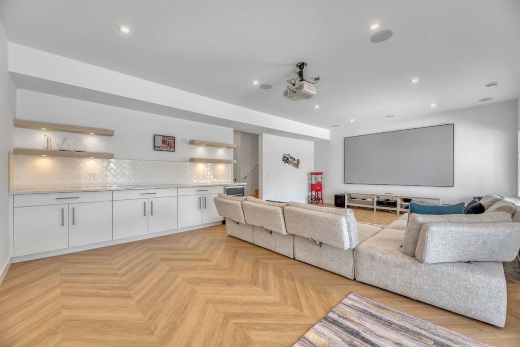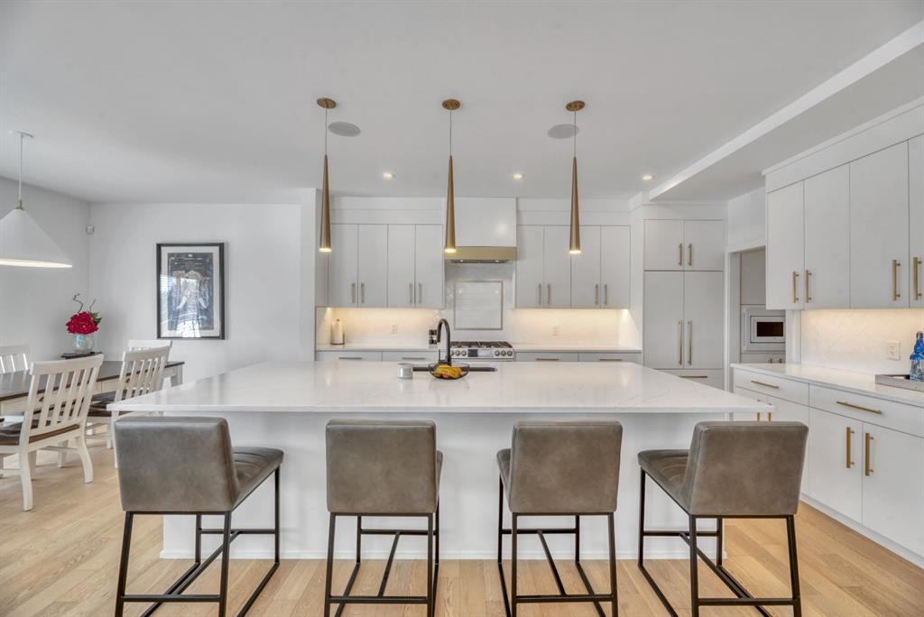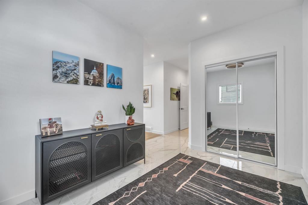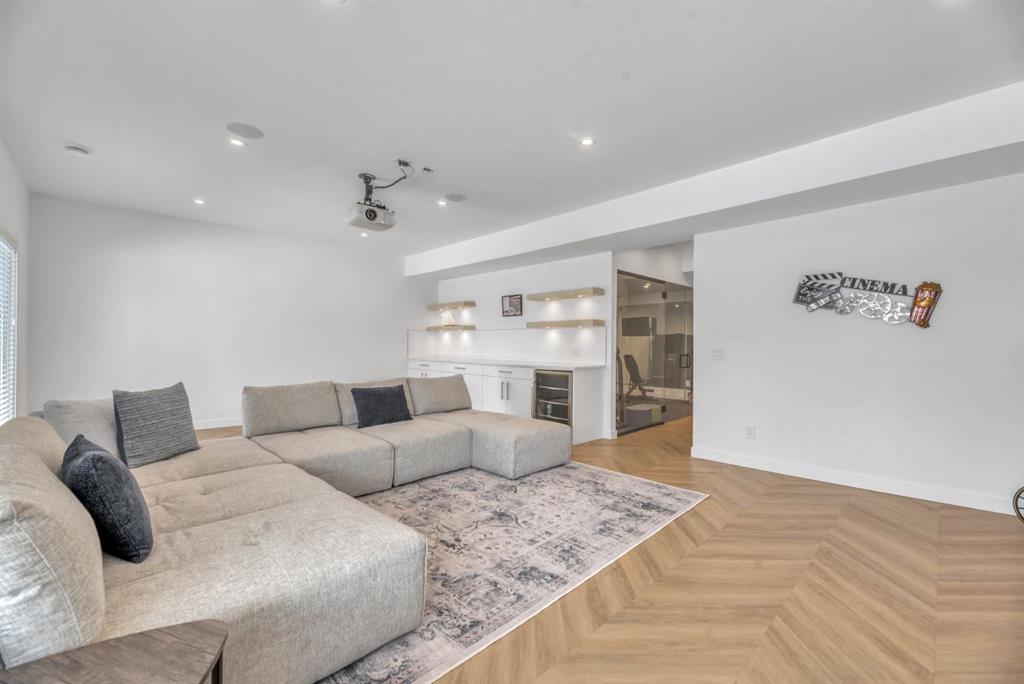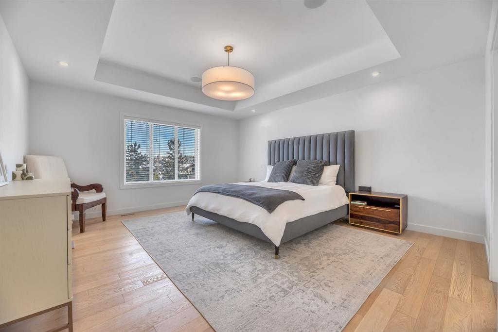 Welcome to an exceptional offering in the prestigious community of Springbank Hill, where elevated design meets everyday function in this stunning 2,806 sq ft + fully finished walkout home backing onto a natural ravine & pathway system with MOUNTAIN VIEWS. From the moment you arrive, the home impresses with a spacious entry & refined finishes throughout, inc. white oak hardwood flooring. A private front den, enclosed by sleek panel glass doors, provides the perfect home office space. The heart of the home is the breathtaking open-to-above great room, anchored by a large scale framed fireplace, while expansive windows flood the space with light & showcase the tranquil ravine views. The designer kitchen is both sophisticated & functional, with white flat-panel cabinetry, matte gold hardware, custom panel French door fridge and dishwasher, Cafe collection 6 burner gas range with double oven and a custom hood fan. A brilliant mix of modern & traditional elements with a blend of herringbone with gold trimmed subway tile niche & a beautifully patterned white quartz counter. Thoughtfully designed pantry shelving, small servery with microwave-cabinet & a well-appointed mudroom elevate everyday convenience. Step outside to your full-width upper deck, the perfect setting to unwind while enjoying uninterrupted views & privacy. Upstairs, the home continues to impress with a vaulted front bonus room featuring a full wall of shelving, along with a well designed laundry room with built-in storage & wash sink. The primary retreat is a nice sanctuary, offering stunning mountain views, a spa-inspired ensuite with separate vanities, a freestanding oval tub, a fully tiled shower with bench & body sprays, & a fabulous walk-in closet with smart built ins. A well-appointed second bath features dual sinks, storage and 2 additional perfect sized bedrooms makes this upper floor an ideal layout. The fully developed walkout basement is designed for both lifestyle & wellness, featuring chevron-laid white oak hardwood flooring, a fantastic rec room space - perfect for a home theatre/games room, & a private gym with full mirror wall, specialized flooring, & glass partition. A spacious fourth bedroom & full 3 pc bath with tiled shower complete this level. Additional features include central air, water softener, & built-in speakers throughout. Outdoors, the professionally landscaped yard with irrigation blends seamlessly into the surrounding environment, offering a rare private setting. Located in one of Calgary’s most sought-after Westside communities, this home offers access to some of the city’s top-rated schools, inc. Webber Academy, Calgary Academy, Rundle College, Ernest Manning and Griffith Woods School. Enjoy quick access to Aspen Landing, Westside Recreation Centre, boutique shopping, dining, paths, major routes and only 15 mins to downtown. This is a rare opportunity to own a modern yet warm & inviting, impeccably finished walkout home in an amazing location.