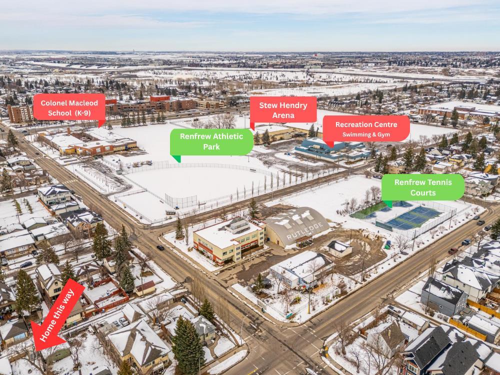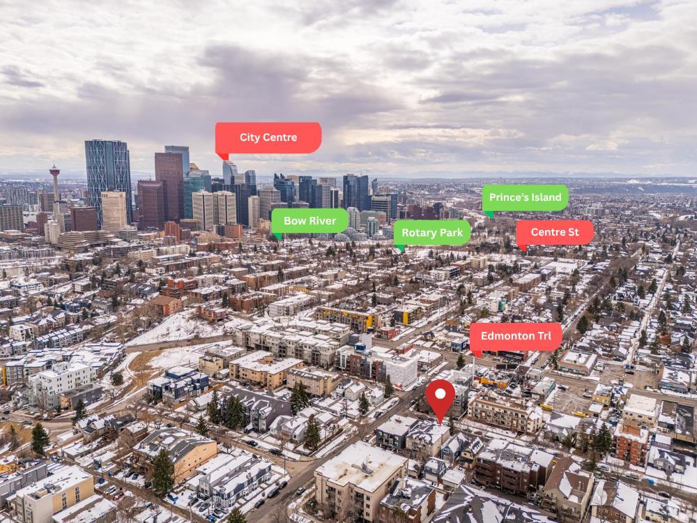 *Open house 1-4pm Sat&Sun Apr 11-12th*Location! Location! Location! Ideally situated within walking distance to Downtown Calgary, this property offers unbeatable convenience. Just one block away from a medical centre, cafés, restaurants, and everyday amenities, making urban living effortless and enjoyable. Designed with comfort and space in mind, all three above-grade levels feature 9-foot ceilings, creating an airy and open feel throughout. Both the second and third floors offer private balconies—perfect for enjoying your morning coffee with city views or unwinding in the evening with a glass of wine. This rare layout features 4 bedrooms and 3 full bathrooms above grade, ideal for growing families or flexible living arrangements. The main floor includes a versatile office/den that can easily function as a fourth bedroom, conveniently located beside a full bathroom. The spacious living room is highlighted by a cozy gas fireplace and large west-facing windows that fill the space with warm natural light. A front yard adds additional outdoor space for kids or relaxation. The second floor offers a bright and functional layout with a generous bonus room that connects to a glass-enclosed balcony, creating a perfect indoor-outdoor retreat. Two spacious bedrooms, a full bathroom, and a conveniently located laundry area complete this level. The entire third floor is dedicated to a luxurious primary retreat. Featuring vaulted ceilings, a private balcony, and a gas fireplace, this space is designed for comfort and privacy. It also includes a large walk-in closet and an impressive 6-piece ensuite with double vanity, soaker tub, and separate shower. Located in the desirable Renfrew community, this home is surrounded by fantastic amenities for families and active lifestyles. Enjoy easy access to the Renfrew Community Centre and nearby recreation facilities featuring swimming and fitness options, along with multiple parks, playgrounds, and green spaces. The area is well-served by excellent schools, including Stanley Jones School (K–6), Colonel Macleod School (K–9, TLC program), and Crescent Heights High School (10–12), making it a great choice for families. Recent upgrades include a new hot water tank, microwave hood fan, radon mitigation system, as well as improved attic insulation and ventilation.