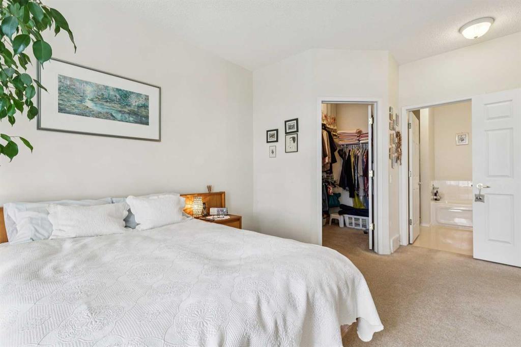 What a relaxing home to enjoy! This Signal Hill semi-detached villa offers so many benefits – an ideal villa layout with a double attached garage and unobstructed east-facing views in a sought-after, convenient yet private, west-side location. The central living space is open with 9-foot ceilings, yet cozy and inviting – warmed by a gas fireplace and blue sky views to the east. An 11' x 7.5' SF balcony, located off the living room, expands the living space, along with a sun-drenched den accessible through French doors. The expansive primary suite offers plenty of space to rest, a generous ensuite with a separate walk-in shower and soaking tub, plus a large walk-in closet. There’s also a main floor guest bathroom and laundry. Both a formal dining space and a kitchen breakfast nook, plus a sunny kitchen with plenty of room to cook your favorite meals. Bright, sunny and well-laid out, the main floor totals a generous 1400 SF plus double attached garage. Downstairs, you’ll find a huge family room with a second fireplace and walkout access to the private, covered patio, surrounded by greenery. There is also a sizable guest bedroom and full bathroom, a large storage room, a cold room, and a utility room – offering extensive storage and space for whatever suits your fancy. Overall, with almost 2400 SF of developed space, there's not much you won't have space for! This home has been gently used by the original owner and well-maintained; the furnace was replaced in 2018 and the hot water tank in 2026. Come see for yourself why this is such a treasured place to live. Picture yourself in this idyllic home and explore the nearby amenities, including the nearby Mattamy Greenway paths, Signal Hill shopping, Westside Rec Centre, numerous schools, grocery stores, restaurants, parks, and recreational amenities. Don’t miss out – call to book a showing today!