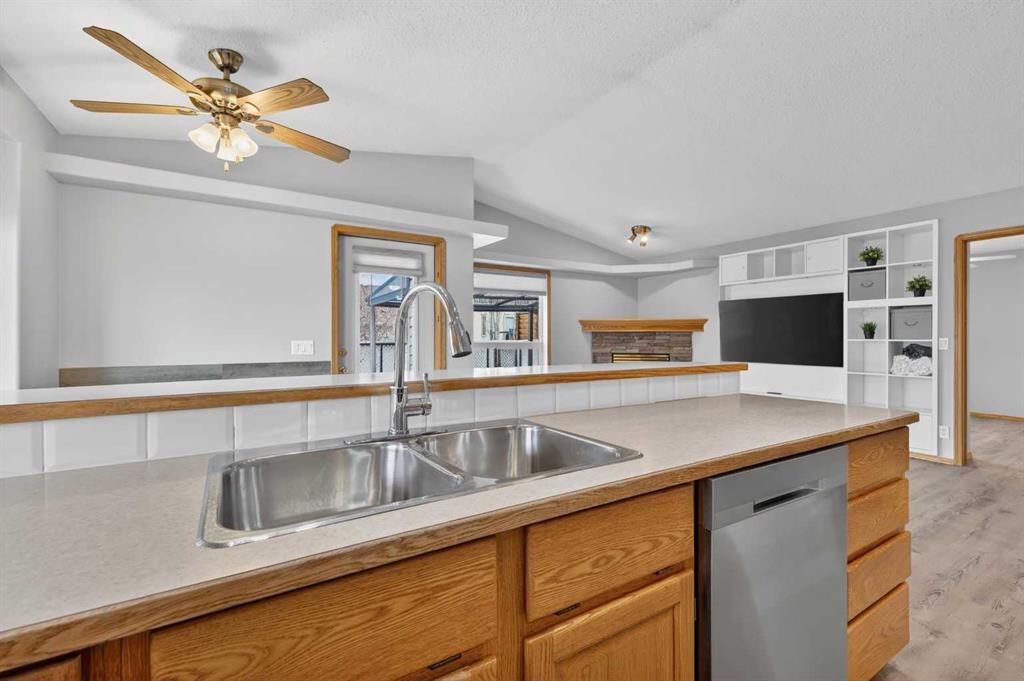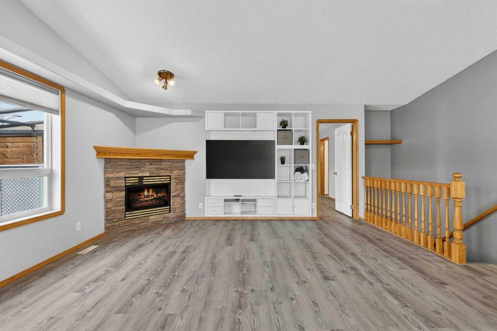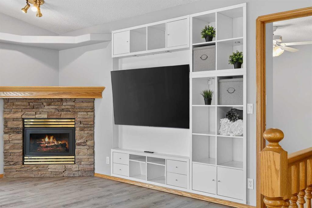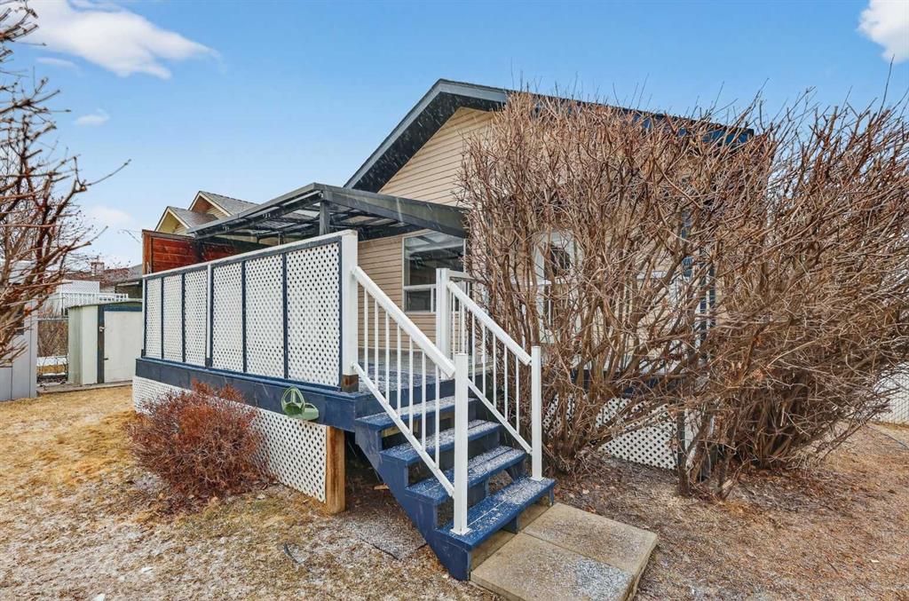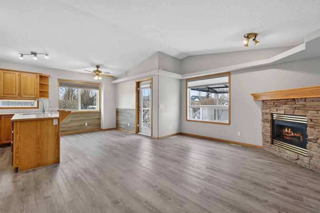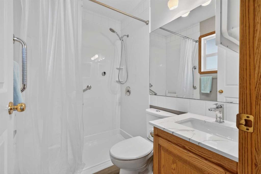 Welcome to Cambridge Glen—one of Strathmore’s most sought-after communities. Surrounded by scenic parks and winding pathways, this beautifully maintained bungalow offers the perfect blend of comfort, accessibility, and thoughtful design. Situated on a desirable corner lot, this home features exceptional parking, including potential RV parking for the avid camper, and a double attached heated garage complete with a ramp for added accessibility. The low-maintenance, scape-free front yard provides effortless curb appeal, while the private, treed backyard creates a peaceful retreat. Enjoy outdoor living on the spacious back deck, which features a gazebo and a convenient gas BBQ hookup, plus two storage sheds. Step inside to a bright, welcoming foyer that leads to a versatile front room—ideal as a bedroom or home office—along with a full bathroom and an additional bedroom. The home opens into a beautiful open-concept kitchen, dining, and living area, perfect for both everyday living and entertaining. A corner mantle fireplace adds warmth and charm, while built-in cabinetry offers an elegant space to showcase your personal touches. The primary suite overlooks the tranquil backyard and features built-in storage and an accessible ensuite, thoughtfully designed for comfort and ease of use. There is also a main floor laundry hookup option, providing flexibility to suit your needs. Downstairs, the partially finished basement expands your living space with a large bedroom complete with its own ensuite and walk-in shower, a dedicated laundry area, and plenty of room to customize additional living space to your liking. This home has seen numerous thoughtful updates, including central air conditioning installed in 2023, a new hot water tank (2022), and updated shingles (approx. 2022). You’ll also appreciate the new vinyl plank flooring throughout the main level (2025), all new window coverings, updated toilets throughout, and the comfort of ceiling fans. Additional highlights include stainless steel kitchen appliances, as well as a washer and dryer—both included, making this home truly move-in ready.