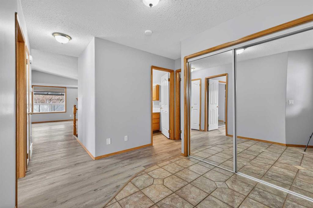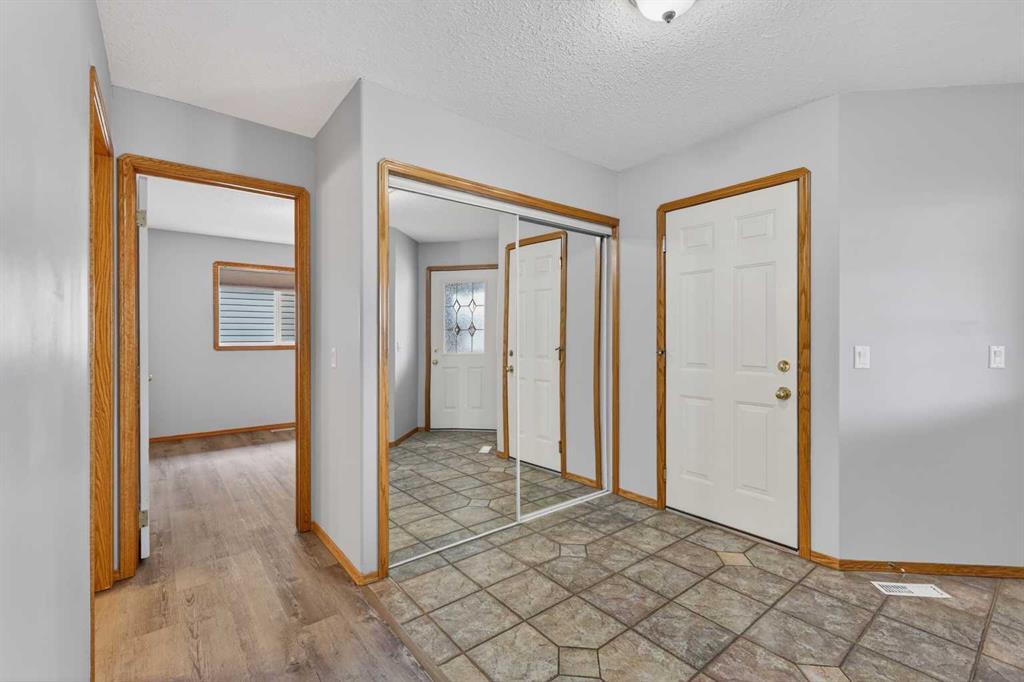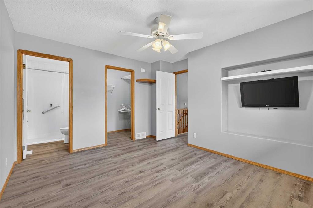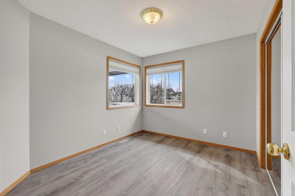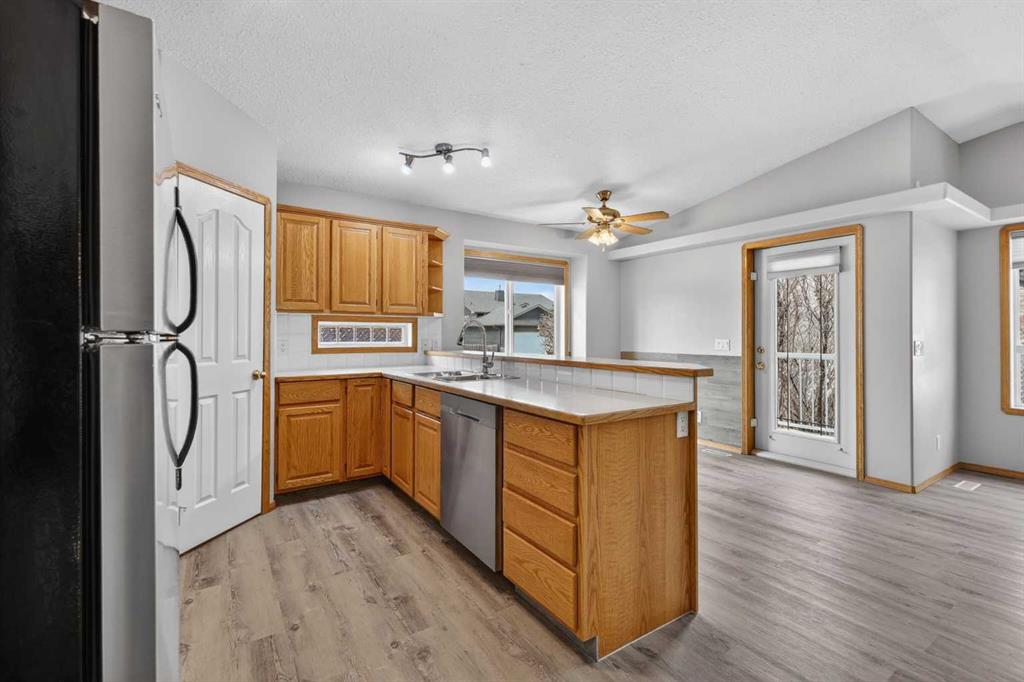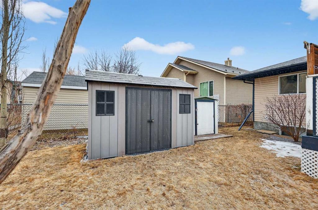Welcome to Cambridge Glen—one of Strathmore’s most sought-after communities. Surrounded by scenic parks and winding pathways, this beautifully maintained bungalow offers the perfect blend of comfort, accessibility, and thoughtful design. Situated on a desirable corner lot, this home features exceptional parking, including potential RV parking for the avid camper, and a double attached heated garage complete with a ramp for added accessibility. The low-maintenance, scape-free front yard provides effortless curb appeal, while the private, treed backyard creates a peaceful retreat. Enjoy outdoor living on the spacious back deck, which features a gazebo and a convenient gas BBQ hookup, plus two storage sheds. Step inside to a bright, welcoming foyer that leads to a versatile front room—ideal as a bedroom or home office—along with a full bathroom and an additional bedroom. The home opens into a beautiful open-concept kitchen, dining, and living area, perfect for both everyday living and entertaining. A corner mantle fireplace adds warmth and charm, while built-in cabinetry offers an elegant space to showcase your personal touches. The primary suite overlooks the tranquil backyard and features built-in storage and an accessible ensuite, thoughtfully designed for comfort and ease of use. There is also a main floor laundry hookup option, providing flexibility to suit your needs. Downstairs, the partially finished basement expands your living space with a large bedroom complete with its own ensuite and walk-in shower, a dedicated laundry area, and plenty of room to customize additional living space to your liking. This home has seen numerous thoughtful updates, including central air conditioning installed in 2023, a new hot water tank (2022), and updated shingles (approx. 2022). You’ll also appreciate the new vinyl plank flooring throughout the main level (2025), all new window coverings, updated toilets throughout, and the comfort of ceiling fans. Additional highlights include stainless steel kitchen appliances, as well as a washer and dryer—both included, making this home truly move-in ready.