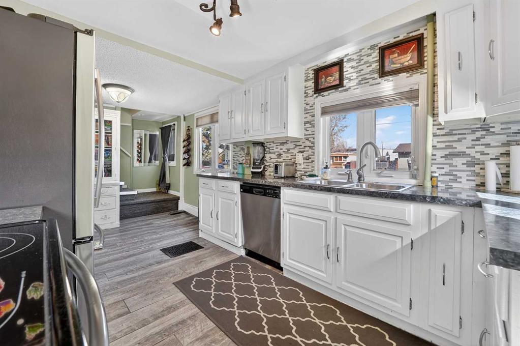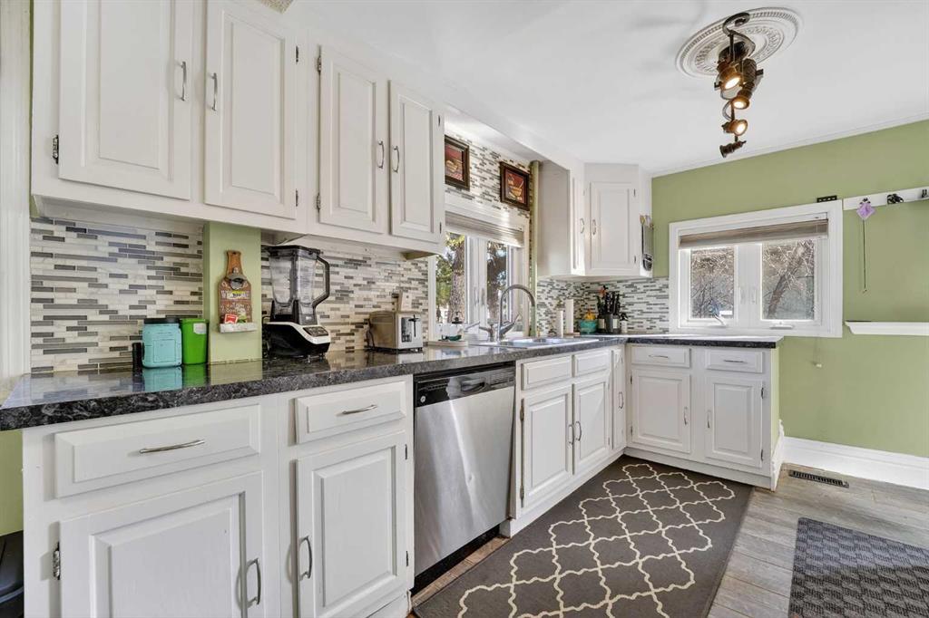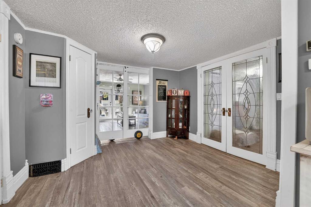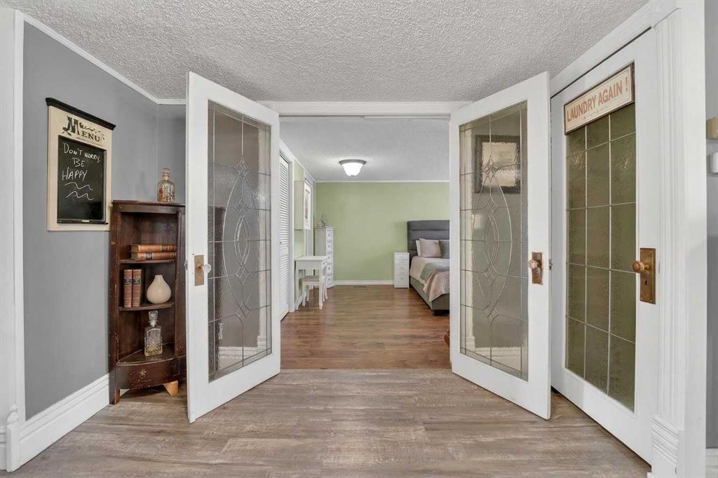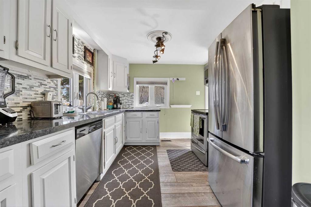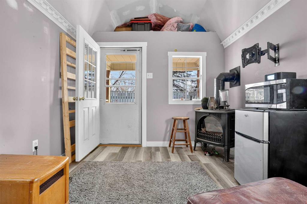 Welcome to a home that offers space to grow, room to gather, and future potential, all set in a quiet community on a massive lot. Inside, this 1½ storey home blends character and comfort with a renovated main floor featuring updated flooring and paint, a cozy wood-burning fireplace, and a charming antique front door that sets the tone from the moment you arrive. The main level includes two bedrooms, including a spacious primary, while the upper level offers two versatile bonus rooms—ideal for a home office, kids’ spaces, or guests. Recent updates include shingles (2016), hot water tank (approx. 9 years), PVC windows on the main floor, and 100 amp electrical service. The home is connected to city water and sewer, offering convenience and peace of mind. Outside, you’ll find a double detached garage, a fenced garden area, and plenty of space to enjoy now—or reimagine later. With the size of the lot, there is potential for future redevelopment, including the possibility of a duplex (buyer to verify with Lethbridge County). Located in the Fairview area, you’ll appreciate the balance of a peaceful setting with the benefit of lower property taxes and access to city amenities.