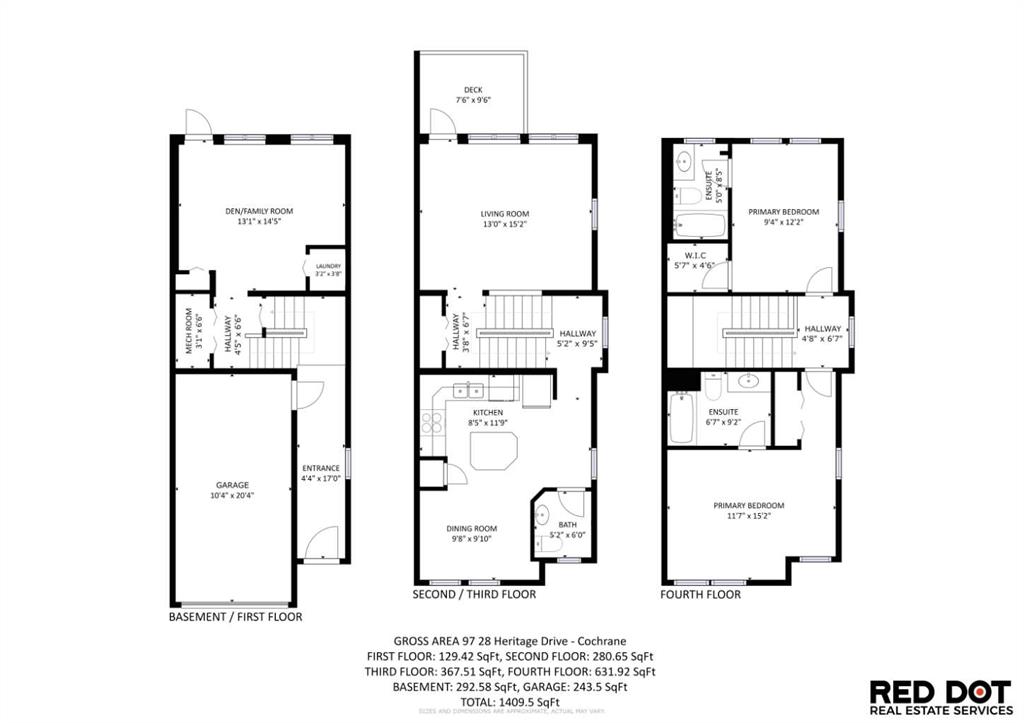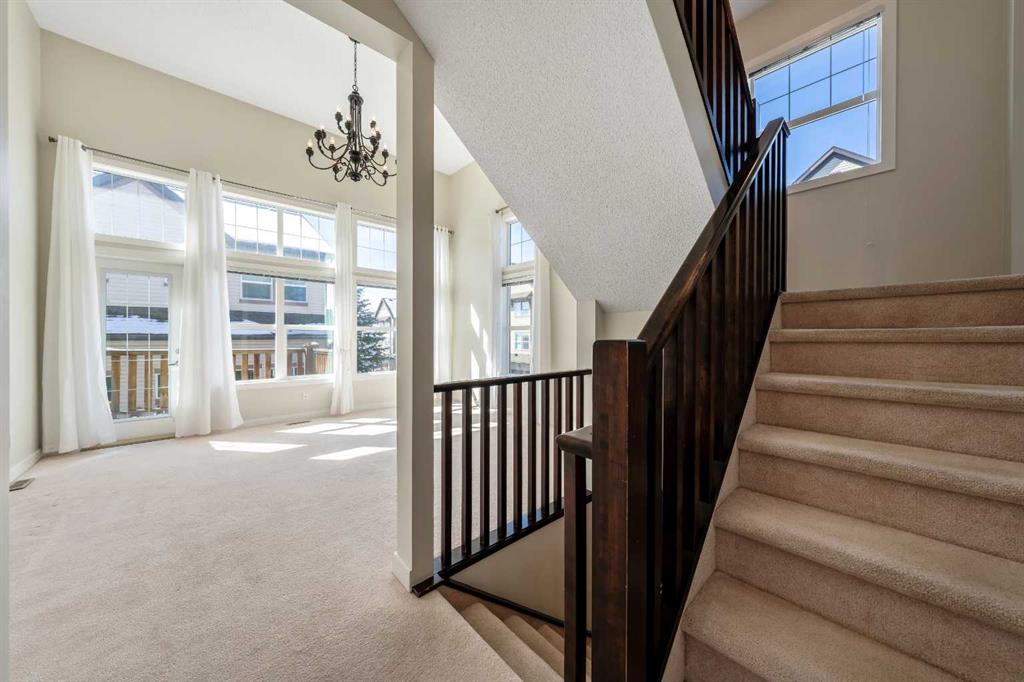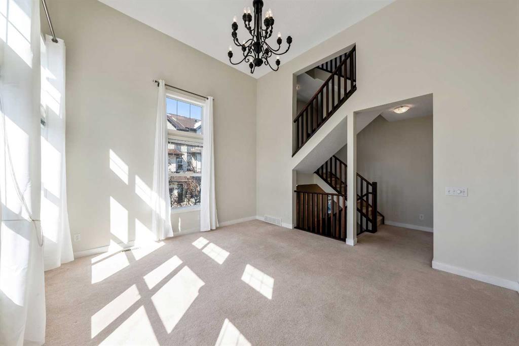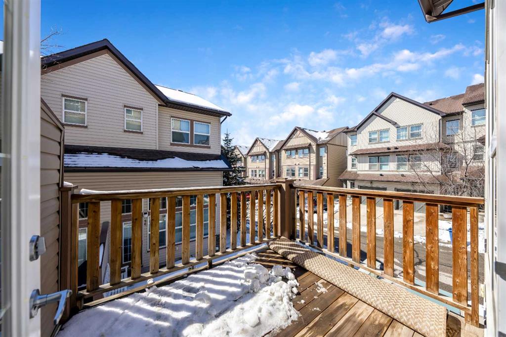 OPEN HOUSE Sunday April 19th, 11-2pm. Two Primary Suites. Mountain Views. A Community You'll Love! Welcome to Laredo Place — one of Cochrane's most friendly and welcoming pockets of Heritage Hills, where neighbours feel like family and the mountains are always in view. This original-owner townhome stands out for all the right reasons. A unique, thoughtfully planned corner unit layout makes the most of every level, with generous windows throughout ensuring the home is bathed in natural light from top to bottom. The main entry welcomes you into a spacious foyer before opening up to a dramatic living room boasting 20-foot ceilings and access to a private deck — a serene spot to sip your morning coffee with nothing but fresh mountain air around you. A few steps up brings you to a bright, airy kitchen and dining area, perfect for gathering and everyday living. The top floor is where this home truly sets itself apart — two full primary bedrooms, each complete with its own private ensuite. Whether you're accommodating family, guests, or simply want the luxury of space, this rare double-suite setup delivers. The fully finished walkout lower level offers even more flexibility — use it as a third bedroom, a home office, or a generous family room — and steps out to your own private patio, perfect for outdoor relaxation. And with a remarkable 22-foot crawl space, storage is plentiful and always within easy reach. Just minutes from Cochrane's beloved historic town centre, you're close to charming cafés, great restaurants, local pubs, mountain pathways, and everything that makes this town so special. With over 1600 Sqft of living space this home has room for you to live and grow. Come see why this gem feels like home the moment you arrive.