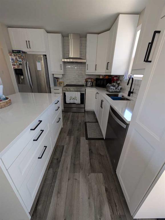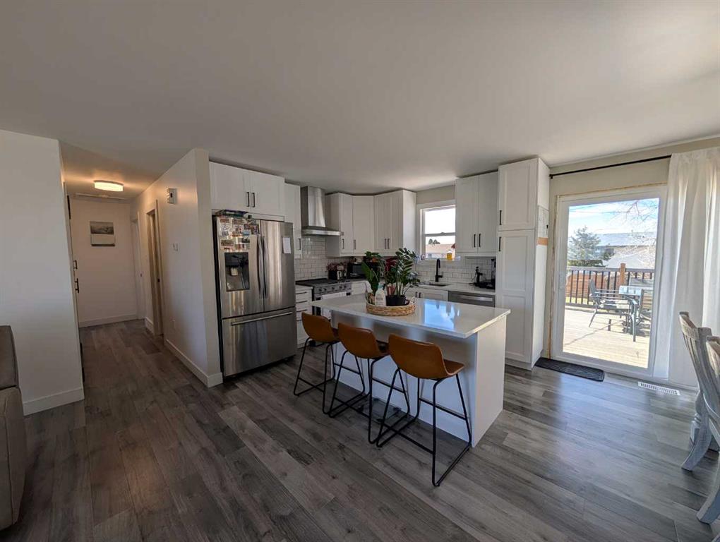 Welcome to 422 Main Street S in Redcliff—an updated and inviting home offering comfort, space, and future potential. The main floor has been tastefully renovated in 2021 and offers 960 sq. ft. of bright, functional living space. Large windows fill the spacious living room with natural light. Open concept kitchen features stainless steel appliances, a clean white subway tile backsplash, white cabinets, quartz countertops and a center island. A comfortable dining area leads you to the deck through sliding doors. The main level is complete with two generously sized bedrooms, including a primary with a walk-in closet, along with a full 4-piece bathroom. The walkout basement is partially developed with drywall already completed, offering a blank canvas to finish to your liking—ideal for adding extra living space, bedrooms and a bathroom. Outside, enjoy the large deck—perfect for relaxing or entertaining. The 50 x 130 lot provides plenty of yard space, along with a storage shed and rear off-street parking. Whether you're a first-time buyer, investor, or looking for a home with potential to add value, this property checks all the boxes.