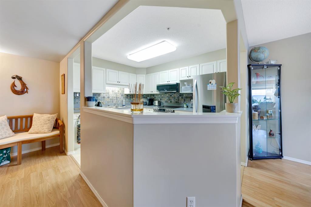 Welcome to this bright and beautifully maintained apartment in the sought-after adult living community of The Madison, offering the perfect blend of space, comfort, and style for easy, low-maintenance living. Start your mornings on the covered balcony with a coffee in hand as you take in the peaceful views, then step inside to an open-concept living space filled with natural light and a quality kitchen featuring a stunning tile backsplash, new appliances, updated flooring, and modern countertops—perfect for both everyday living and entertaining. This home offers two spacious bedrooms, including a private primary suite with a walk-in closet and a three-piece ensuite, along with a four-piece main bathroom; both bathrooms are equipped with tall-height toilets for added comfort. Additional highlights include in-unit laundry with a new washer and dryer, central air conditioning, and ample storage. The well-maintained building features heated underground parking with storage units, elevator access, and a welcoming clubroom for social gatherings, while the $341/month condo fees cover water, heat, maintenance, underground parking, landscaping, and snow removal. Ideally located in Lloydminster’s West Central Business District, this must-see home is just moments from downtown and close to shopping, dining, and all essential amenities.