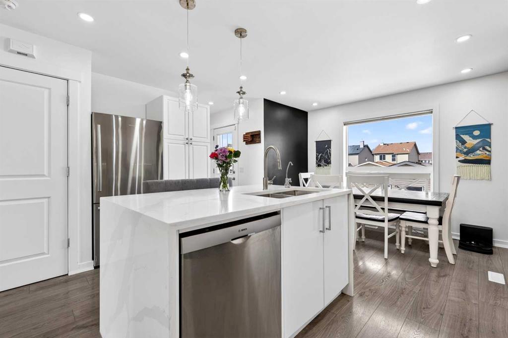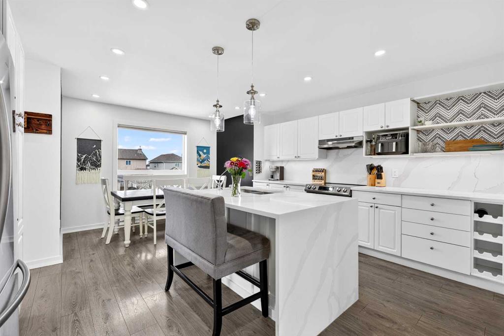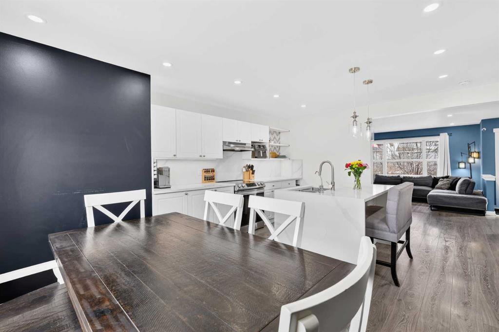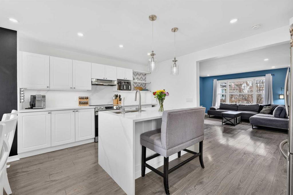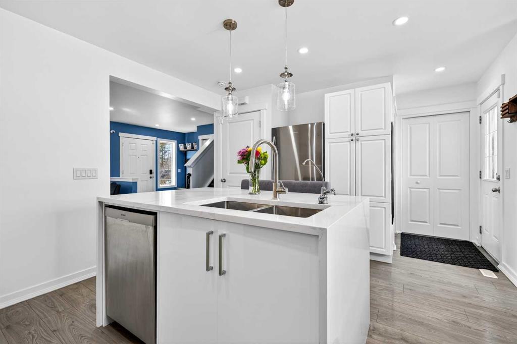Open House Sunday April 12th 11:00 am - 12:45pm. Start each day on the expansive south-facing front porch where sunshine and neighborhood charm set a welcoming tone. Positioned kitty-corner to a green space and a walking path, this move-in ready home blends everyday comfort with immediate access to outdoor enjoyment. Step inside to an open-concept main level where durable laminate flooring and added pot lighting enhance both function and brightness. Relaxation is invited in the living area where oversized windows draw natural light inward, shaping a comfortable setting suited to quiet evenings or time spent with guests. Effortlessly prepare meals in the beautiful, chef’s dream kitchen where quartz counters, a waterfall island and stainless-steel appliances bring together style and practicality. Hosting is simplified in the adjacent dining area that keeps conversation flowing while maintaining clear sightlines across the main level. Daily routines are easily organized at the rear mudroom, where a privately tucked away powder room lets you easily clean up upon entry. The laminate flooring carries through to the upper level with no carpet, contributing to easy maintenance and a cohesive look. At the end of the day, recharge in the primary retreat that accommodates a walk-in closet and a private ensuite for a true owner’s escape. Two additional bedrooms introduce flexibility for family living, overnight visitors or a dedicated workspace, while a full 4-piece bathroom completes the upper level. Plan future possibilities in the unfinished basement that presents generous storage along with space ready for customization. Enjoy time spent outdoors on the large 2-tier deck that encourages barbecues and seasonal downtime while the fenced yard gives kids and pets room to play freely. Park vehicles securely in the double detached garage accessed from the paved back lane, adding everyday convenience. Phenomenally located within walking distance to nearby shops, pathways and parks while quick connections to schools and Yankee Valley Boulevard support an easy commute. Truly an outstanding location for this beautiful, move-in ready home!