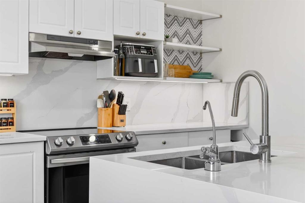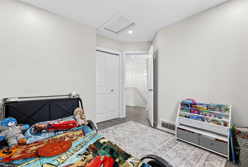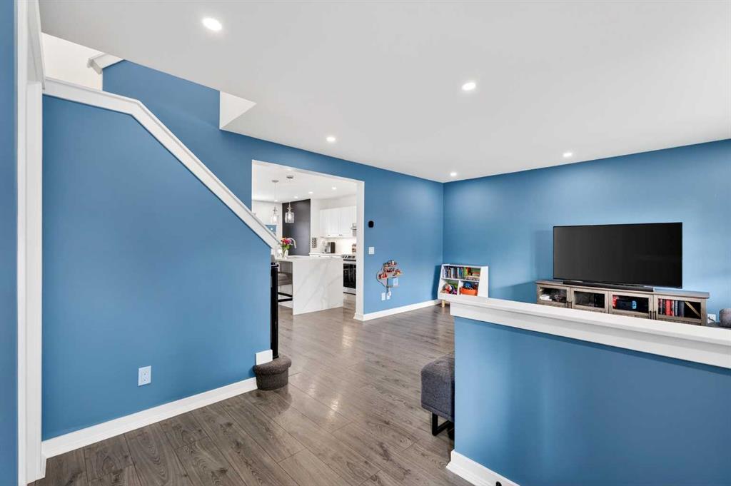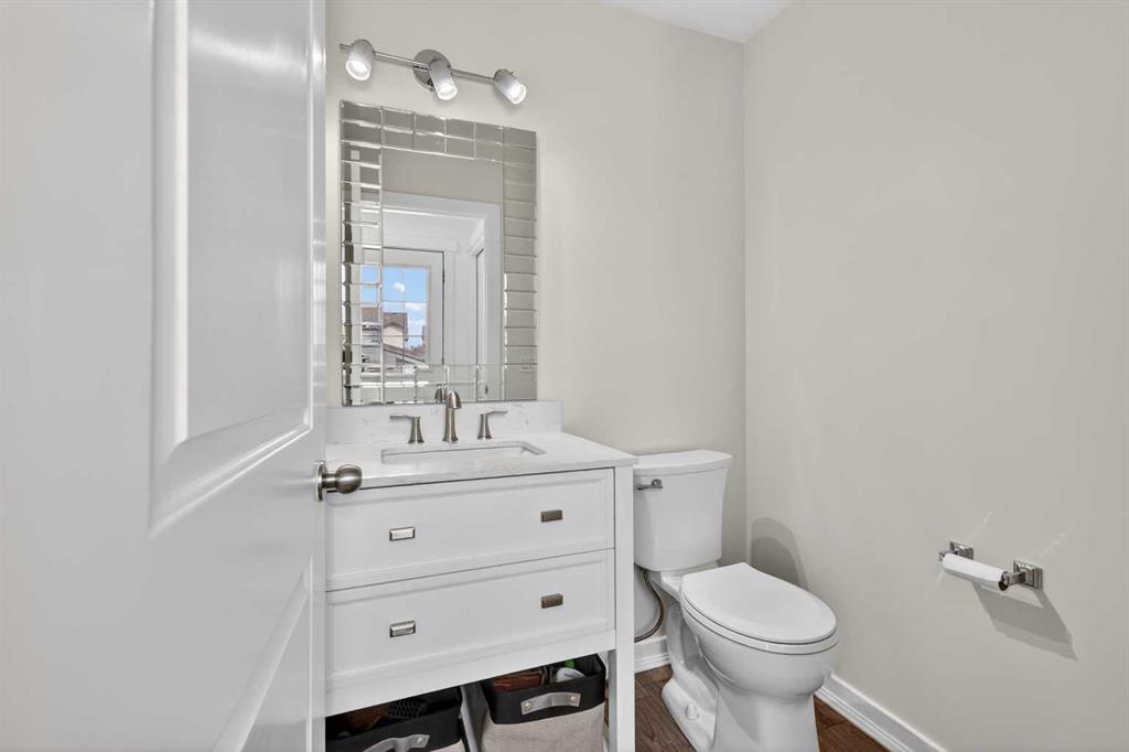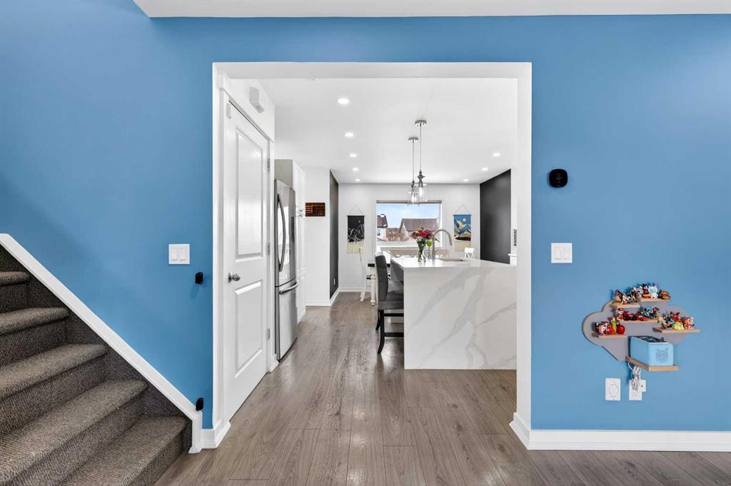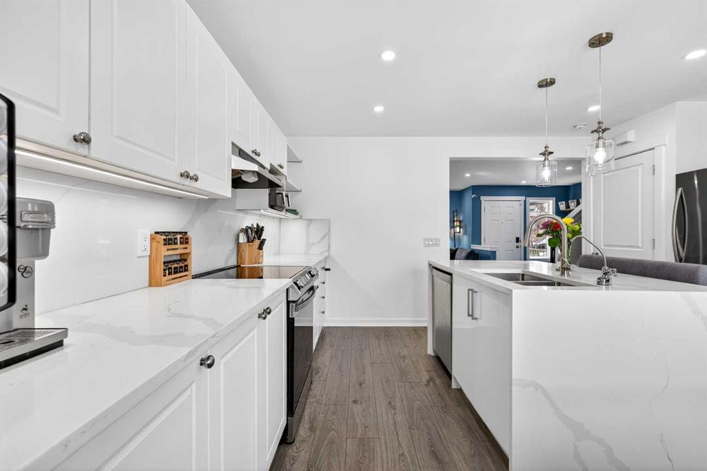 Open House Sunday April 12th 11:00 am - 12:45pm. Start each day on the expansive south-facing front porch where sunshine and neighborhood charm set a welcoming tone. Positioned kitty-corner to a green space and a walking path, this move-in ready home blends everyday comfort with immediate access to outdoor enjoyment. Step inside to an open-concept main level where durable laminate flooring and added pot lighting enhance both function and brightness. Relaxation is invited in the living area where oversized windows draw natural light inward, shaping a comfortable setting suited to quiet evenings or time spent with guests. Effortlessly prepare meals in the beautiful, chef’s dream kitchen where quartz counters, a waterfall island and stainless-steel appliances bring together style and practicality. Hosting is simplified in the adjacent dining area that keeps conversation flowing while maintaining clear sightlines across the main level. Daily routines are easily organized at the rear mudroom, where a privately tucked away powder room lets you easily clean up upon entry. The laminate flooring carries through to the upper level with no carpet, contributing to easy maintenance and a cohesive look. At the end of the day, recharge in the primary retreat that accommodates a walk-in closet and a private ensuite for a true owner’s escape. Two additional bedrooms introduce flexibility for family living, overnight visitors or a dedicated workspace, while a full 4-piece bathroom completes the upper level. Plan future possibilities in the unfinished basement that presents generous storage along with space ready for customization. Enjoy time spent outdoors on the large 2-tier deck that encourages barbecues and seasonal downtime while the fenced yard gives kids and pets room to play freely. Park vehicles securely in the double detached garage accessed from the paved back lane, adding everyday convenience. Phenomenally located within walking distance to nearby shops, pathways and parks while quick connections to schools and Yankee Valley Boulevard support an easy commute. Truly an outstanding location for this beautiful, move-in ready home!
