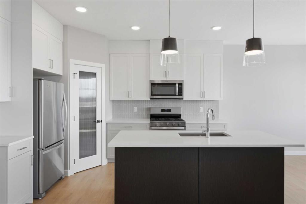IMMEDIATE POSSESSION | 2,028 SQ.FT. | 3+1-BED | 3-BATH | GOURMET KITCHEN | SEPARATE ENTRANCE | DECK | FRONT LANDSCAPING | Built by Crystal Creek Homes, this two-storey in Belvedere offers over 2,000 sq. ft. of modern living space with durable HARDIE BOARD siding, upgraded features, and front landscaping. The open main floor features a bright living area with a stylish linear FIREPLACE and an inviting dining space that opens onto the REAR DECK where you can enjoy morning sun and open views with NO REAR NEIGHBOURS The gourmet kitchen includes a GAS RANGE, wall oven, full-height cabinetry, stainless-steel appliances, and a large island ideal for everyday use or entertaining. Upstairs, a central bonus room complements three spacious bedrooms and a conveniently located laundry room. The primary suite offers a walk-in closet and a 4-PIECE ENSUITE with dual vanities and a walk-in shower. The 9’ BASEMENT includes a separate SIDE ENTRANCE, offering future legal-suite potential (subject to City approval and permitting). Set in Calgary’s vibrant southeast community of Belvedere, residents enjoy easy access to parks, pathways, schools, East Hills Shopping Plaza, and major routes. Built to Crystal Creek’s high standards and covered by THE ALBERTA NEW HOME WARRANTY PROGRAM—ready for you to move in and make it your own.