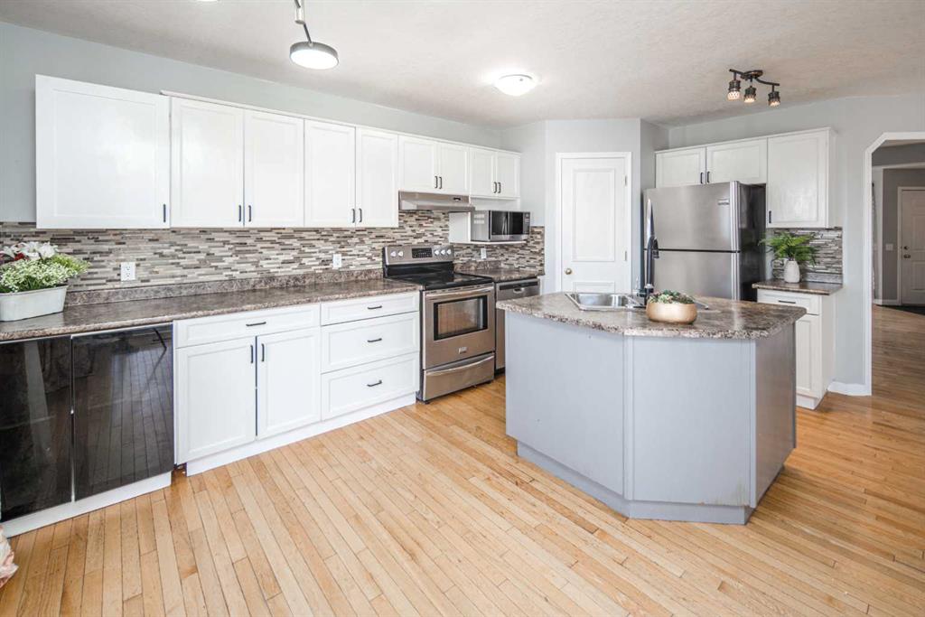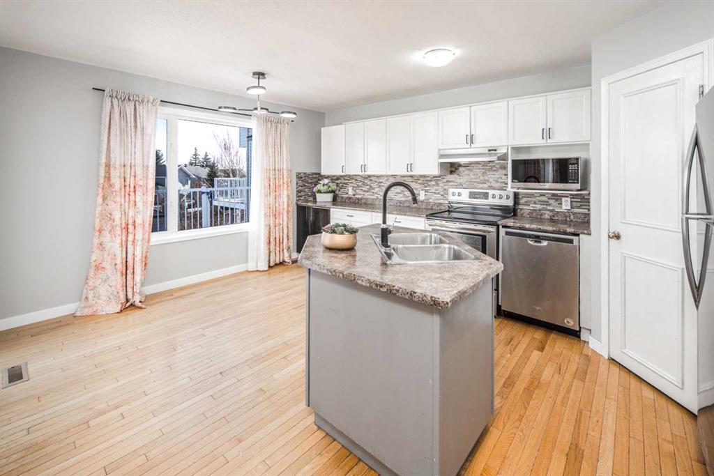 Welcome to this well-maintained 2-storey home offering 5 bedrooms and 4 bathrooms, ideally located in the desirable community of Somerset SW. Situated on a quiet cul-de-sac, this home is perfect for families and offers a large lot with long driveway for parking for up to 5 vehicles. Conveniently located within walking distance to Somerset Water Park, Somerset–Bridlewood LRT Station, shopping amenities including Canadian Tire, Walmart, Best Buy, as well as nearby schools. Quick access to Macleod Trail and Stoney Trail makes commuting easy. The main floor features a bright living room, formal dining area, spacious family room with fireplace, and a functional kitchen with ample cabinetry and a breakfast nook leading to a full-width rear deck. Upstairs offers 4 bedrooms and 2 full bathrooms, ideal for growing families. The fully finished walk-out basement includes a 5th bedroom, 3-piece bathroom, large recreation area, and in-law suite potential. Exterior finished with stucco, adding durability and curb appeal. Great value in a prime location—book your showing today!