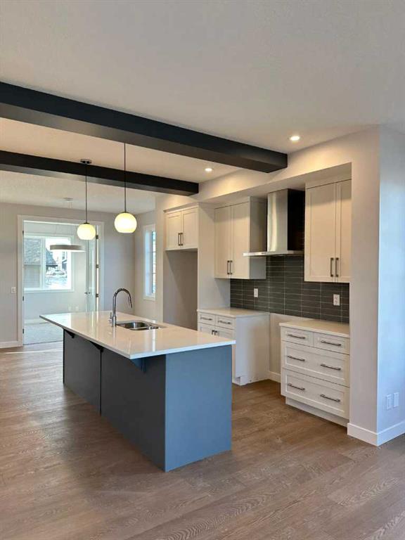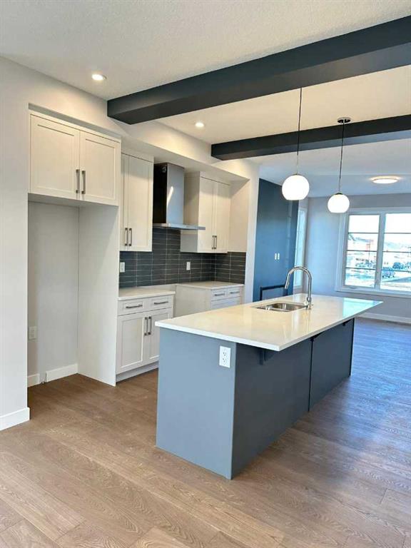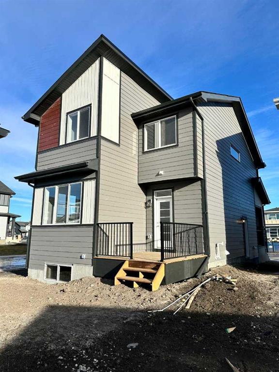 Welcome to this beautifully designed and thoughtfully crafted home located in the vibrant community of Waterford in Chestermere. This two-storey home offers 3 bedrooms, 2.5 bathrooms, and a rear detached garage, all situated on a sought-after corner lot. With immediate possession available, it’s move-in ready when you are—and located just a few steps to the playground and nearby walking/bike paths, making it perfect for families and outdoor living. Step inside to discover engineered hardwood flooring on the main level. Thanks to the additional side windows, the home is filled with natural light, creating a bright and inviting atmosphere. The main floor features a flex room, an open and airy great room with an electric fireplace, and a modern kitchen complete with quartz countertops, a chimney-style hood fan, built-in microwave, and stainless steel appliances. Upstairs, the spacious primary suite offers a large walk-in closet and a spa-inspired ensuite with dual vanities. You’ll also find convenient upper-floor laundry, two additional well-sized bedrooms, and a full bathroom. Outside, enjoy the treated wood deck—perfect for relaxing or entertaining—with steps leading directly to the parking area for added convenience. Additional highlights include 9’ ceilings on the main level, a side entrance to the basement for future development, and a prime location close to parks, schools, and local amenities in a rapidly growing community. Unlock Savings with the First-Time Home Buyers’ GST Rebate! You may qualify for up to $50,000 in savings on a brand-new home through the First-Time Home Buyers’ GST Rebate. To be eligible, you must be 18 or older, a Canadian citizen or permanent resident, and must not have owned or lived in a home owned by you or your spouse/common-law partner in the last four years. Note: This offer applies only to homes placed under contract after May 27, 2025, and is subject to Government of Canada and CRA rules. Don’t miss your chance to own this stunning, move-in-ready home built with quality craftsmanship and attention to detail. Please note: Some photos are of a similar show home for illustration purposes only. Actual finishes, colors, and style may vary. Call today to book your private showing or to learn more about this limited-time opportunity!