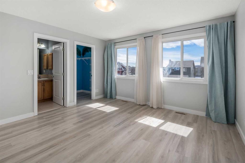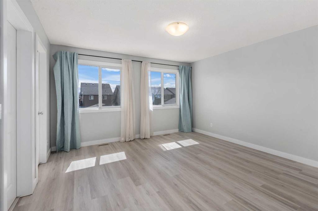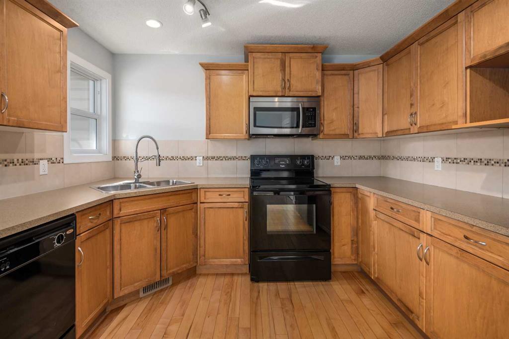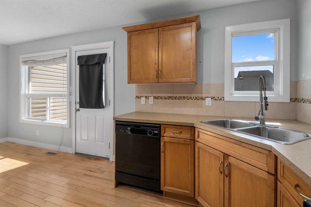 EXCEL 4 PLEX HOME with Lots of Natural Light, NO CONDO FEES, DOUBLE GARAGE and Upgrades Include: 2023 Vinyl Planks upstairs & upper floor, Wall painting 2023 and more painting 2026, washer/dryer 2023 and No Carpet. Home sweet home in Heartland of Cochrane, where sweeping mountain views meet modern living. Stylized design begins right at the curb, with tidy landscaping and eye-catching architectural details. A LARGE COVERED FRONT PORCH connects your lifestyle to the community, inviting you to wave to passing neighbours while you relax with a favourite beverage. ***MAIN FLOOR*** Inside, the open entryway offers generous closets as you step into the living room, where big windows that capture tons of natural light and HARDWOOD FLOORING strike the perfect balance of bright and inviting. Sunshine from the south fills the kitchen, where plentiful cabinetry in lovely warm tones creates the perfect setting for your favourite meals as you cook for family and friends. The dining area has a ceiling fan and a window that opens, allowing a delightful breeze to flow through on warm days, or step out onto the deck to soak up the sun. A large closet here is ideal for outerwear or PANTRY items. A well thought out floorplan also includes a half bathroom on this level. ***UPPER FLOOR*** Entirely repainted over the past few years, this home also features upgraded VINYL PLANK FLOORING on the stairs and upper storey. A credenza adds functional space in the hall. The spacious primary bedroom is complete with a WALK-IN CLOSET AND A WELL-APPOINTED ENSUITE. Two more bedrooms and the main bathroom are also on the top floor, forming a wonderfully family-friendly layout. ***BASEMENT*** Unfinished and ready for your ideas, the basement is insulated and was thoughtfully planned for possible development, with a large window, BATHROOM ROUGH-IN, and a laundry area with new machines. The utility zone is in a corner, giving you full access to the rest of the space. Furnace maintenance is up to date, and the home includes a HEAT RECOVERY VENTILATOR for added efficiency. ***EXTERIOR*** Outside, the private yard is nicely divided between the deck, lawn, and gravelled walkways. Gardens beds receive the perfect amount of sun and shade for growing flowers and food. The detached DOUBLE garage is drywalled and curb walled, and the PAVED ALLEY is wide enough to pull a trailer through to load up for camping weekends. ***THE AREA*** Set on the edge of town, this area feels like a courtyard community has a bit of everything. Pathways and parks are nearby, and the Bow River is in walking distance. Shops and services are available only a few blocks away, and Cochrane offers every amenity you could need, yet still has that small town feel. At the end of the block, uninterrupted MOUNTAIN VIEWS are a stunning backdrop for all your outdoor activities. PROXIMITY TO THE HIGHWAY puts Calgary within a 20-minute drive, escape into nature easy, with camping, hiking, and alpine sports all available in just a short trip.