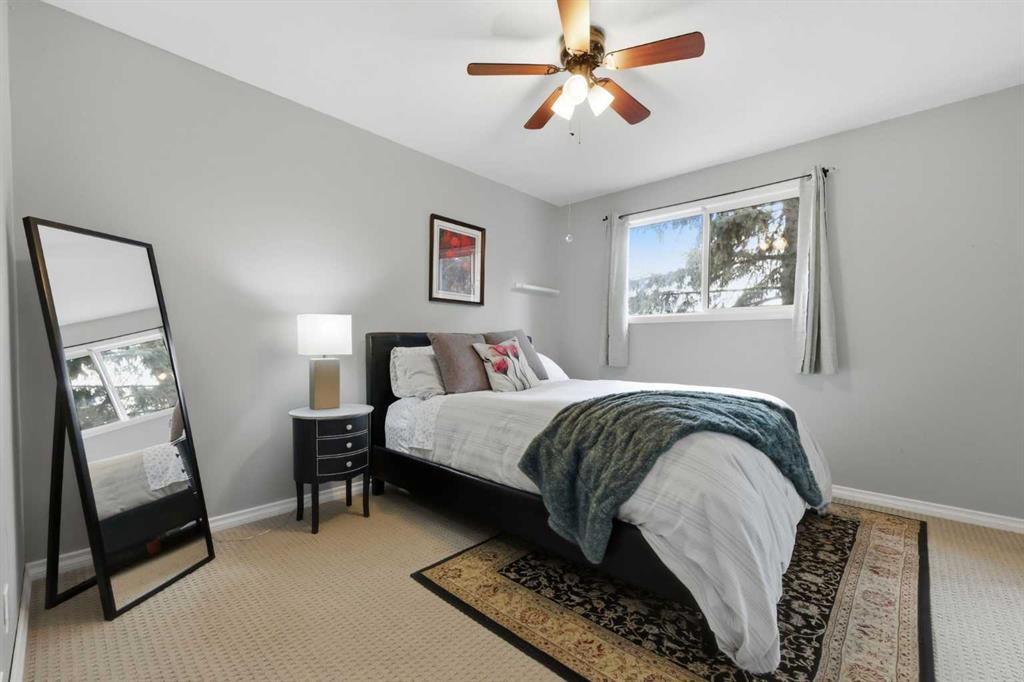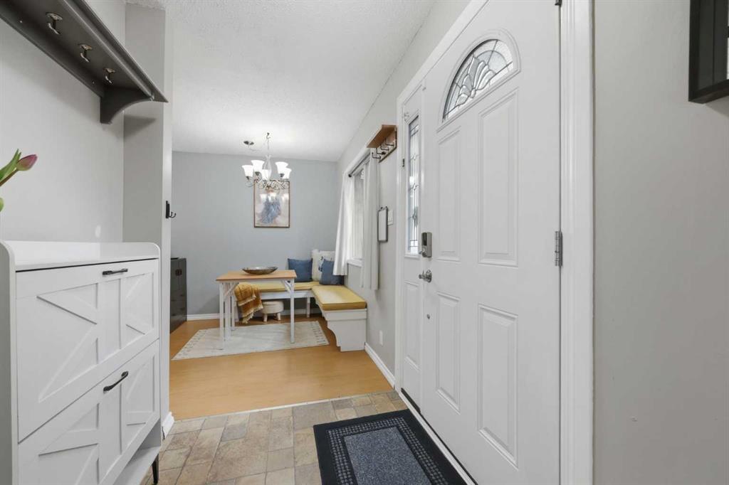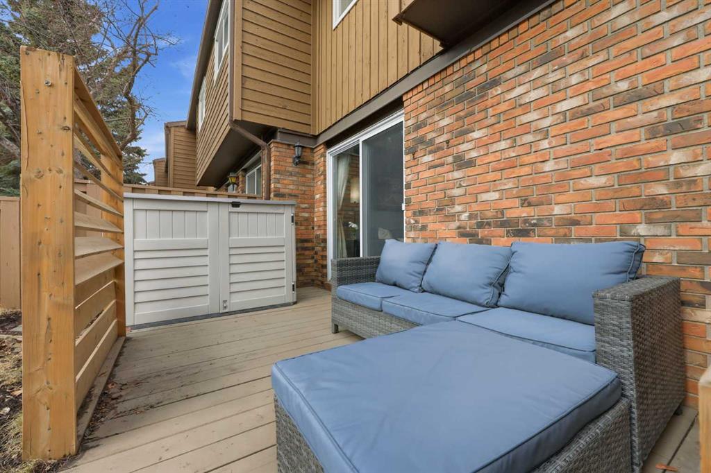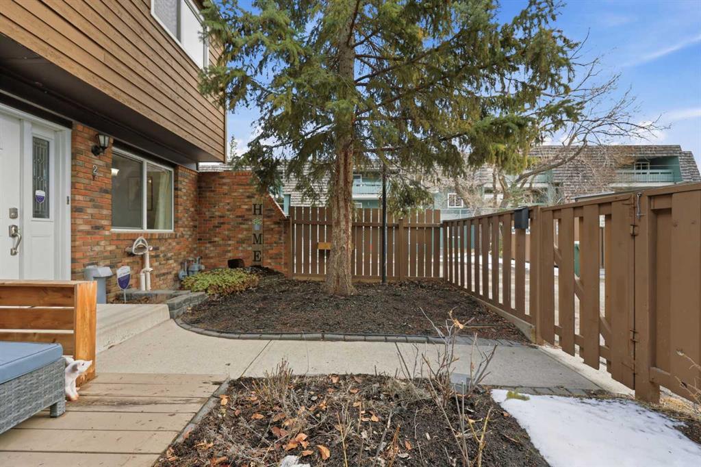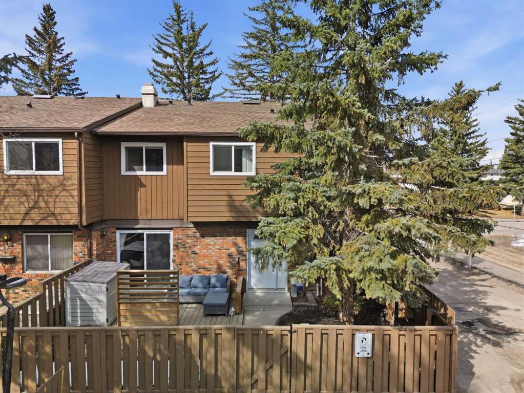 Affordable, sun-soaked, and full of character, this end-unit townhouse in the sought-after Prairie Meadows is a rare find. Priced to make the move from renting to owning finally feel within reach, this home checks every box without compromise. A private, gated yard sets it apart from every other unit in the complex, offering outdoor space that feels truly your own. The wood deck is made for summer evenings with friends, morning coffee, or simply soaking up the south-facing sun that pours through the windows and brightens every corner of the main floor throughout the day. Inside, the custom built-in bench in the dining nook is as functional as it is charming, the perfect spot to gather. The kitchen is practical and well-appointed with updated white shaker style cabinetry, generous counter space, and a new fridge (2023) and stove (2026). The living room is warm and anchored by a classic corner wood-burning fireplace, making cold Calgary winters something to look forward to. The half bath on the main floor completes this floor. Thoughtfully converted to a two-bedroom layout upstairs, both bedrooms are generously sized. The primary suite features a large walk-in closet. While the second bedroom offers flexible space - use it as a guest room, home office, or both. The full 5pc bathroom on this level delivers double sinks and excellent storage. The finished basement adds even more living space with a large recreation room and abundant storage throughout, a rare bonus at this price point. In-suite front-load laundry completes the lower level. Major mechanicals are already taken care of: furnace (2013), hot water tank (2019). This pet-friendly complex welcomes your four-legged family members, too. Move-in ready and waiting. Stop renting and start owning.