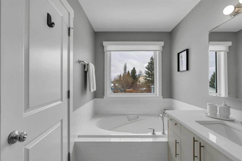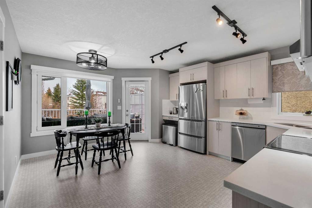 Welcome to 54 Hidden Vale Court NW. Located on a quiet cul-de-sac in the desirable community of Hidden Valley, this fully renovated 4-bedroom home offers a functional layout, modern upgrades, and a private southwest-facing backyard. The main level features vaulted ceilings in the living and dining area, complemented by large windows that flood the space with natural light. The new kitchen is thoughtfully designed with updated appliances (2021), including a gas range, and a spacious pantry, with direct access to the Duradek-covered deck—perfect for indoor-outdoor living and entertaining. Upstairs, you’ll find three well-sized bedrooms and two full bathrooms. The primary suite comfortably accommodates a king-sized bed and includes a walk-in closet and a private ensuite featuring a soaker tub and separate stand-up shower. Additional upgrades on the main level include knockdown ceilings, updated light fixtures, and modern window coverings. The fully developed basement offers excellent flexibility, with the ability to be closed off for added privacy—ideal for extended family or older children. It includes a large bedroom, full bathroom, a spacious living room with new gas fireplace, and a renovated gym/flex space that can also function as a home office. The renovated laundry room is located here, along with a generous utility and storage area. Enjoy direct access to the backyard through the basement mudroom, leading to a covered concrete patio beneath the upper deck—perfect for relaxing while watching the kids play. The fully landscaped and fenced yard can be accessed from both sides of the home. Extensive upgrades throughout the home include new appliances (washer, dryer, dishwasher, and gas range installed in 2021), renovated kitchen, bathrooms, and laundry room, new carpet in the basement, a renovated gym space, a radon mitigation system, new water heater, updated soft metals and exterior paint (professionally done stucco application), a new garage door and opener, upgraded light fixtures and window coverings, a high-efficiency furnace and air conditioning, and the complete removal of Poly-B plumbing. To top off the long list, the home includes highest quality European Egress Windows. This home is ideally located within walking distance to parks and scenic walking paths, offering the perfect balance of quiet living and convenience.