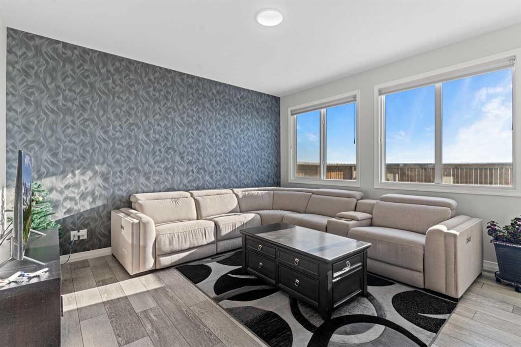 Welcome to this beautifully maintained home in the heart of Cornerstone, featuring a legal basement suite. Offering a total of 5 bedrooms, 4 bathrooms, and a double attached garage, this home is thoughtfully designed with modern finishes and functional living spaces. The main floor features a bright and spacious living and dining area filled with natural light, complemented by a modern kitchen with stylish appliances, a large central island, and ample cabinetry. A main floor bedroom and full 4-piece bathroom provide excellent flexibility for multi-generational living. This level is completed with a pantry and mudroom. Upstairs, the primary bedroom offers a walk-in closet and a luxurious 5-piece ensuite. Two additional generously sized bedrooms, a 4-piece main bathroom, a versatile family room, and a conveniently located laundry room complete the upper level. The legal basement suite includes a separate entrance and features 1 bedroom, a dedicated office space, a 4-piece bathroom, a spacious living area, and a full kitchen with stainless steel appliances, pantry, additional storage, and its own laundry. This home includes energy-efficient & smart features such as triple-pane windows, a UV-C air purification system, solar panels, a Navien tankless water heater, water softener, water purifier. Also, the house comes with an air-conditioner. The backyard is fully fenced and landscaped, complete with a deck for outdoor enjoyment. Conveniently located near shopping, restaurants, schools, parks, and the airport, with easy access to Country Hills Boulevard, Airport Trail, and Stoney Trail. Hurry up & book your showing today.