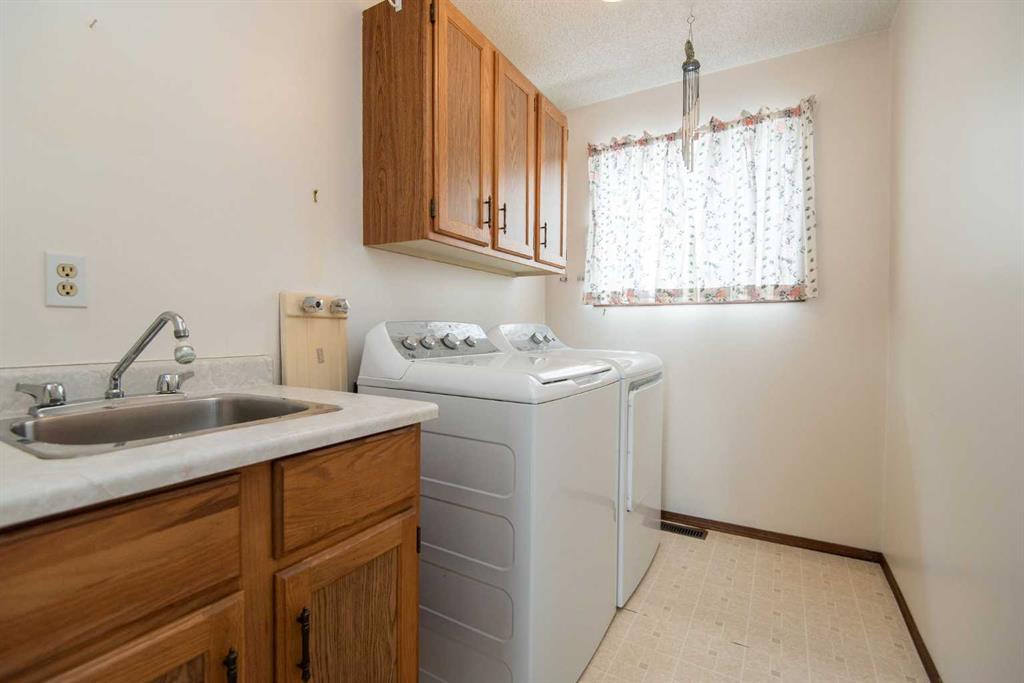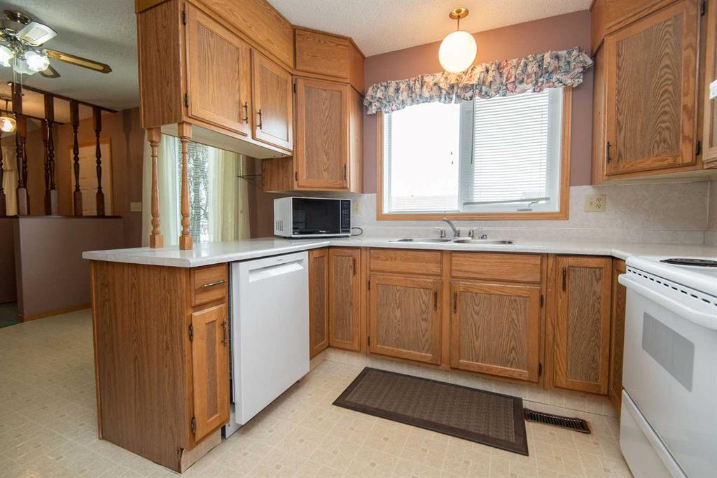 Welcome to this charming one-owner home in the welcoming community of Eckville! Offering 1,100 sq. ft. of well-maintained living space, this property is perfect for those seeking comfort, functionality, and small-town charm. The thoughtfully designed layout features two spacious bedrooms and two full bathrooms, along with the convenience of main floor laundry for easy everyday living. Pride of ownership is evident throughout, making this a move-in ready option for a variety of buyers. A unique breezeway connects the home to the detached garage, providing sheltered access and added versatility — ideal for Alberta living in every season. Step outside and you’ll discover a true gardener’s delight — the backyard has been fully transformed into a thriving garden space, perfect for those who love to grow and enjoy their own harvest. Inside, a dedicated cold room offers the ideal spot for storing homegrown produce and preserves year-round. Located in the heart of Eckville, you’ll enjoy a friendly community atmosphere with local amenities, schools, and a relaxed pace of life, all within an easy drive to larger centers. A rare opportunity to own a lovingly cared-for home with incredible lifestyle features in a great small-town.