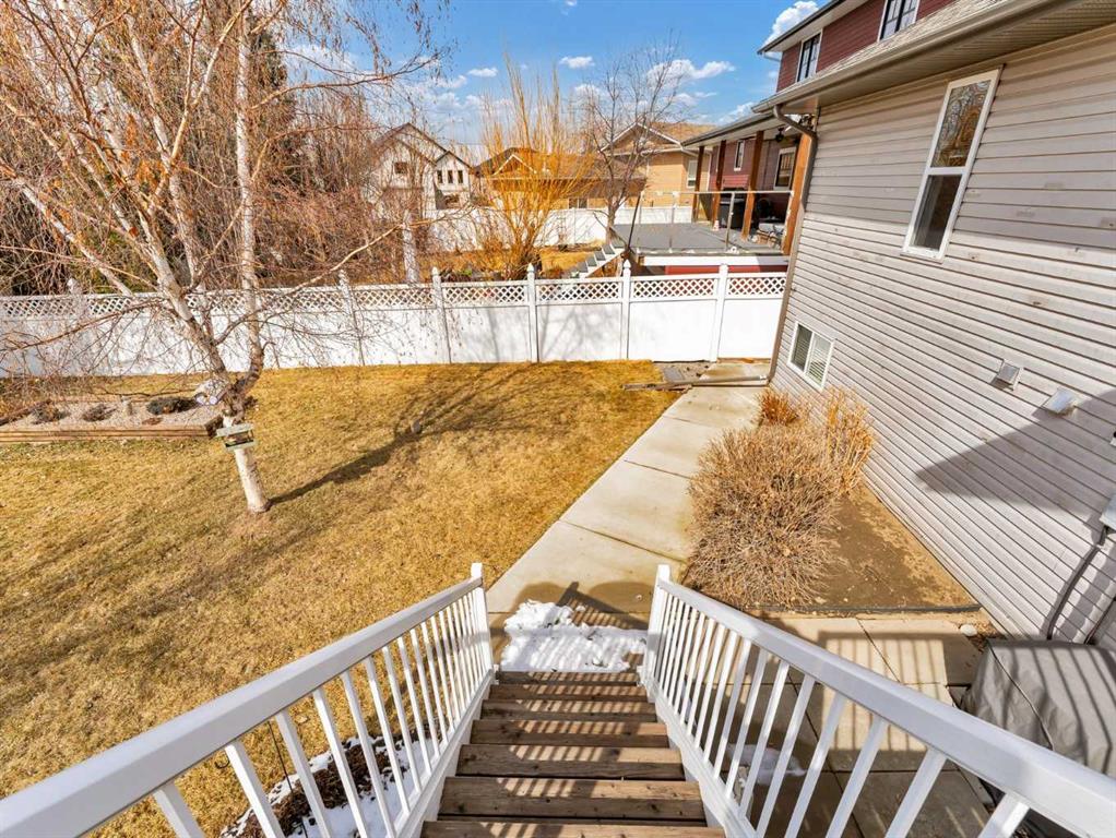 This impeccable Greystone home has been incredibly well cared for! Before you even step foot inside, you'll be impressed by the curb appeal, landscaping and the inviting charm. The front door of this bi-level home opens to a spacious entry with garage access to the side, closets and staircases going up and down. The heart of the home is above, a large kitchen, dining and living area meant for gathering, all beneath the vaulted ceilings and between large, bright windows. Featuring 5 bedrooms and 3 bathrooms, this property would host a family of any size or simply be the home that you've always deserved, in the neighbourhood you've coveted! 1394 square feet of generous square footage in every corner of this property is highlighted by the natural light that flows throughout. The primary bedroom features a large walk-in closet and 3 piece ensuite. 2 additional bedrooms adorn the main floor as well as another 4 pc bathroom. And basement... meet Man Cave! With an impressively oversized Media/Family Room, downstairs is also home to 2 additional bedrooms, 3 pc bathroom, laundry/utility room and great additional storage. The exterior includes beautiful landscaping, a huge deck, sprinkler system, PVC fence and the utmost privacy. The attached garage is heated and has tons of room for parking and storage. It's evident from first glance that every detail of this property was carefully planned and quality crafted. THIS is the one you've been waiting "fore"!