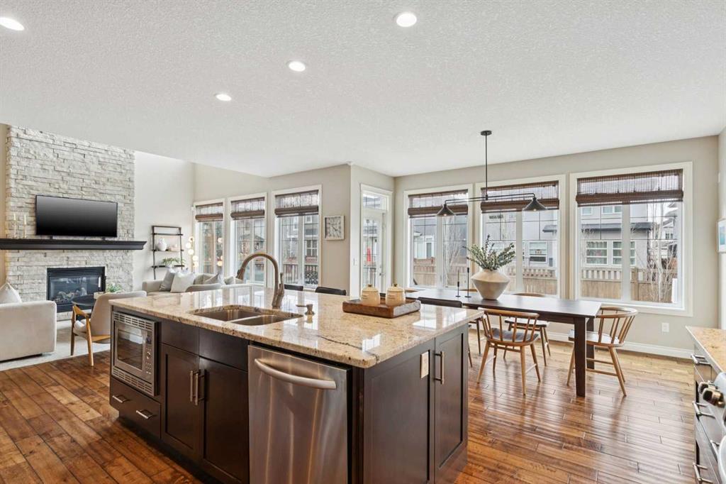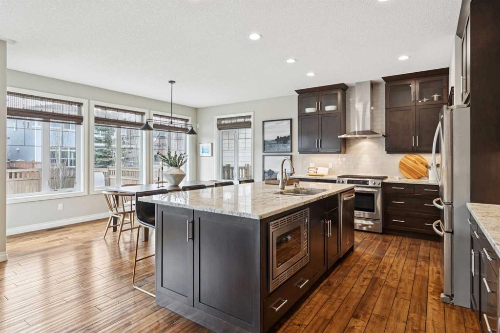 Nestled on a quiet cul-de-sac in the heart of Aspen Summit, this beautifully appointed and extensively upgraded residence offers over 2,600 sq. ft. of refined living space in one of Calgary’s most coveted family communities, Aspen Woods. Perfectly positioned just moments from top-rated schools, scenic parks and pathways and the boutique amenities of Aspen Landing, this home effortlessly blends luxury, comfort, and everyday convenience. Thoughtfully designed for modern family living, the home welcomes you with a charming front veranda—an inviting space to unwind and enjoy at the end of the day. Just inside, a private den/office provides the ultimate work-from-home convenience, ideally situated for productivity while maintaining separation from the main living areas. Rich hand scraped hardwood floors and expansive windows fill the main level with natural light, creating a warm yet sophisticated ambiance. The chef-inspired kitchen is the true heart of the home, featuring a substantial central island, upgraded stainless steel appliances, granite countertops, and timeless cabinetry—ideal for both entertaining and daily life. The dramatic two-storey living room showcases a striking stone fireplace to the ceiling, offering a stunning focal point and an inviting space to gather. Functionality is at the forefront with a walk-through pantry—complete with a custom chalkboard wall—leading to a well-designed mudroom outfitted with five individual lockers to keep busy family life effortlessly organized. Upstairs, a vaulted bonus room offers a flexible retreat for relaxation or play. The spacious primary suite is a true sanctuary, complete with a spa-inspired ensuite featuring dual vanities, a walk-in shower, and a luxurious jetted tub. Two additional generously sized bedrooms and a flexible study or homework area ensure space for every stage of family life. Outdoors, the sunny west-facing backyard is a private oasis, enhanced by a spacious deck and mature trees, complete with underground sprinkler system—perfect for enjoying long summer evenings. The undeveloped basement presents a rare opportunity to customize additional living space tailored to your needs. An exceptional offering in a prestigious, family-oriented neighbourhood, minutes to downtown and easy access west to the mountains, this home delivers the perfect balance of upscale living and thoughtfully designed family living in Aspen Woods.