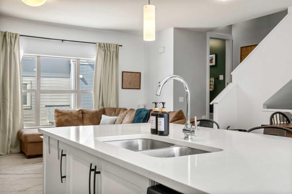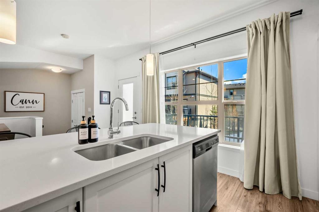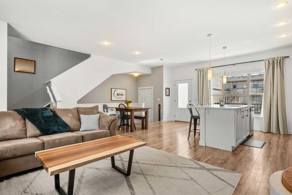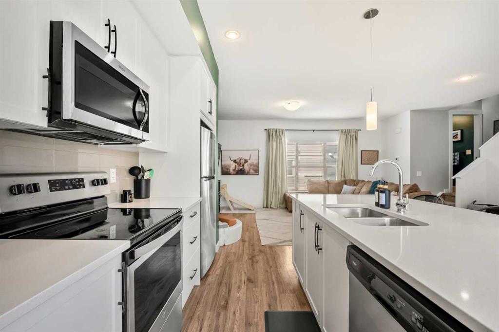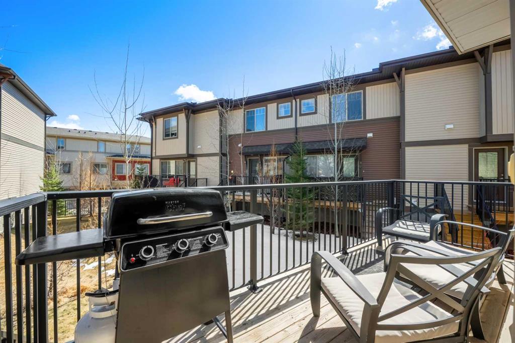 ***OPEN HOUSE, THIS SUNDAY, APRIL 12th, FROM 1-3 PM*** Beautifully cared for end-unit townhome offering 3 bedrooms, 2.5 bathrooms, and a double attached garage in the sought-after community of Heartland. This bright and inviting home features an open concept main floor with expansive windows that flood the living, dining, and kitchen areas with natural light. The modern kitchen is equipped with stainless steel appliances, quartz countertops, a spacious eat-up island and durable laminate flooring throughout the main level - Perfect scratch resistant flooring for this Pet-Friendly unit! Upstairs, you’ll find a generous primary retreat complete with a private 4-piece ensuite and large walk-in closet, along with two additional bedrooms, a full 4-piece main bathroom, and convenient upper level laundry. The sunny south facing deck is perfect for summer BBQs (gas hookup included) and offers direct access via stairs to the green space behind, creating a great extension for outdoor enjoyment and family time. Located just minutes from the amenities of Cochrane, including local cafes, restaurants, and shopping, this home also provides quick access to outdoor recreation with Waiporous, Ghost Lake and the Rocky Mountains only a short drive away. Calgary is approximately 30 minutes east, making this an ideal location for commuters seeking a balance of small-town charm and city convenience. Book your private showing today!