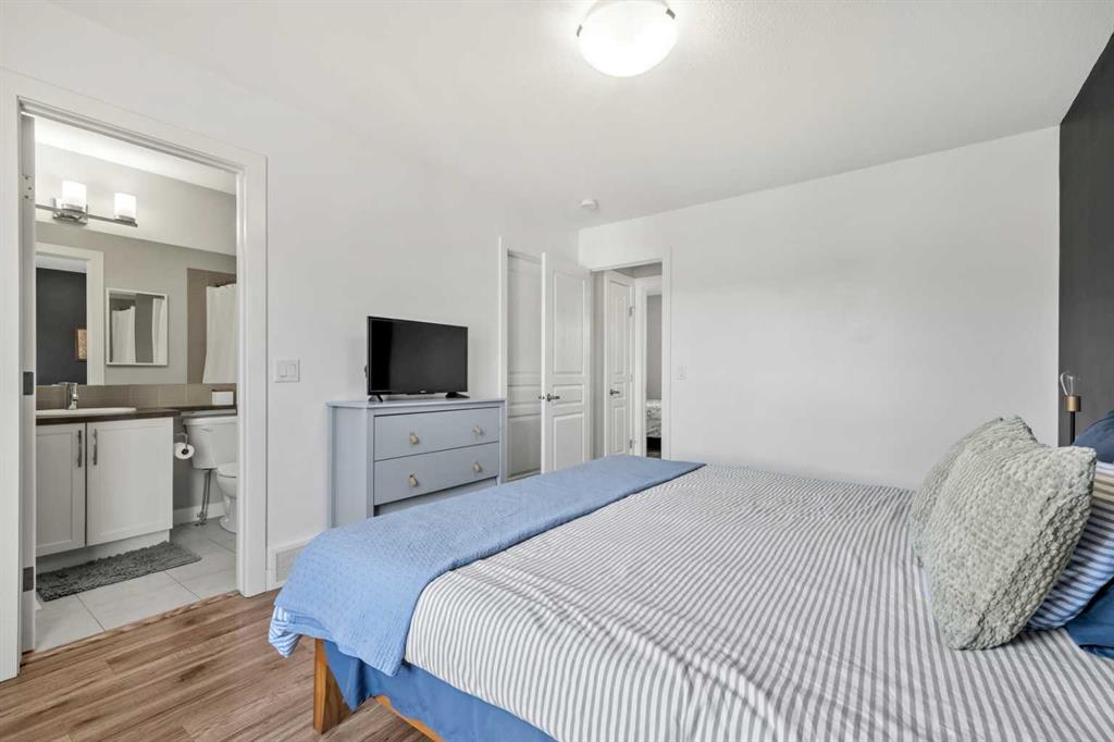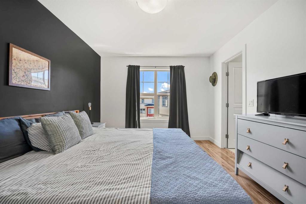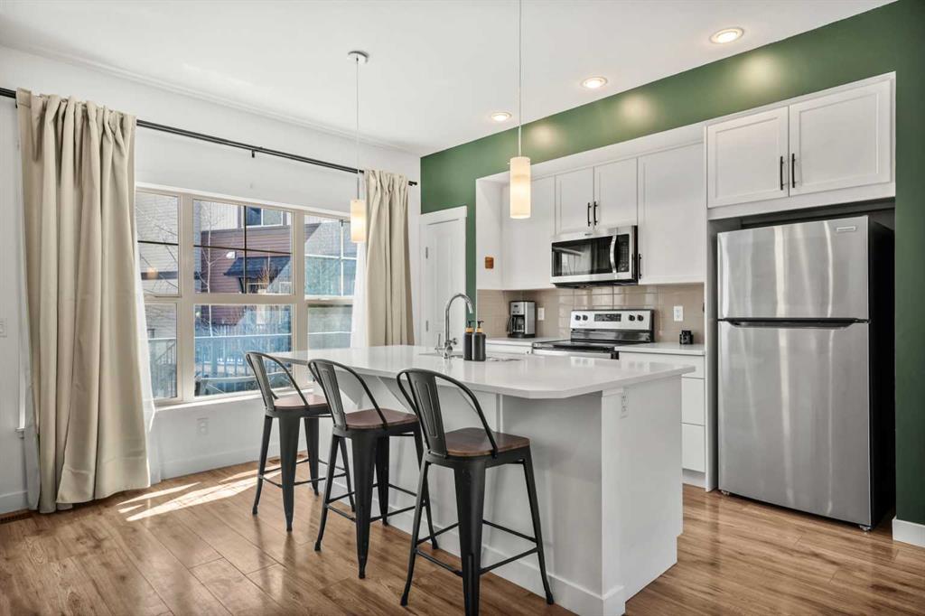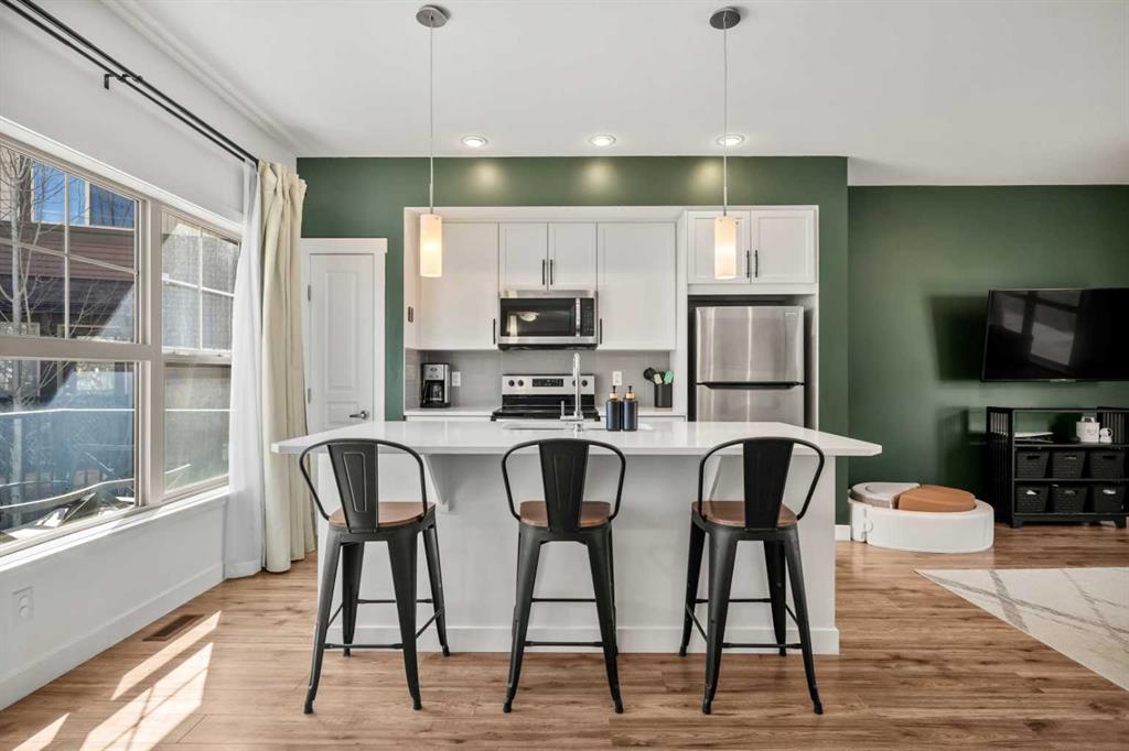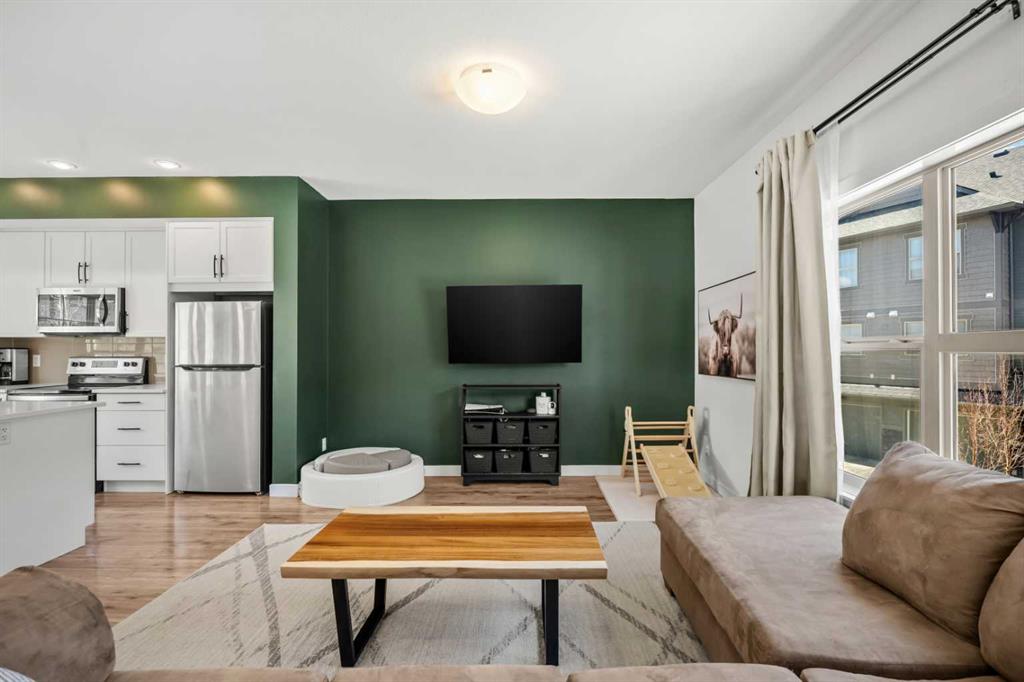 ***OPEN HOUSE, THIS SUNDAY, APRIL 12th, FROM 1-3 PM*** Beautifully cared for end-unit townhome offering 3 bedrooms, 2.5 bathrooms, and a double attached garage in the sought-after community of Heartland. This bright and inviting home features an open concept main floor with expansive windows that flood the living, dining, and kitchen areas with natural light. The modern kitchen is equipped with stainless steel appliances, quartz countertops, a spacious eat-up island and durable laminate flooring throughout the main level - Perfect scratch resistant flooring for this Pet-Friendly unit! Upstairs, you’ll find a generous primary retreat complete with a private 4-piece ensuite and large walk-in closet, along with two additional bedrooms, a full 4-piece main bathroom, and convenient upper level laundry. The sunny south facing deck is perfect for summer BBQs (gas hookup included) and offers direct access via stairs to the green space behind, creating a great extension for outdoor enjoyment and family time. Located just minutes from the amenities of Cochrane, including local cafes, restaurants, and shopping, this home also provides quick access to outdoor recreation with Waiporous, Ghost Lake and the Rocky Mountains only a short drive away. Calgary is approximately 30 minutes east, making this an ideal location for commuters seeking a balance of small-town charm and city convenience. Book your private showing today!