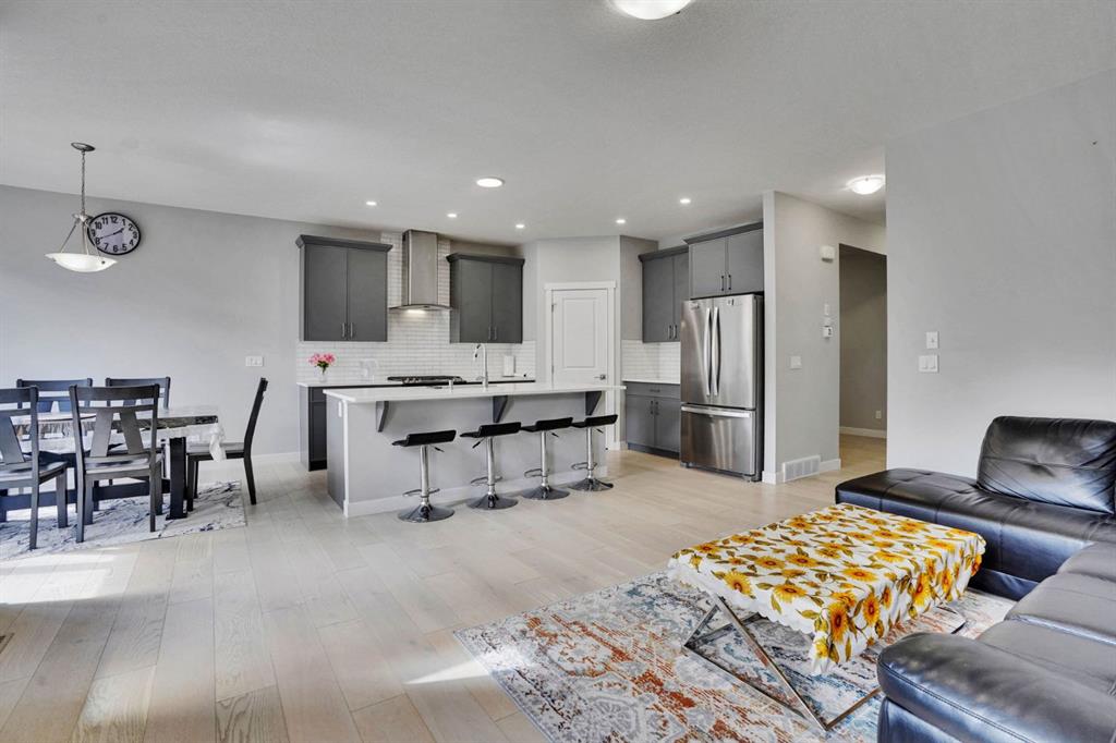 Welcome to this beautifully bright home in the heart of Belmont where oversized windows flood every room with natural light and warmth. The main floor offers a flexible bonus room with a half bath, perfect for a home office or guest space, plus a kitchen equipped with a gas range for the home chef. Elegant wooden spindle railings lead you upstairs to three spacious bedrooms and two full washrooms. Step out onto your brand new deck and enjoy your private outdoor retreat. The unfinished basement is a blank canvas ideal for a future bedroom suite and large den, or a potential mortgage helper. Located just 1 minute to Belmont Village Plaza, 3 minutes to Silverado & the new 13-acre Belmont Plaza, and 6 minutes to Shawnessy’s major shopping & YMCA. Families will love being 3 minutes from the newly built Belmont Library, Fieldhouse & Pool. Nearby schools include Ron Southern School and All Saints High School, with parks and pathways right at your doorstep. Transit is a breeze with a bus stop 2 minutes away and the C-Train just 7 minutes by car. This is Belmont living at its finest bright, connected, and full of potential.