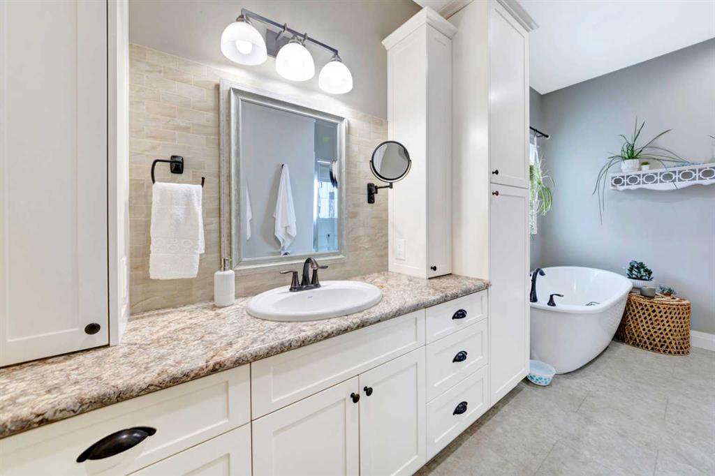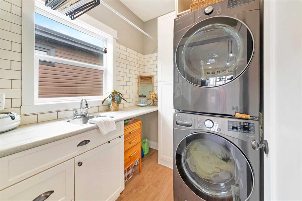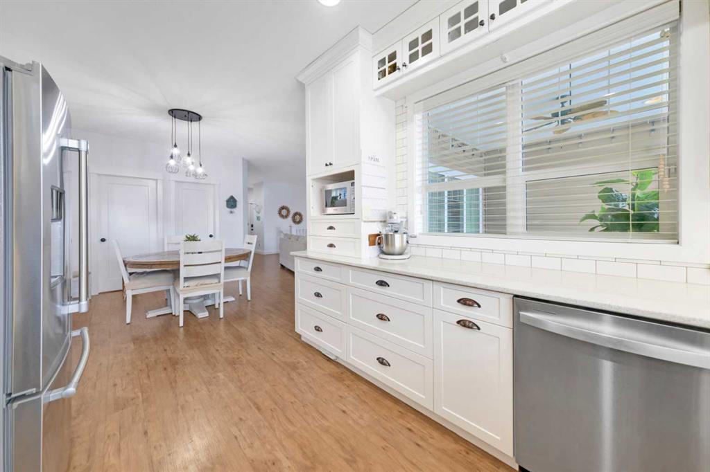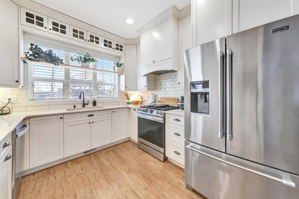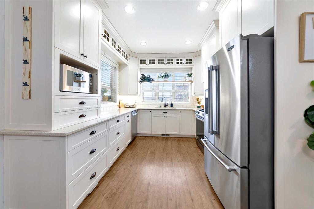 Nestled on a quiet, sought-after street in College Park, this raised bungalow is truly a standout. Pristine, well cared for, and thoughtfully designed, it offers a modern feel with a warm, inviting energy throughout. The oversized 665 sq ft garage, in-floor heat, central AC, RV Parking and central vac rough-in, underground sprinklers add both comfort and functionality to this well-built home.Backing onto a beautifully treed walking path, the property offers exceptional privacy and a setting that feels like your own private retreat with south sun exposure. The yard is an oasis, complete with a covered deck featuring a heater, fan, and natural gas hookup, allowing for year-round enjoyment. Surrounded by mature trees, this space is designed for both relaxation and entertaining with maximum natural light exposure with the south facing back yard..Inside, 9-foot ceilings create a bright and open feel across both levels. The kitchen is modern and elevated, featuring cabinetry to the ceiling, quartz countertops, and a large walk-in pantry. The main floor layout is unique and functional, offering a den that can easily serve as a bedroom, a stylish half bath, finished main floor laundry, and a spacious primary retreat with a stunning five-piece ensuite and a custom closet.The fully finished basement continues the same quality with 9-foot ceilings, a large living space with a bar area, two massive bedrooms, a full bathroom, and ample storage. This is a home that blends design, comfort, and privacy in one of College Park’s most desirable locations . This well curated home is a true gem.