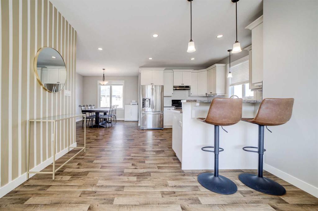 Step into a home where comfort meets connection, and every space feels designed for the life you’ve been dreaming of. This inviting 5-bedroom, 3-bathroom bi-level offers approximately 2900 sqft of thoughtfully designed living space, creating the perfect balance of openness and functionality for everyday living. At the heart of the home, you’ll find a seamless open layout connecting the kitchen, dining, and living areas, making it an ideal setting for family time, entertaining guests, or hosting memorable get-togethers. Just off the dining space, the covered upper deck extends your living outdoors and offers a peaceful place to enjoy your morning coffee or unwind in the evening. The primary suite provides a relaxing retreat, complete with a walk-in closet and a stylish 4-piece ensuite. Two additional bedrooms and a full bathroom on the main level offer flexibility for family, guests, or a home office. Downstairs, the walkout basement opens up a bright and spacious lower level featuring 9-foot ceilings, a generous family room (which includes a pool table for the new owners), and a cozy wood-burning fireplace, perfect for movie nights or quiet evenings in. Two more bedrooms and another full bath add even more versatility to the space. You’ll also appreciate the dedicated laundry room, thoughtfully designed to support the needs of a busy or growing family. Outside, the pie-shaped backyard offers space to relax, play, or bring your outdoor vision to life. The property also features RV parking, giving you the flexibility for additional vehicles, trailers, or recreational use. Located on a quiet cul-de-sac in a welcoming community, you are just moments from parks, playgrounds, and schools, with the convenience of only a 10-minute drive to Lethbridge. It is the perfect blend of small-town living and easy access to city amenities. With sellers motivated and ready for their next move, this is an opportunity to secure exceptional space, value, and lifestyle in one complete package. This is more than a home. It is a space where everyday life feels just right.