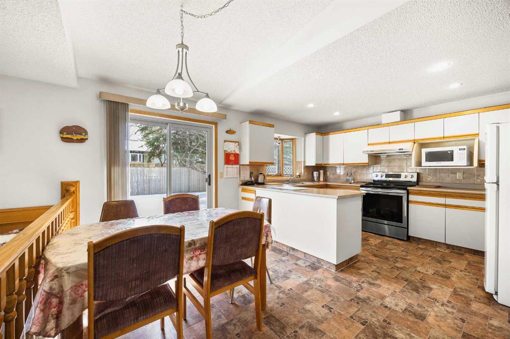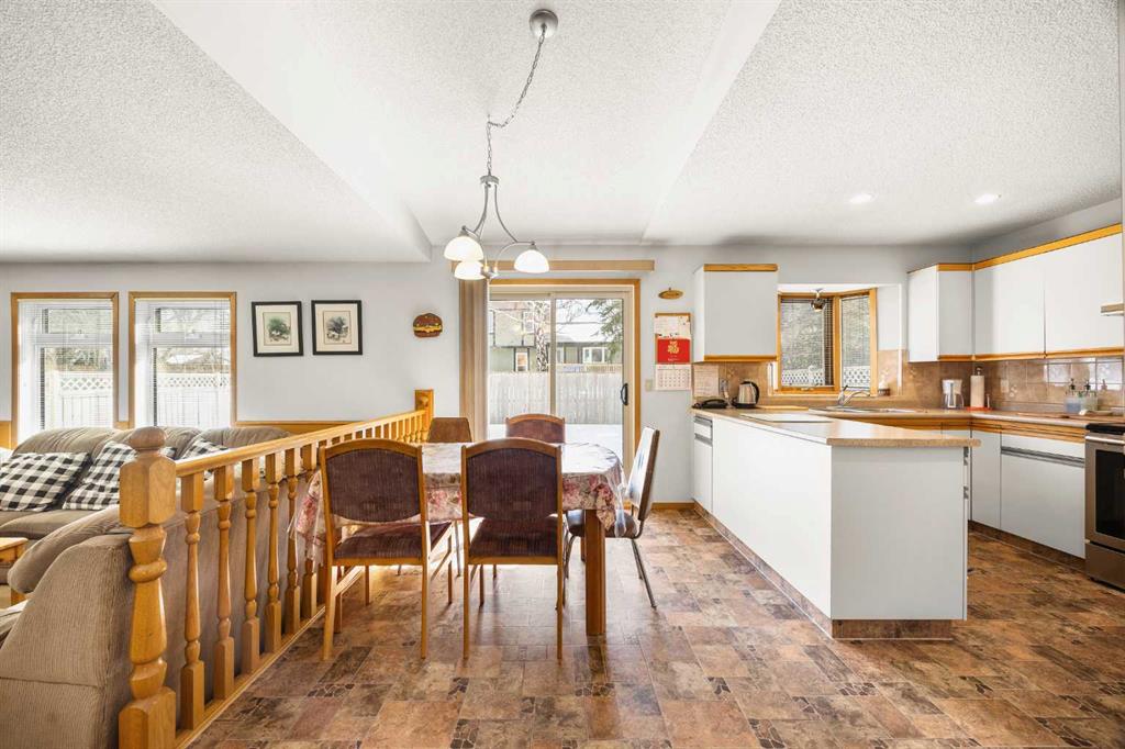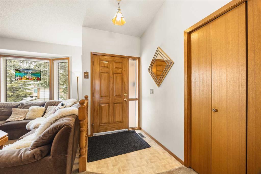 Welcome to this beautiful family home, meticulously maintained by the original owner, nestled on a quiet crescent with a South-facing backyard and within walking distance to Edgemont Elementary School. It offers 4+2 bedrooms, 3 baths, and over 2,600 sq ft of total living space—perfect for large or multi-generational families seeking comfort and versatility. Step inside the main living space and be greeted by an open-concept floor plan combined with a soaring 10'10" vaulted ceiling, creating an airy, spacious atmosphere with perfect natural airflow during summer. The well-sized Living room features a beautiful bay window next to a large formal dining room. Nice Kitchen offers newer stainless steel appliances and a breakfast nook to enjoy sunlight throughout the day. Next to it sits a generous-sized Family room anchored by a cozy fireplace, perfect for relaxing and gathering with friends and family. An extra bedroom and 3-piece bathroom located on the main floor provide convenient elderly living or guest accommodations without needing to climb stairs. A mudroom with a laundry closet completes this level. The upper split level features three bedrooms and two 4-piece bathrooms for optimal family living. The south-facing Primary bedroom offers a peaceful retreat with a convenient 4-piece ensuite. Two additional good-sized bedrooms provide flexible space for extended family members, while an extra 4-piece bathroom adds everyday convenience. Don't miss the partially finished basement with a huge Recreation room and two more bedrooms—perfect for teenagers, guests, or a home office setup. A good-sized storage room provides ample space for all your belongings. Bathroom rough-in is ready for future development. Two newer high-efficiency furnaces and newer hot water tank. Step outside to your fully fenced and sunny backyard, which features a massive Deck, perfect for summer barbecues and outdoor play. A double attached garage provides ample parking and storage. Updates include newer roof, siding, windows, furnaces, hot water tank, and appliances—providing added peace of mind and long-term value. Located in prestigious Edgemont, this home sits on a quiet crescent within walking distance to bus stops and winding ravine trails. You're only minutes from shopping including Superstore and Market Mall, with quick and easy access to the University of Calgary, Foothills Medical Centre, LRT, and downtown. Designated schools include Edgemont Elementary, Tom Bains Junior High, and Winston Churchill Senior High. A truly sensational home in one of Northwest Calgary's most popular neighborhoods—with all this house has to offer, you won't want to miss out on this chance to make your home in one of the city's most sought-after communities!