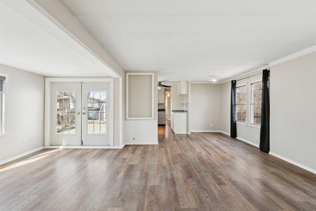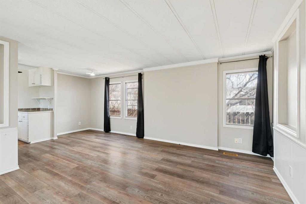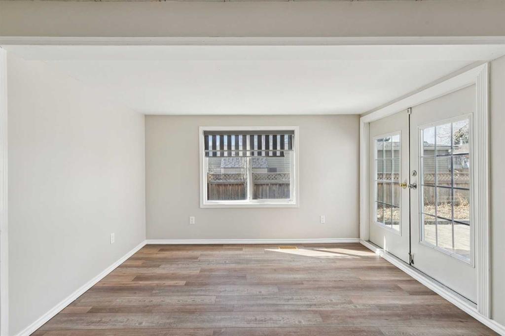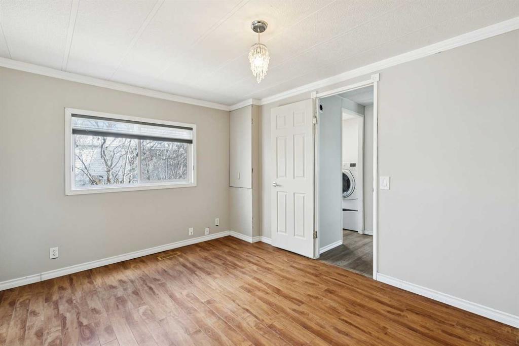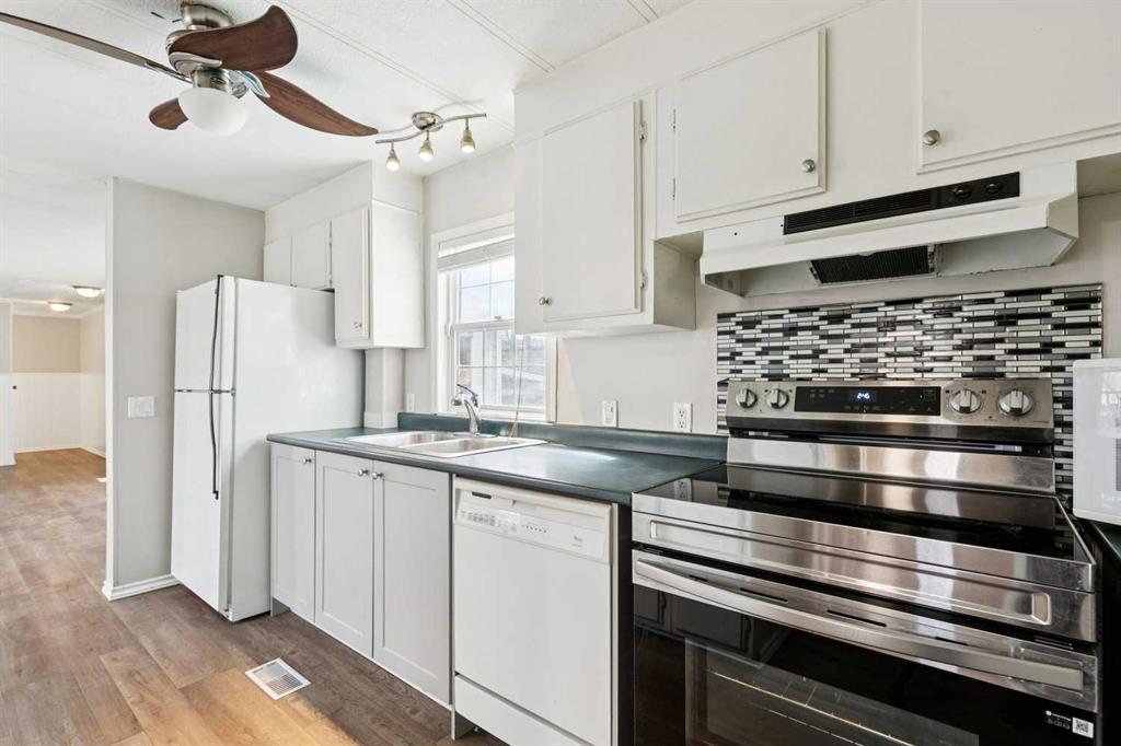 UPDATED KITCHEN, FLOORING & ENSUITE MAKE THIS MOVE-IN READY GEM A MUST-SEE! Welcome to this charming home tucked away on a quiet street, offering a perfect blend of comfort, functionality, and outdoor space. Step inside to a bright, open-concept layout where the kitchen seamlessly connects to a spacious living room with large windows that flood the space with natural light. The adjoining dining area creates an ideal setup for everyday living and entertaining. The main level features a generous primary bedroom with a refreshed ensuite (toilet, vanity, and flooring replaced in 2022) and easy access to the laundry room for added convenience. Two additional bedrooms, a full bathroom, and main floor laundry complete the level. Recent upgrades add real value, including fresh paint throughout, new lower kitchen cabinetry (2024), updated main area flooring (2024), and a newer stove (2023). Step outside through double doors to a large deck overlooking a private, tree-lined backyard. Fully fenced and beautifully maintained, this outdoor space also offers RV parking, perfect for added flexibility. Located in a quiet, established neighbourhood close to the Airdrie Rec Center, parks, pathways, and everyday amenities, this home is an excellent opportunity for first-time buyers, investors, or anyone looking for a well-rounded property in a great location. SOME PHOTOS ARE VIRTUALLY STAGED.