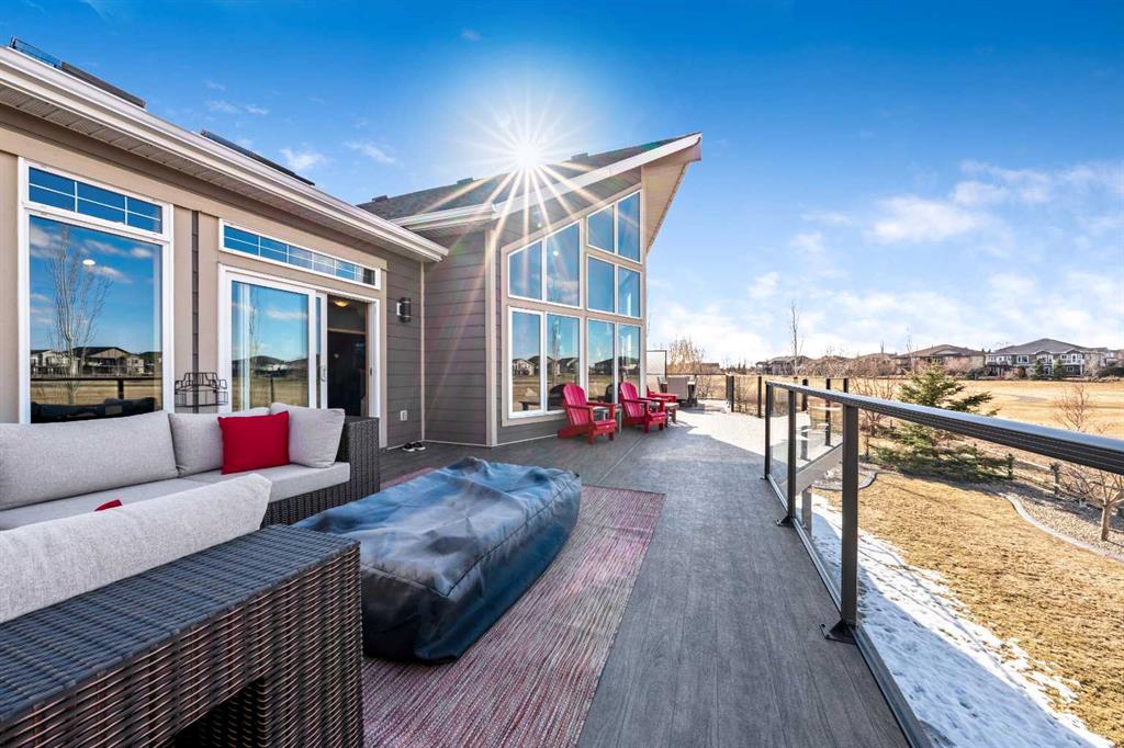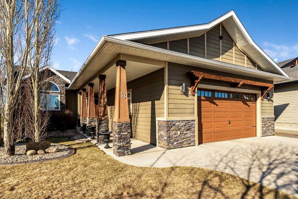 33 Wyndham Park Way Speargrass Golf Course Living! Backing the 10th fairway of the Speargrass Golf Course and just steps from the Bow River, this beautifully upgraded bungalow offers peaceful views, stunning sunsets, and over $200,000 in thoughtful upgrades... Welcome to this beautifully maintained bungalow located along the 10th fairway of the Speargrass Golf Course, offering peaceful views, stunning sunsets, and a relaxed lifestyle in one of Wheatland County’s most charming communities. Just steps from the Bow River, this home combines scenic surroundings with a bright and spacious interior designed for comfortable living. The main floor features an open-concept layout with soaring vaulted ceilings, skylights, and expansive windows that fill the home with natural light while capturing the surrounding golf course views. The impressive stone fireplace anchors the great room, creating a warm and inviting space for gathering. The kitchen is well appointed with granite countertops, a large island, and generous cabinetry, flowing seamlessly into the dining area with patio doors that open onto the upper deck—perfect for morning coffee or evening sunsets overlooking the fairway. The primary suite offers a private retreat with direct deck access and a spa-inspired 5-piece ensuite, while the main floor also includes a dedicated office with French doors, convenient laundry area, and mudroom access from the attached garage. The fully finished lower level walkout provides a spacious family and recreation room, two additional bedrooms, and a full bathroom—ideal for guests, family, or entertaining. Over the past several years, the sellers have invested over $200,000 in thoughtful upgrades enhancing both comfort and efficiency. Improvements include central air conditioning, a high-efficiency Napoleon furnace, HRV system, Culligan water softener upgrade, and a full CAFÉ appliance package. Additional highlights include Gemstone architectural exterior lighting, professionally finished garage with epoxy flooring and custom cabinetry, a Master Spa Twilight hot tub, stamped concrete patio, custom deck upgrade, irrigation system, new landscaping and sod, interior painting, bathroom updates, new carpeting, and a brand s hingles will be completed in June. The landscaped yard provides beautiful curb appeal and multiple outdoor spaces to relax and enjoy the peaceful golf course setting. Speargrass offers a quiet community atmosphere with golf, river access, walking paths, and RV parking, all within an easy commute to Calgary, Strathmore, and Okotoks. This is a rare opportunity to enjoy golf course living with river access in a beautifully upgraded home.