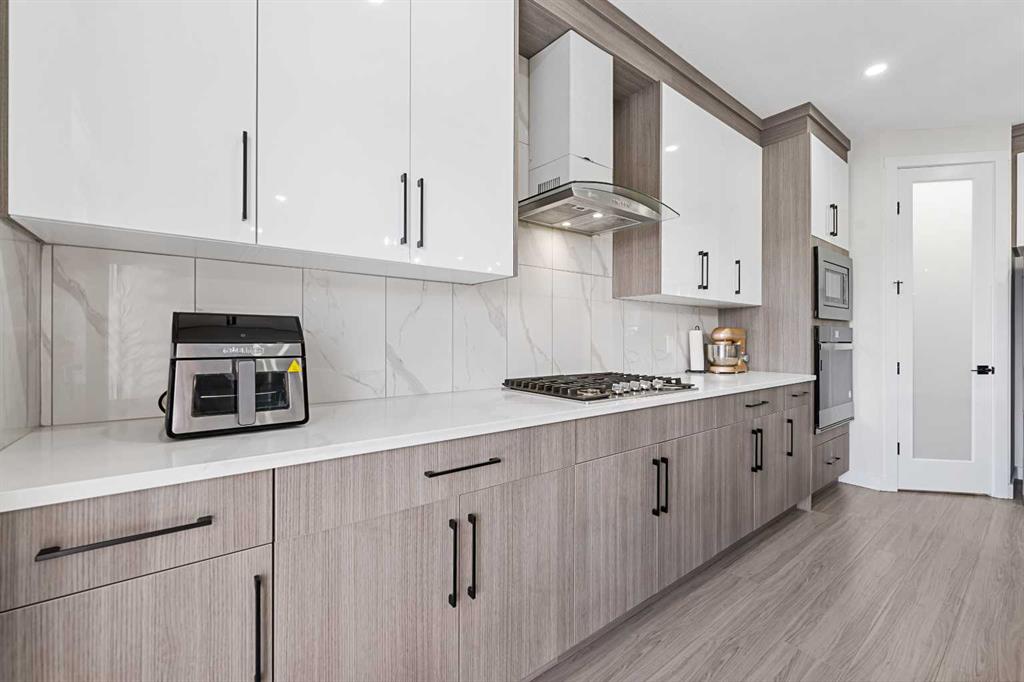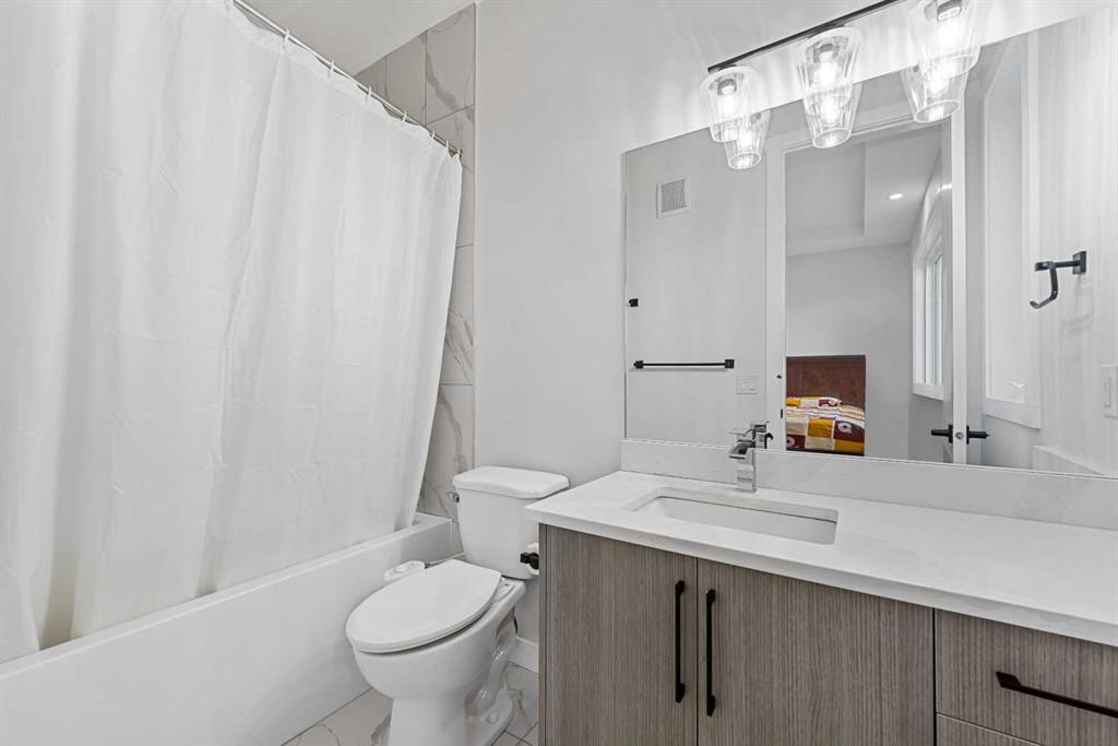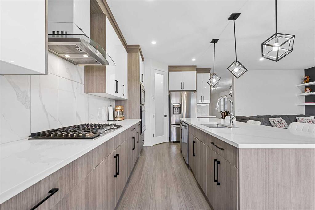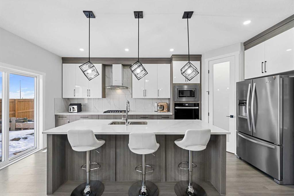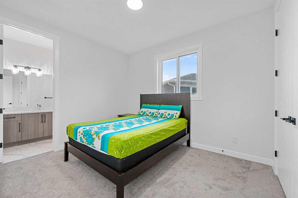 ** Main Level Bedroom & 4pc Bath** | 5 Bedrooms Upstairs | Exquisite Finishes | Quartz Countertops | LVP Flooring | Two Toned Kitchen | Full Height Cabinets | Stainless Steel Appliances | Gas Cooktop | Electric Fireplace | High Ceilings | 2 Primary Bedrooms | Upper-Level Laundry Room | 2 Bedroom Basement Suite (Illegal) | Separate Entry | Basement Laundry | Large Backyard | Front Attached Double Garage | Driveway | Incredible Location | Near Hugh. A. Bennet CBE School, Parks, Baseball Diamond & Shopping. Welcome to your beautiful, spacious 2-storey family home boasting 2816 Sq. Ft. throughout the main and upper levels with an additional 1100 Sq. Ft. in the basement suite(illegal). The front door opens to a grand open floor plan foyer, living and dining rooms with high ceilings and recessed lighting. The main level bedroom and 4pc bath are a great bonus for a large family or overnight guests! The sparkling kitchen is finished with two-toned full-height cabinets, quartz countertops, built-in stainless-steel appliances, a gas cooktop and a large centre island with barstool seating. This home is perfect for entertaining friends and family! The kitchen has a corner pantry with a frosted glass door for a clean, organized feel. The sliding glass doors off the kitchen make indoor/outdoor living easy! This leads to the backyard which is ready for you to build the deck of your dreams! The living room is accented with an electric fireplace surrounded by floor-to-ceiling black tile. The main level is complete with a mud room with built-in shelving off the interior garage door. Upstairs has 5 bedrooms, 4 ensuite bathrooms and a laundry room! The first primary bedroom has tray ceilings, a deep walk-in closet and a stunning 5pc ensuite. The 5pc ensuite has a deep soaking tub, a walk-in shower with a bench and a double vanity with plenty of storage below. The 2nd primary bedroom has a walk-in closet and a 4pc ensuite with a tub/shower combo. Bedroom 3 has a double-door closet and a 4pc ensuite bath. Bedrooms 4 and 5 both have walk-in closets and share the 4pc bathroom. Bedroom 4 has a cheater door to this bathroom making it an ensuite! The upper-level laundry is every homeowner's dream as it's near all the bedrooms! This is outfitted with a sink, shelf and plenty of cabinet storage. Downstairs, the 2 bedroom basement suite(illegal) has a separate side entry! The basement has high ceilings that emphasize the grandiose size of this lower level! The open floor plan kitchen and rec room allow for a comfortable living and dining space. The kitchen is finished with full-height cabinets and stainless steel appliances! The 2 bedrooms on this level are both large and have double-door closets. The 4pc bathroom on this level has a tub/shower combo and an extended single vanity with storage below. The basement has its own laundry too! The front attached garage and driveway allow for 4 vehicles to be parked at any time! Hurry and book your showing at this incredible home today!