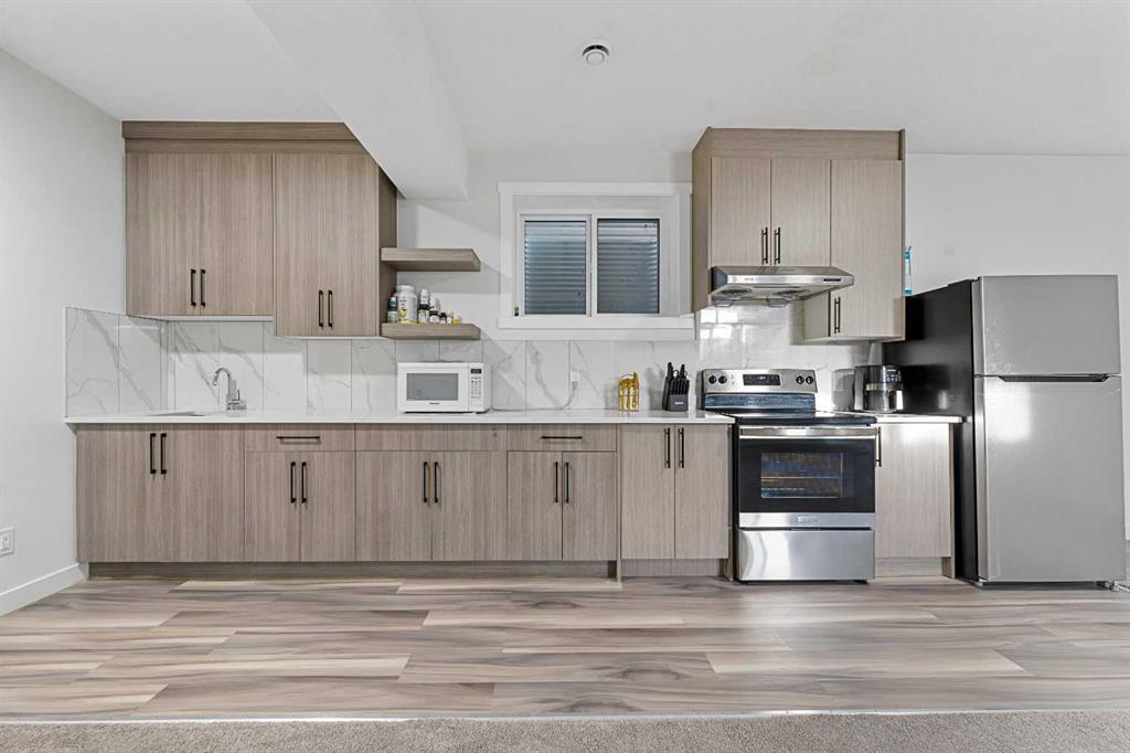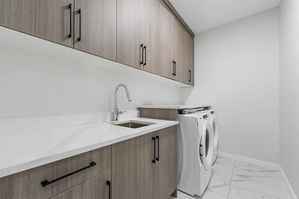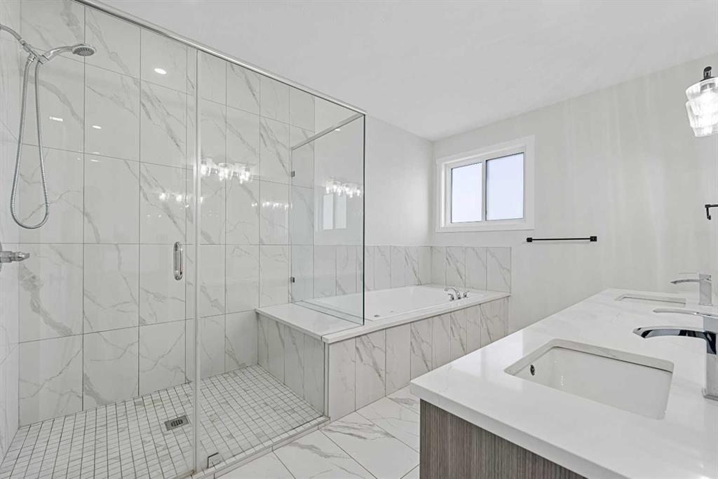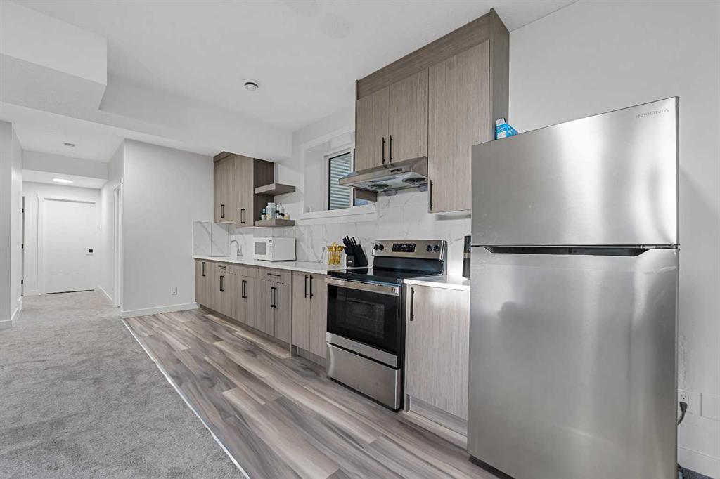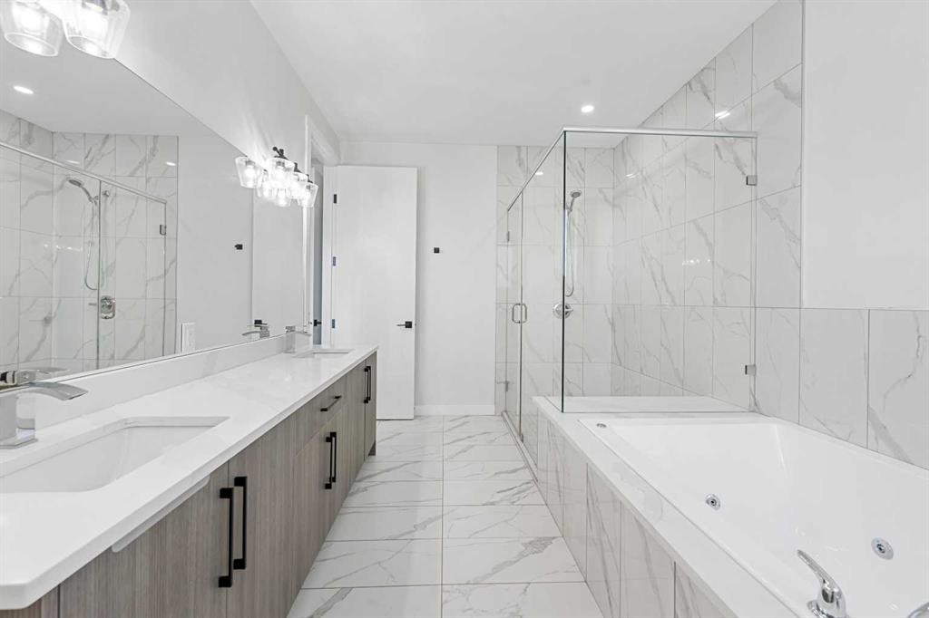 ** Main Level Bedroom & 4pc Bath** | 5 Bedrooms Upstairs | Exquisite Finishes | Quartz Countertops | LVP Flooring | Two Toned Kitchen | Full Height Cabinets | Stainless Steel Appliances | Gas Cooktop | Electric Fireplace | High Ceilings | 2 Primary Bedrooms | Upper-Level Laundry Room | 2 Bedroom Basement Suite (Illegal) | Separate Entry | Basement Laundry | Large Backyard | Front Attached Double Garage | Driveway | Incredible Location | Near Hugh. A. Bennet CBE School, Parks, Baseball Diamond & Shopping. Welcome to your beautiful, spacious 2-storey family home boasting 2816 Sq. Ft. throughout the main and upper levels with an additional 1100 Sq. Ft. in the basement suite(illegal). The front door opens to a grand open floor plan foyer, living and dining rooms with high ceilings and recessed lighting. The main level bedroom and 4pc bath are a great bonus for a large family or overnight guests! The sparkling kitchen is finished with two-toned full-height cabinets, quartz countertops, built-in stainless-steel appliances, a gas cooktop and a large centre island with barstool seating. This home is perfect for entertaining friends and family! The kitchen has a corner pantry with a frosted glass door for a clean, organized feel. The sliding glass doors off the kitchen make indoor/outdoor living easy! This leads to the backyard which is ready for you to build the deck of your dreams! The living room is accented with an electric fireplace surrounded by floor-to-ceiling black tile. The main level is complete with a mud room with built-in shelving off the interior garage door. Upstairs has 5 bedrooms, 4 ensuite bathrooms and a laundry room! The first primary bedroom has tray ceilings, a deep walk-in closet and a stunning 5pc ensuite. The 5pc ensuite has a deep soaking tub, a walk-in shower with a bench and a double vanity with plenty of storage below. The 2nd primary bedroom has a walk-in closet and a 4pc ensuite with a tub/shower combo. Bedroom 3 has a double-door closet and a 4pc ensuite bath. Bedrooms 4 and 5 both have walk-in closets and share the 4pc bathroom. Bedroom 4 has a cheater door to this bathroom making it an ensuite! The upper-level laundry is every homeowner's dream as it's near all the bedrooms! This is outfitted with a sink, shelf and plenty of cabinet storage. Downstairs, the 2 bedroom basement suite(illegal) has a separate side entry! The basement has high ceilings that emphasize the grandiose size of this lower level! The open floor plan kitchen and rec room allow for a comfortable living and dining space. The kitchen is finished with full-height cabinets and stainless steel appliances! The 2 bedrooms on this level are both large and have double-door closets. The 4pc bathroom on this level has a tub/shower combo and an extended single vanity with storage below. The basement has its own laundry too! The front attached garage and driveway allow for 4 vehicles to be parked at any time! Hurry and book your showing at this incredible home today!