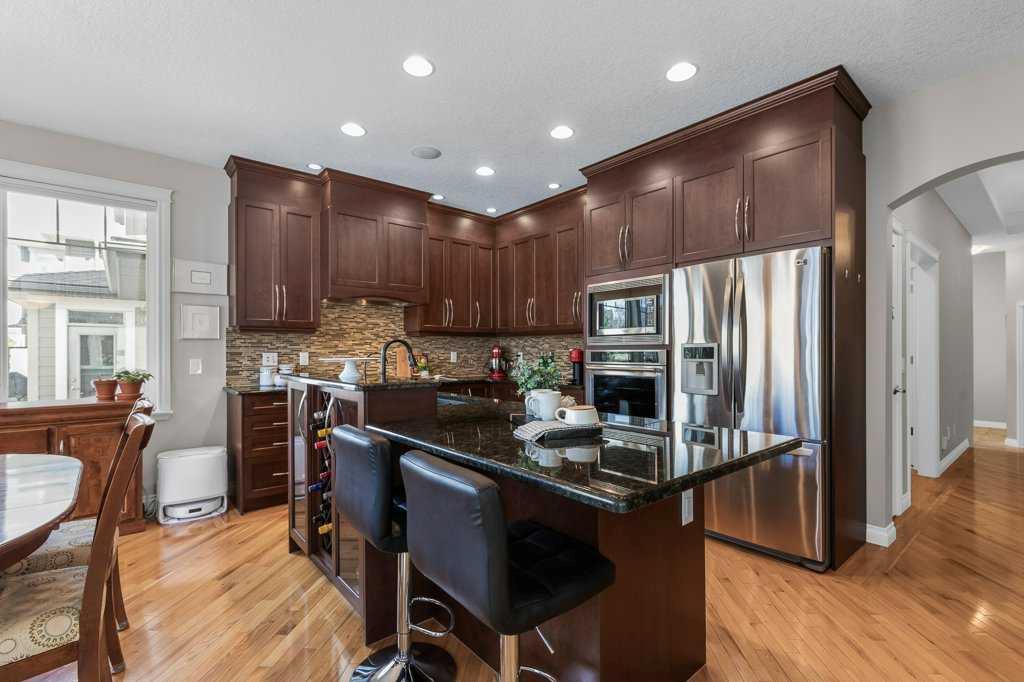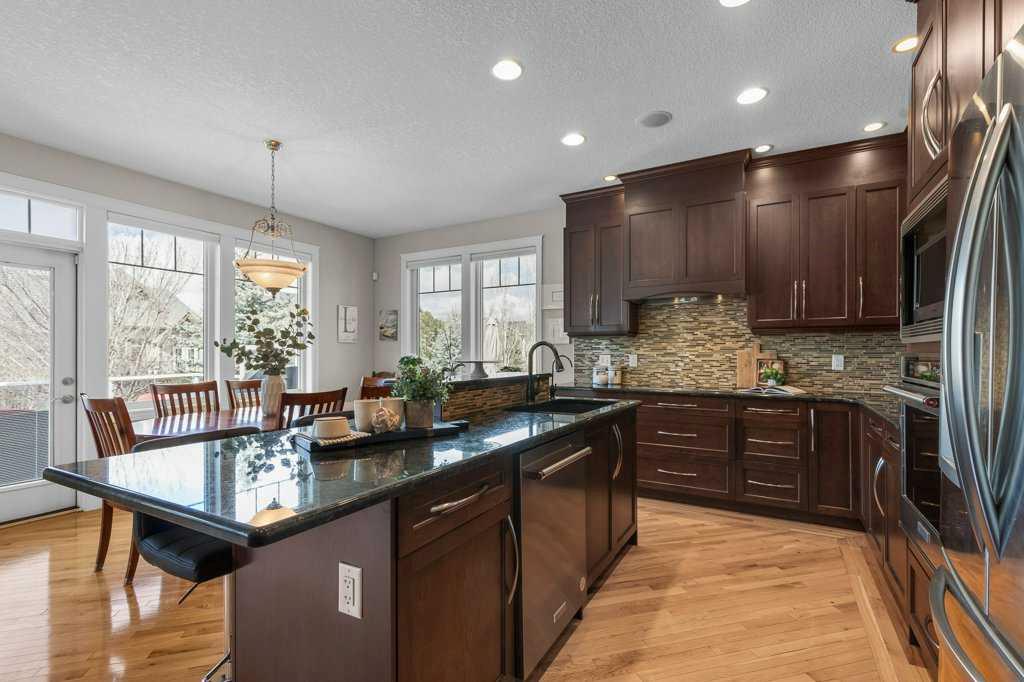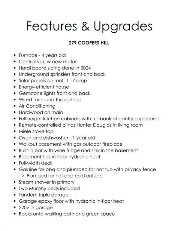 **Open house April 12 from 1-3pm** Some homes don’t just check boxes—they change the way you live. This rare walkout bungalow in Coopers Crossing is one of those homes. Backing a peaceful greenspace with walking path, this west facing backyard is perfect for watching sunsets and listening to birds. From the moment you arrive, the home feels special. Stone pillars, a welcoming covered entry, and newly upgraded Hardi Board siding set the tone for what’s inside: warmth, comfort, and thoughtful design throughout. Step through the front door and the space opens up—soaring ceilings, large front entry walk in closet, hardwood, and beautiful railing leading you to the main living area. The primary suite is a sanctuary all its own. Heated floors greet your feet each morning, and the steam shower—wrapped in floor to ceiling tile with a rain head—becomes your place to unwind after long days. Across the hall, a flexible second bedroom with a Murphy bed adapts to your life, whether you’re hosting guests, working from home, or creating a hobby space. In the heart of the home, the gourmet kitchen brings people together. Dark wood cabinetry that stretches to the ceiling, granite countertops, hood fan built into custom cabinet, Stainless appliances (dishwasher and wall oven are 1 year old and cooktop is Miele), large island with Wine rack and a full wall of built in cabinets make this any home chef’s dream. The dining area opens to a massive west facing deck that spans the entire home, complete with gas line and spiral staircase to the back yard. The living room’s vaulted ceilings and stone fireplace create a cozy, airy space perfect for quiet mornings or lively gatherings. Hunter Douglas remote controlled blinds add comfort and ease. Then there’s the walkout basement—a space designed for connection. With in floor heat, a wet bar with wine fridge, a second stone fireplace, and double doors leading to a covered patio, it’s a place where celebrations happen, and memories are made. The outdoor fireplace is cozy and charming, and the patio with privacy wall is already set up for a future hot tub. There is also a second gas line on this level. Two additional bedrooms, another full bath, and a large laundry/utility room (with extra cold storage room) complete the lower level, offering space for family, guests, or hobbies. And the lifestyle upgrades continue: • furnace replaced 4 years ago • Whole home wired sound system • Triple garage with epoxy floors and 220V for projects and toys • Central A/C for summer comfort • Gemstone exterior lighting front and back • Underground sprinklers front and back • laundry can be moved to upstairs entry closet if desired • Solar panels (11.7 amp) and Energy Efficient Home designation for long term savings and sustainability. This truly is a one-of-a-kind treasure that fits the needs of any family. Close to schools, shopping, multiple parks and ponds. You can’t beat living in Coopers Crossing!! Call for your private viewing today!!