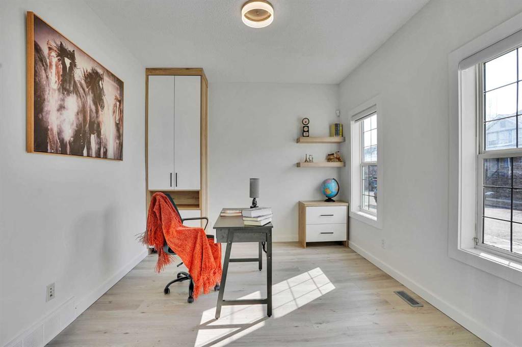 Welcome to this beautifully renovated 2-storey detached home in the highly sought-after community of McKenzie Towne, Calgary. Offering over 1,717 sq. ft. of well-designed living space, this home features 3 bedrooms, 2.5 bathrooms, and a main floor office, making it perfect for families and professionals alike. Ideally located close to schools, shopping, parks, and all major amenities, with easy access to 130 Avenue SE, Stoney Trail, 52 Street and Deerfoot Trail, this property combines comfort with convenience. Upon entry, you are welcomed by a spacious foyer that leads into a bright and versatile main floor office—ideal for working from home. The main living area showcases a modern kitchen equipped with stainless steel appliances, including a new dishwasher (2026) and a newer stove (2025), overlooking the dining area and a cozy living room with a fireplace. Large windows, complemented by new zebra blinds, allow for an abundance of natural light, creating a warm and inviting atmosphere. A 2-piece bathroom completes the main level. The upper floor offers a spacious primary bedroom featuring a walk-in closet and a private 4-piece ensuite, along with two additional well-sized bedrooms and a 3-piece bathroom. This home has seen numerous recent upgrades, including updated attic insulation, new flooring and carpet, fresh paint throughout, modern light fixtures, and a newer hot water tank (2022)—providing both comfort and peace of mind. Step outside to a huge backyard, perfect for relaxing or hosting summer BBQs. This move-in-ready home is truly a gem and offers exceptional value in a fantastic location.