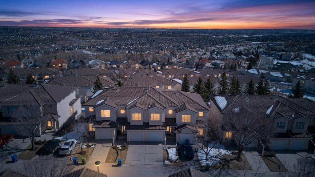 Experience the perfect blend of executive style and low-maintenance living in this stunning 2-storey townhome. Featuring a bright, open-concept floor plan, this home is drenched in natural light thanks to expansive windows and a coveted walk-out basement. The main floor offers a seamless flow from the spacious kitchen to the inviting living area—ideal for entertaining. Retreat upstairs to a generous primary suite or head down to the fully developed lower level, perfect for a home gym or media room. Situated just steps from the prestigious Hamptons Golf Club, tennis courts, and walking paths. Pride of ownership shines with extensive upgrades: new furnace, A/C, hot water tank & central vac; Bosch appliances (stove, dishwasher, microwave hood fan) + Samsung fridge, new kitchen backsplash & garburator, steam washer/dryer, all toilets replaced, pro-installed blinds throughout, metal shelving in garage, pantry, closets & storage, front keypad entry, hardwood and tile flooring on the main floor, fresh carpet on stairs/bedrooms, new lino in upstairs baths; ceiling fans in primary & living room. Move-in ready excellence!